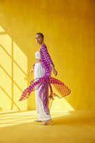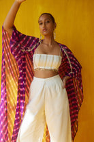 Caftán Mothada rosa con pantalones blancos y corpiño
