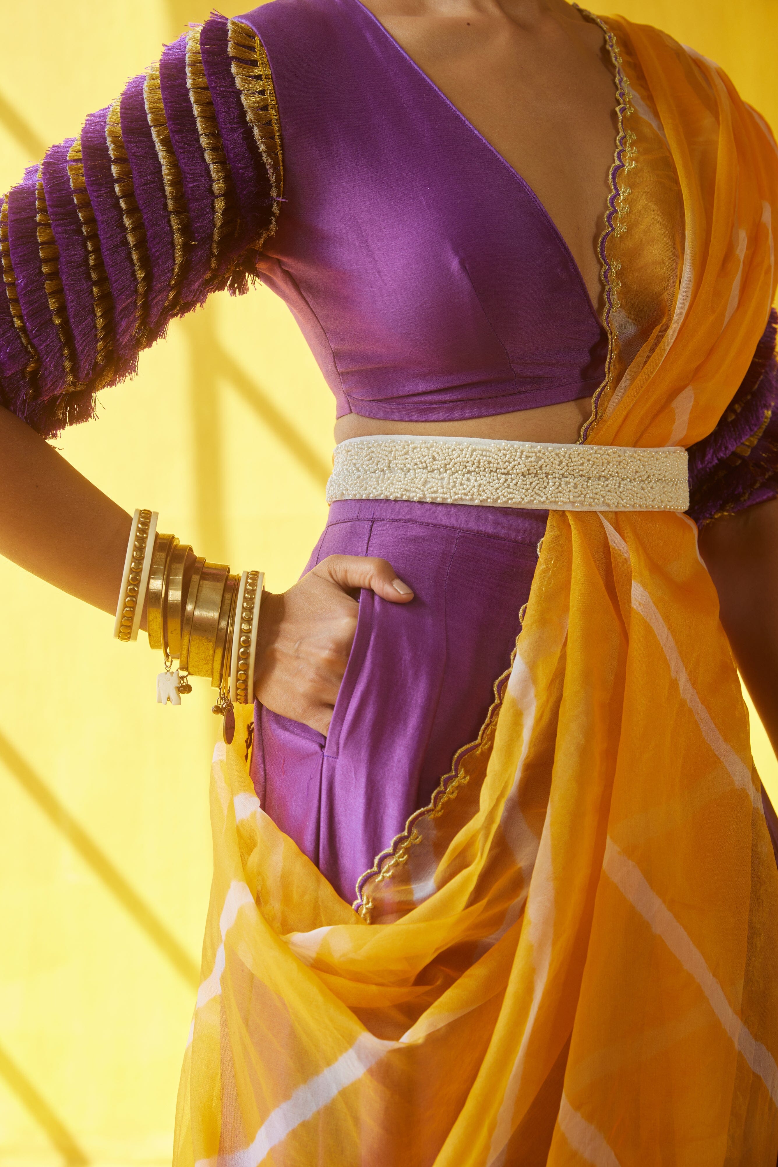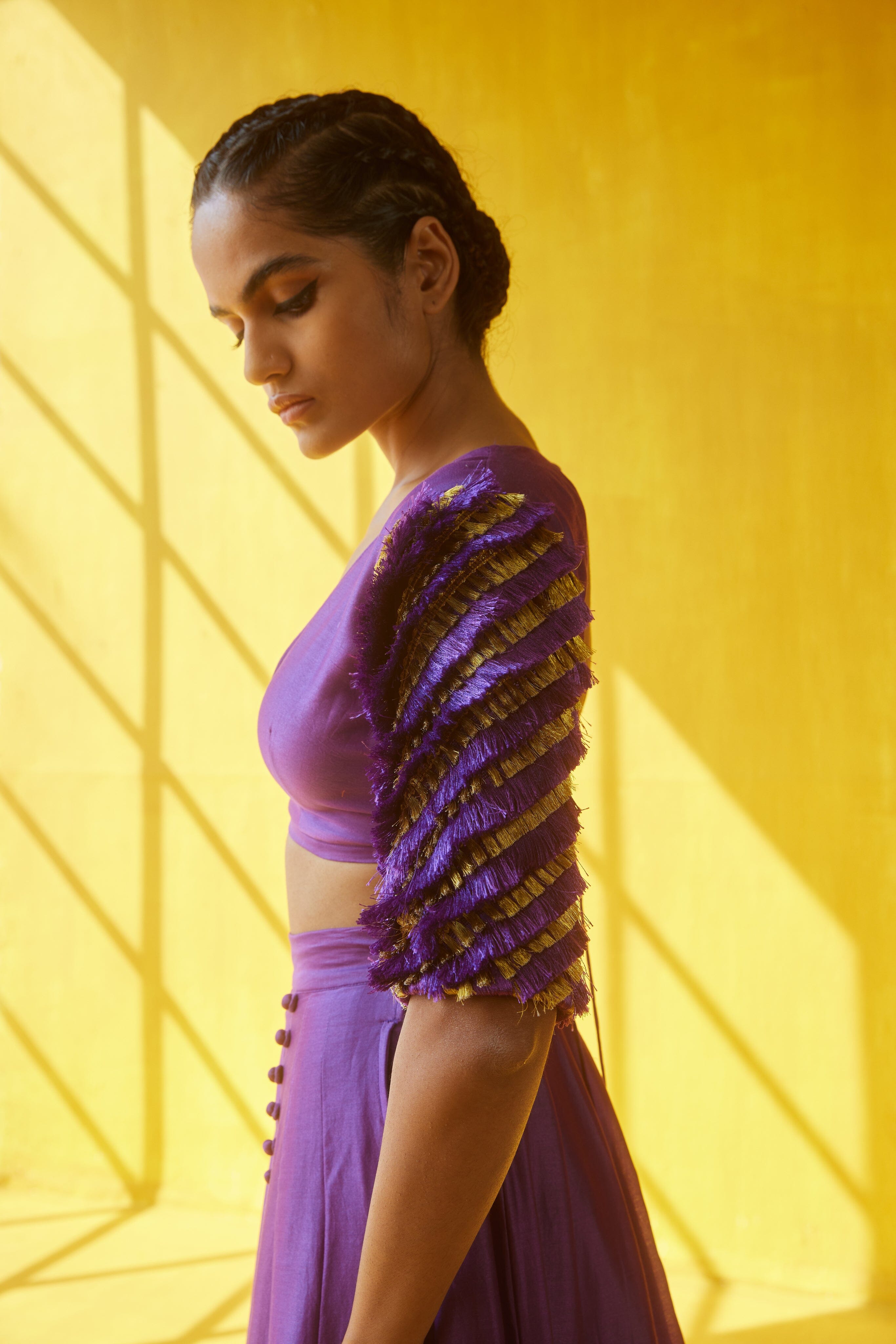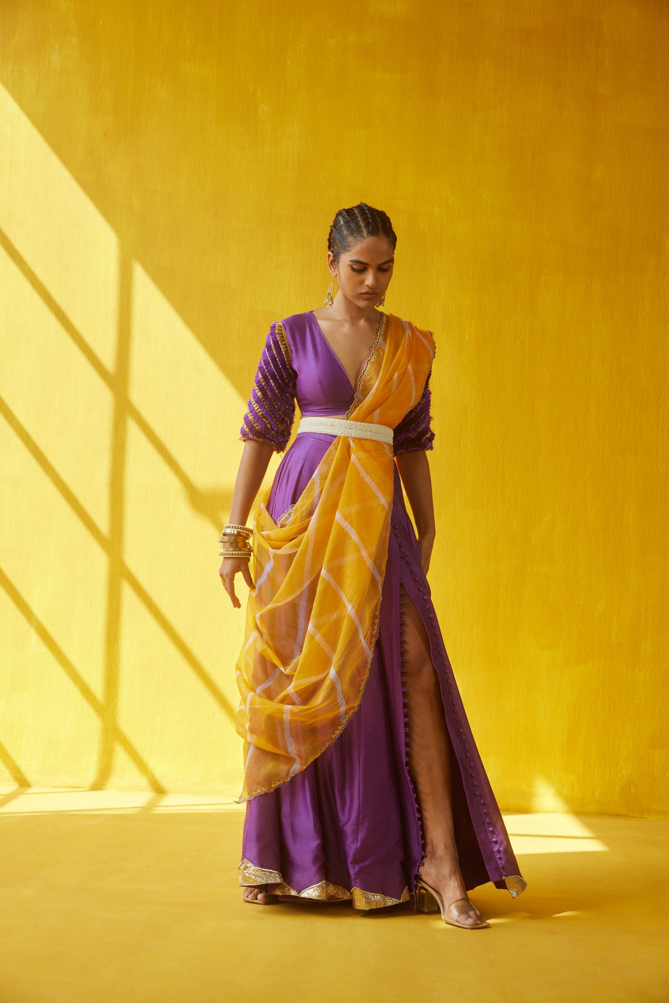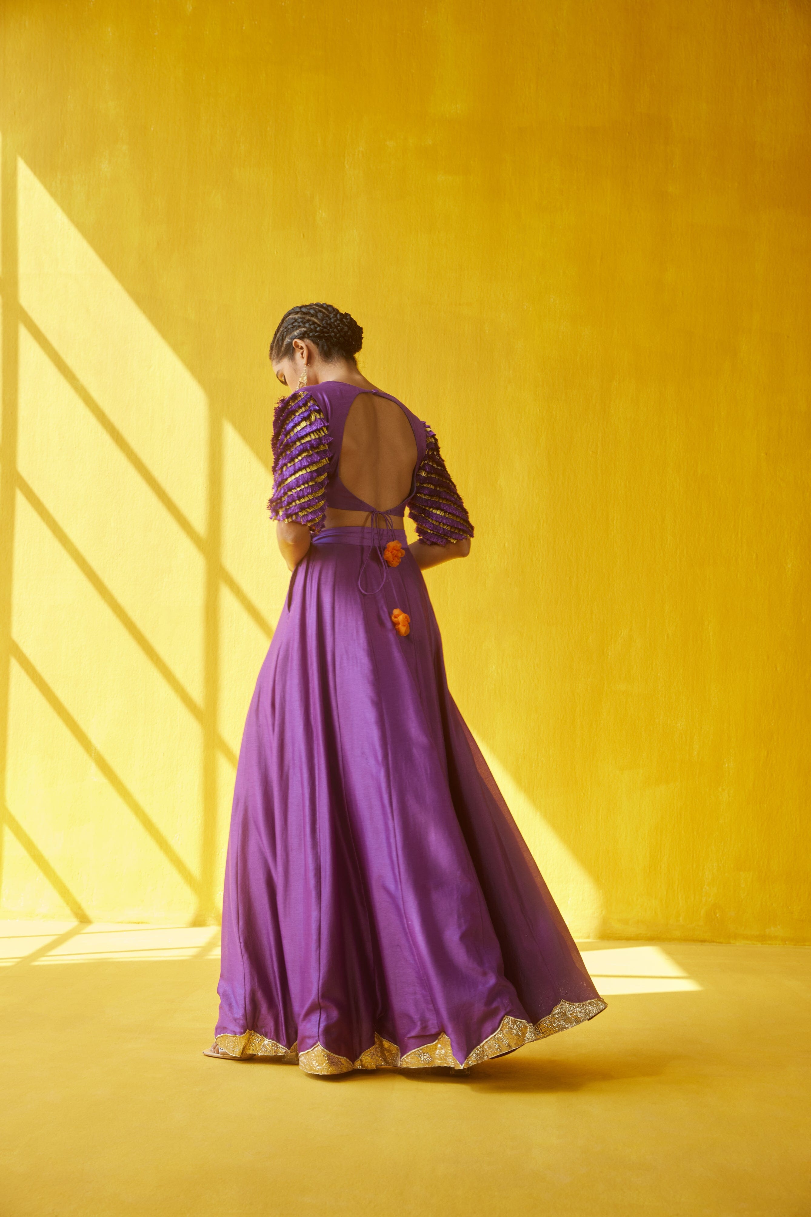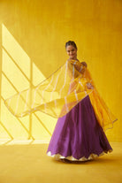 Lehenga morada y amarilla