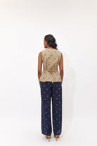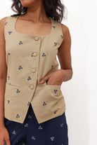 The waistcoat has a tie up at the back to cinch the waist.
