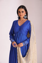 Mastani Blue Chanderi Anarkali And Pant With Dupatta- Set Of 3