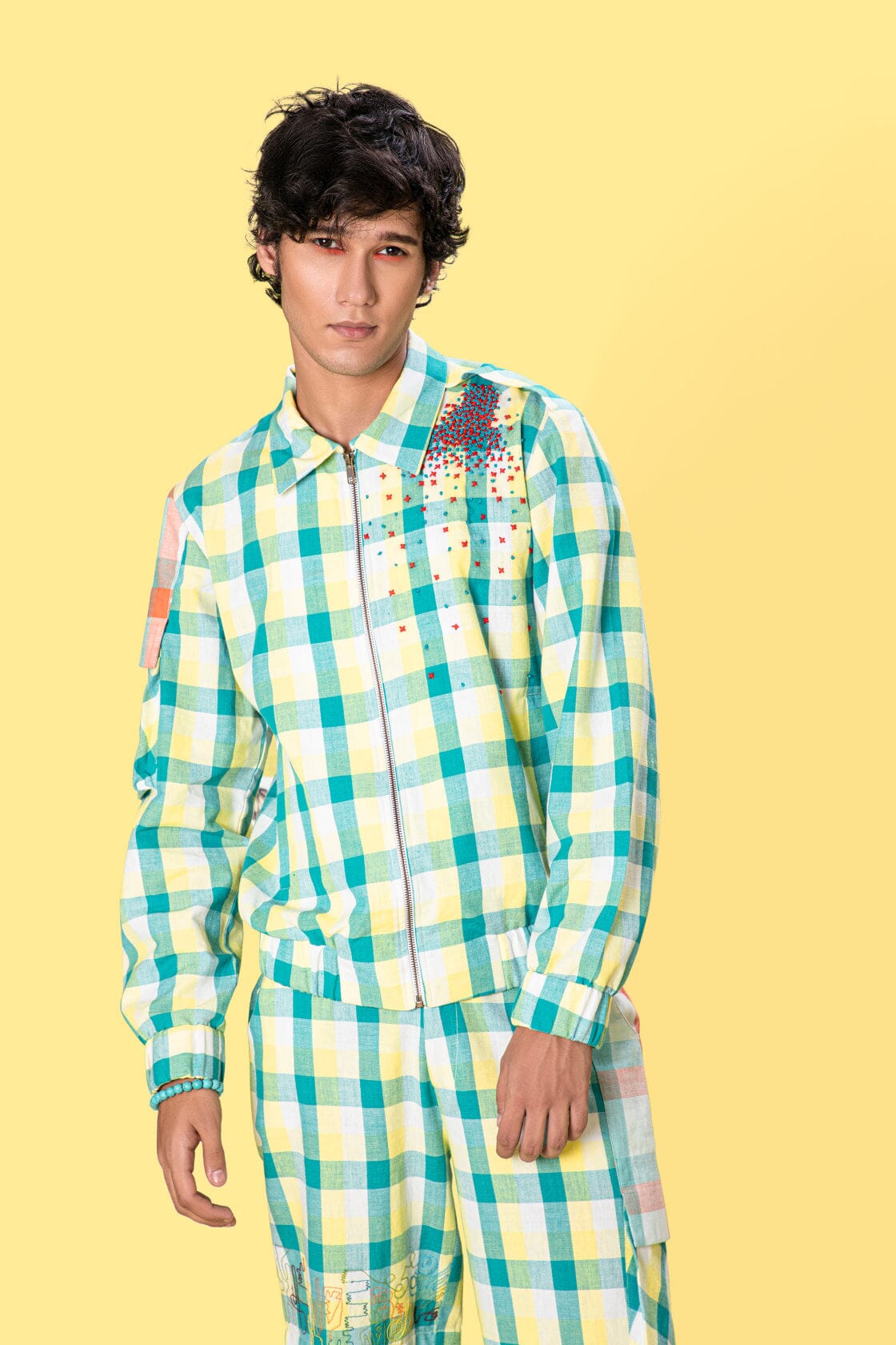 Definida por una mezcla de cuadros brillantes con bordados de hilo de ancla en contraste con una explosión de emoción, esta bomber de algodón ligero combina funcionalidad y estilo. Combínalo con nuestros Joggers a juego para lograr un look lounge completo.