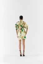 The Blossom Ruching shirt & shorts Co-ord crafted from our stunning 100% cotton slub fabrication, trans-seasonal, is a statement piece. This shirt, in our renaissance florals and english jewels, has a ruched neckline and cuff. With lace detailing, the shirt has a boxy fit and front buttons. Featuring a summery look, it is paired with our matching shorts. They are lined and have pockets. Wear it with heels for an elegant look.