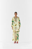 The Blossom Stonework Kurta & Pants crafted from our stunning 100% cotton slub fabrication, trans-seasonal, is a statement piece. This kurta, in our renaissance florals and english jewels, has a hand embroidered swarovski neckline. With lace detailing, the kurta is lined and has pockets. Featuring a festive look, it is paired with our matching straight pants with back elastic.  Wear it with heels for an elegant look.
