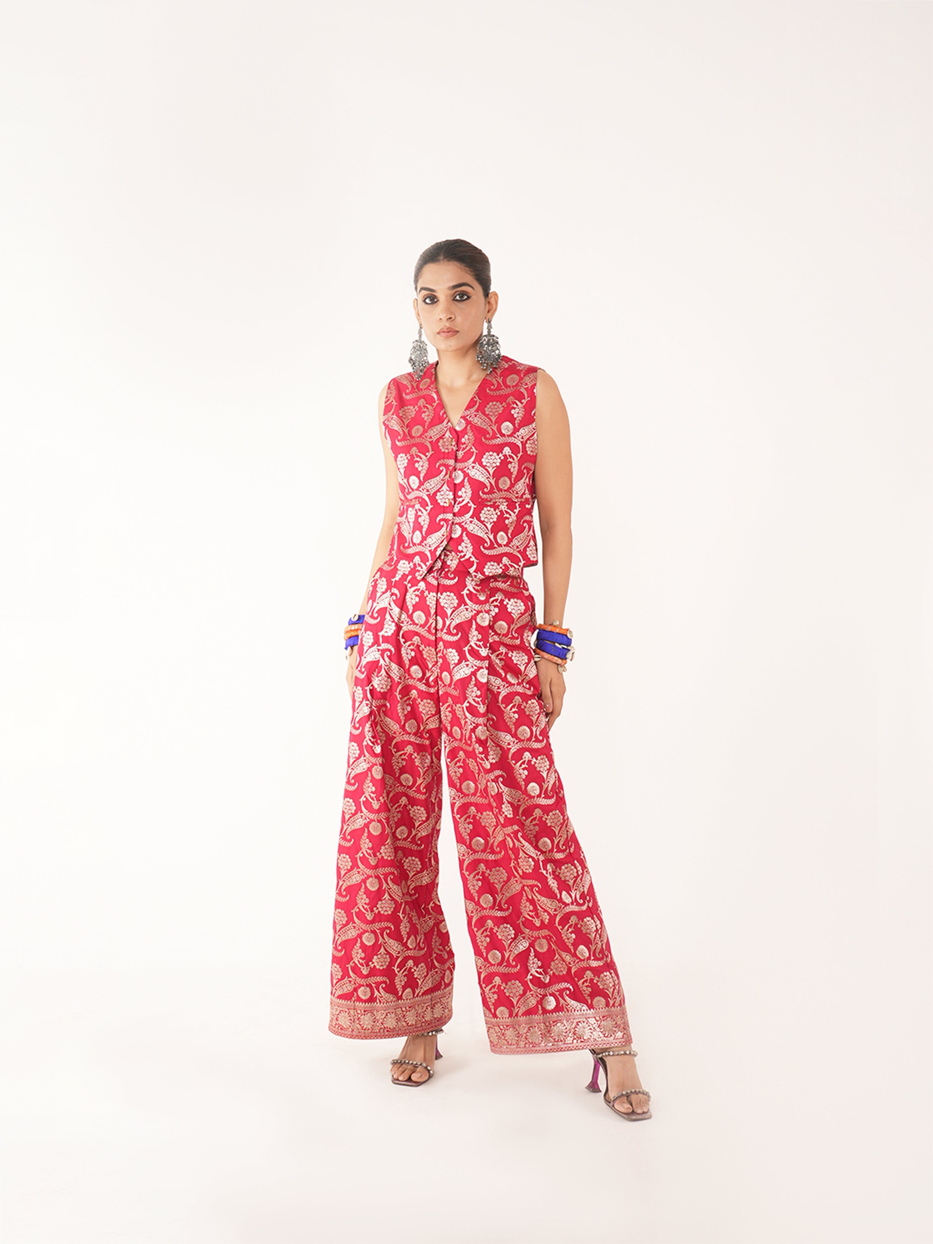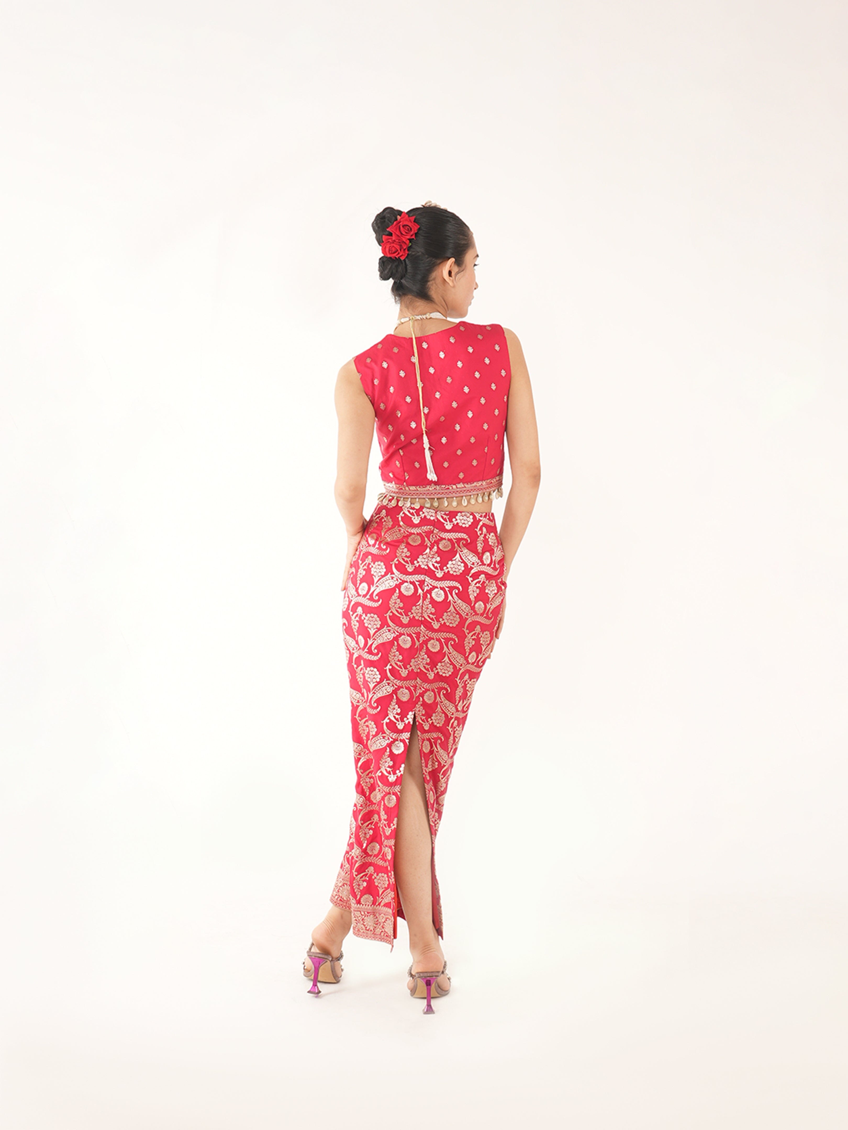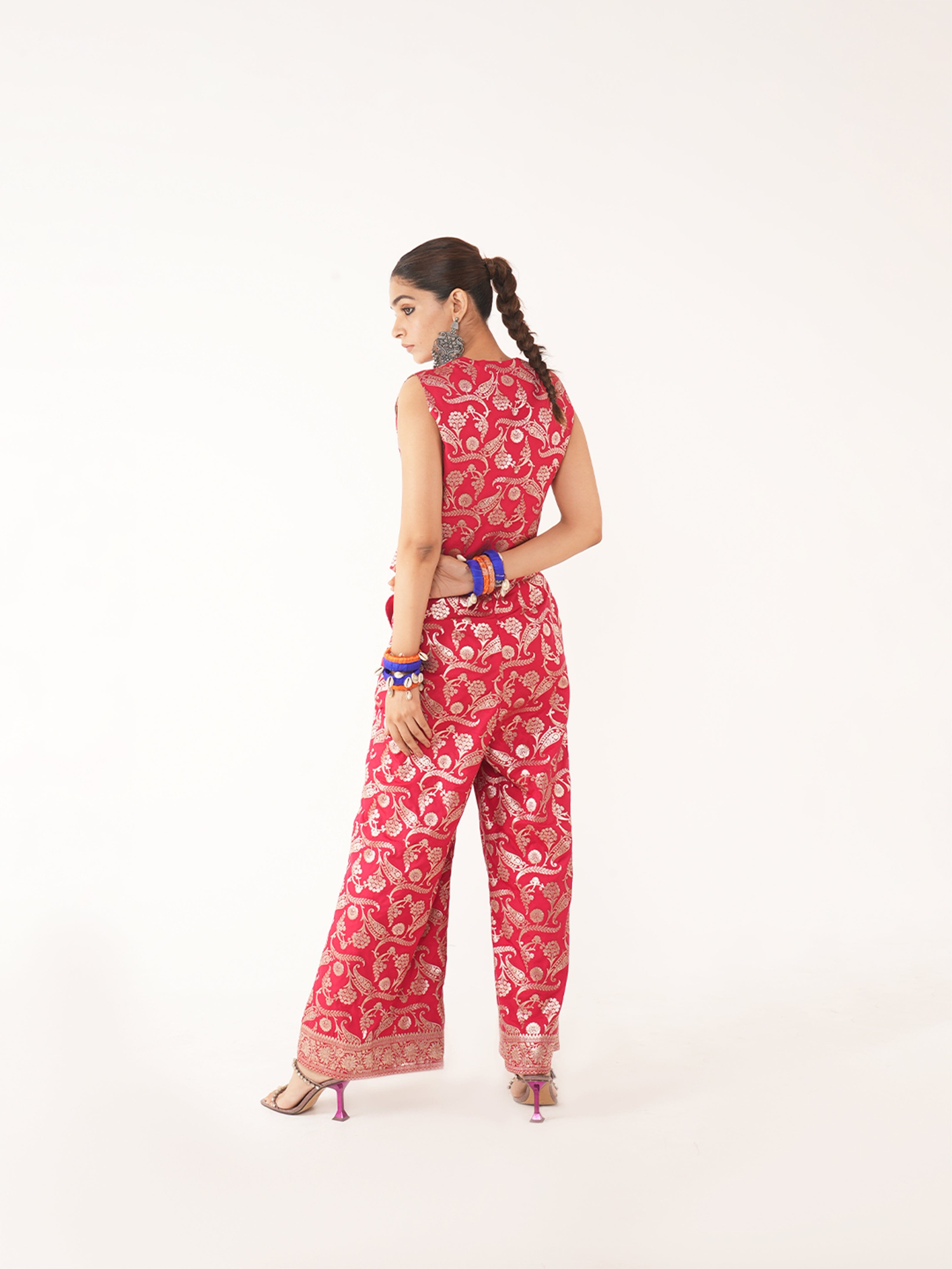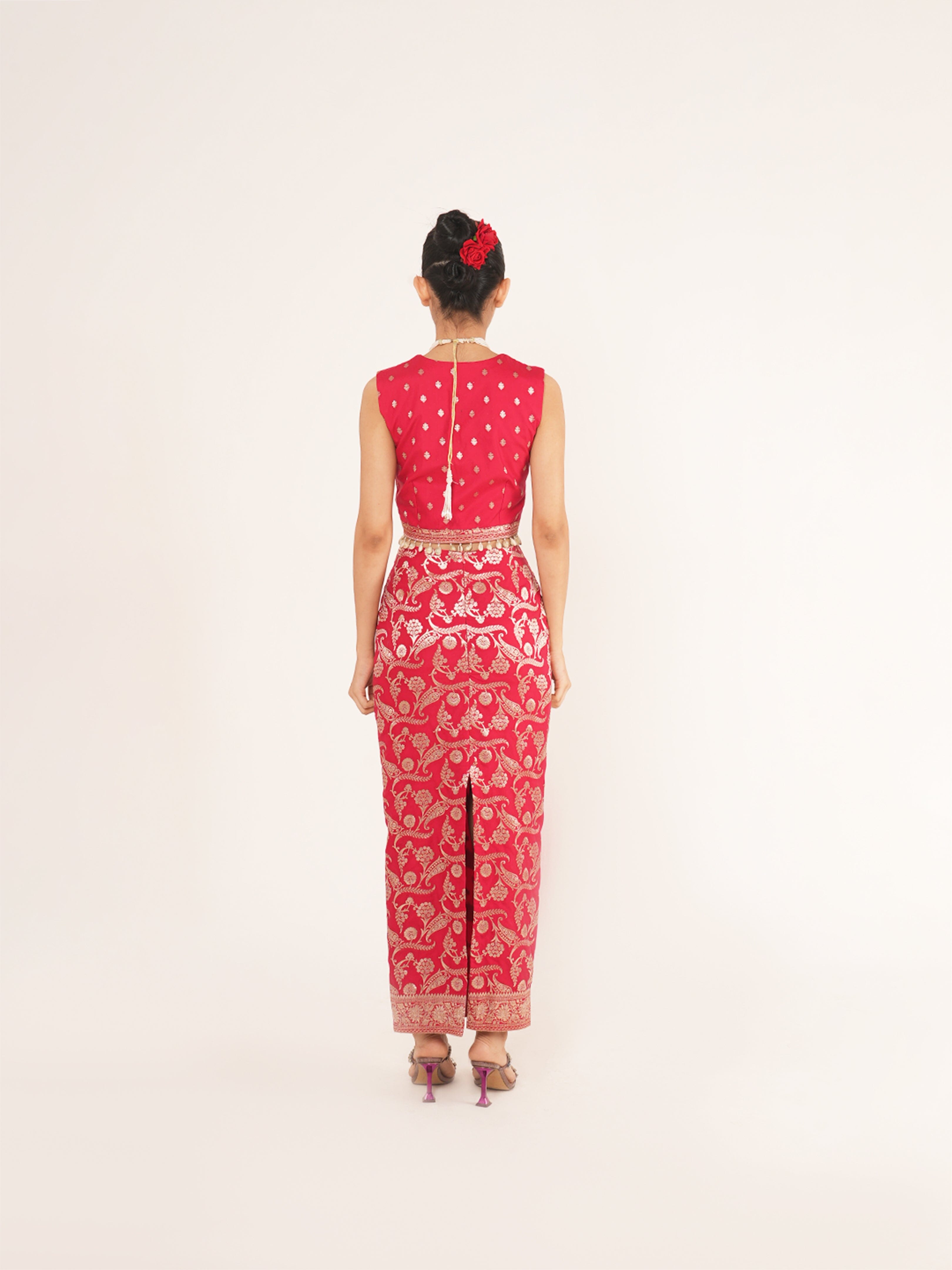 Conjunto de pantalón y cinturilla de seda roja Amyra