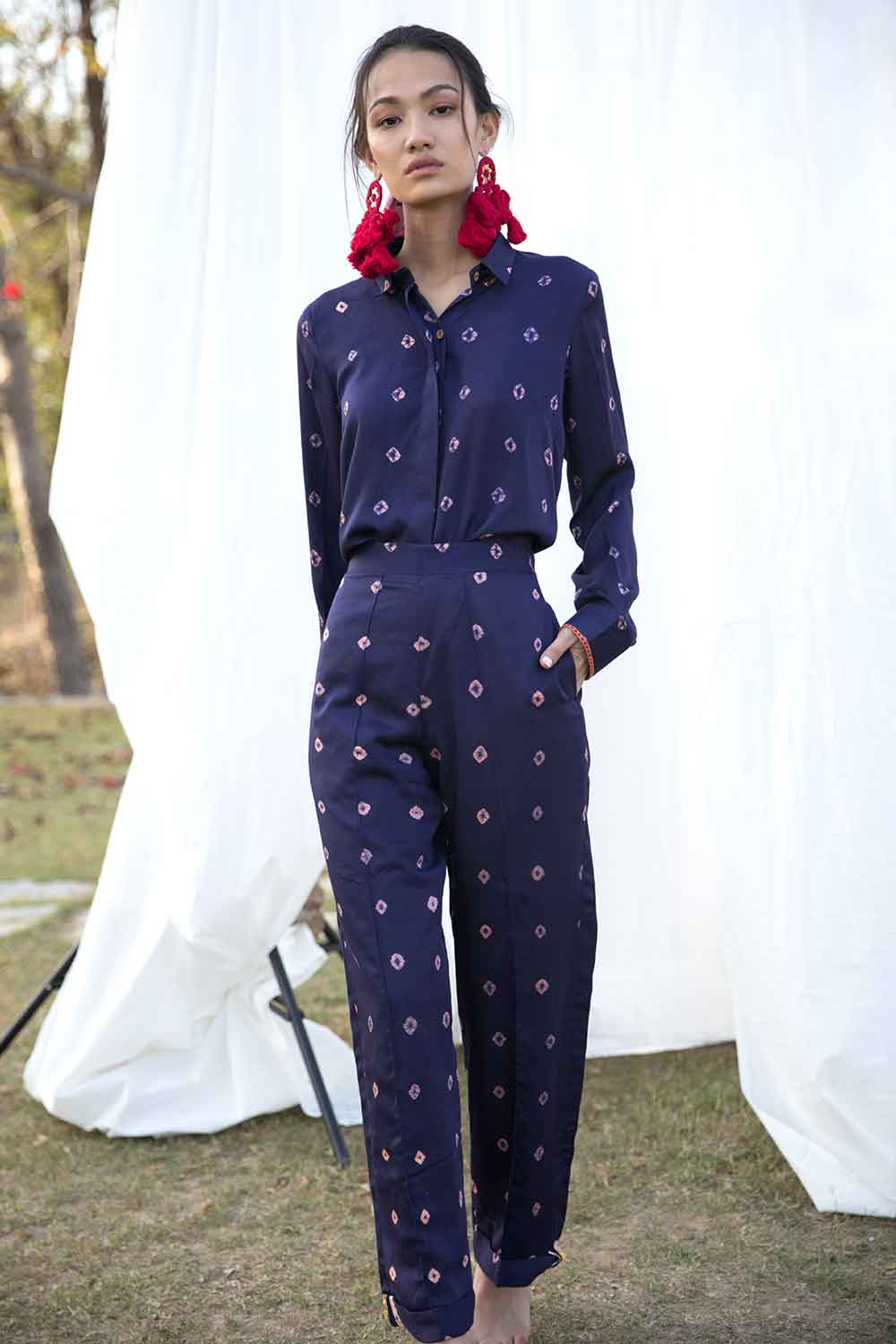Conjunto de pantalón y camisa de conjunto Mid Night Bandhej