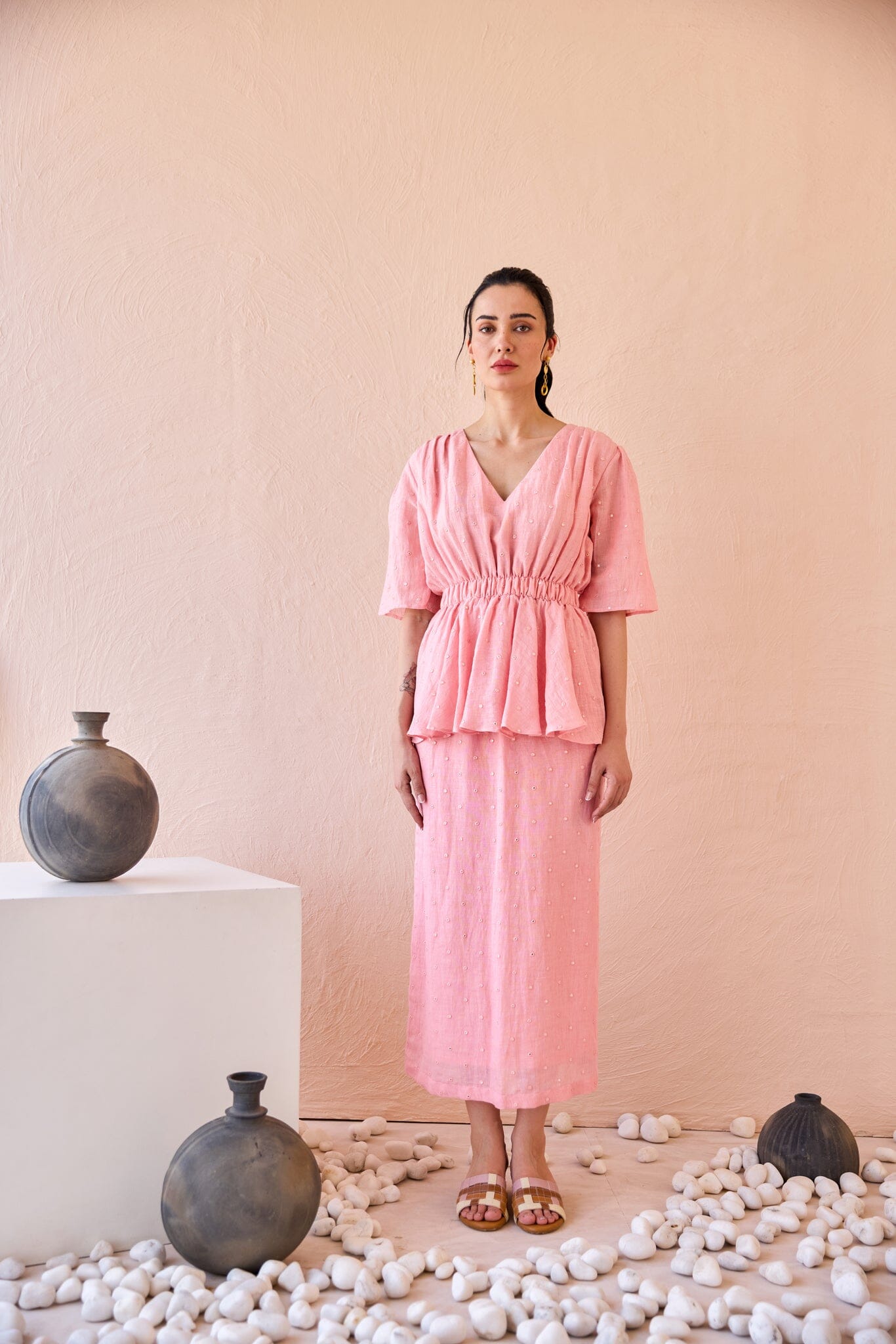 MOONSTONE ASYMMETRIC SHIRT AND KNOT SKIRT