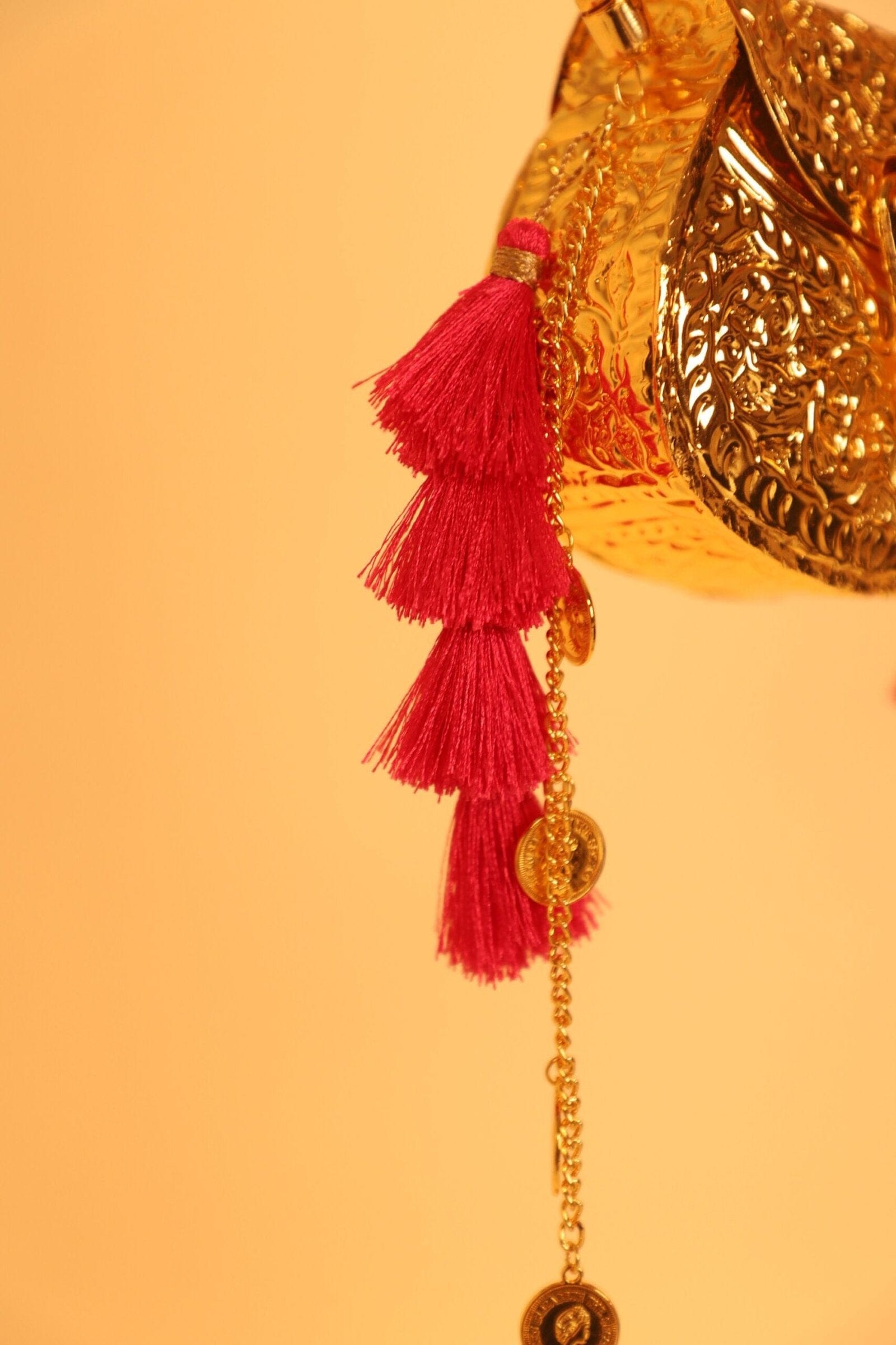 Bonus Style Detail: Comes with a detachable two pink tassles , detachable handle , detachable charm chain.
