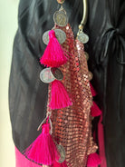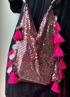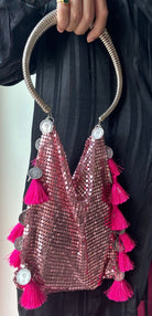 Make a statement with the Blushy Bling JHOLA, your perfect go-to in a dreamy blush pink. Designed to turn heads, this bag features playful pink tassels that add movement and charm, and a unique handle silhouette that blends style with comfort. Its eye-catching design and soft pink hue make it the ultimate accessory for adding a pop of glam to any outfit.