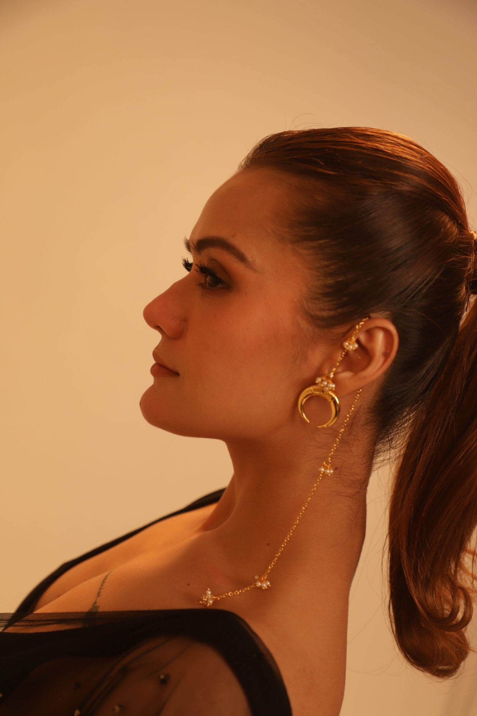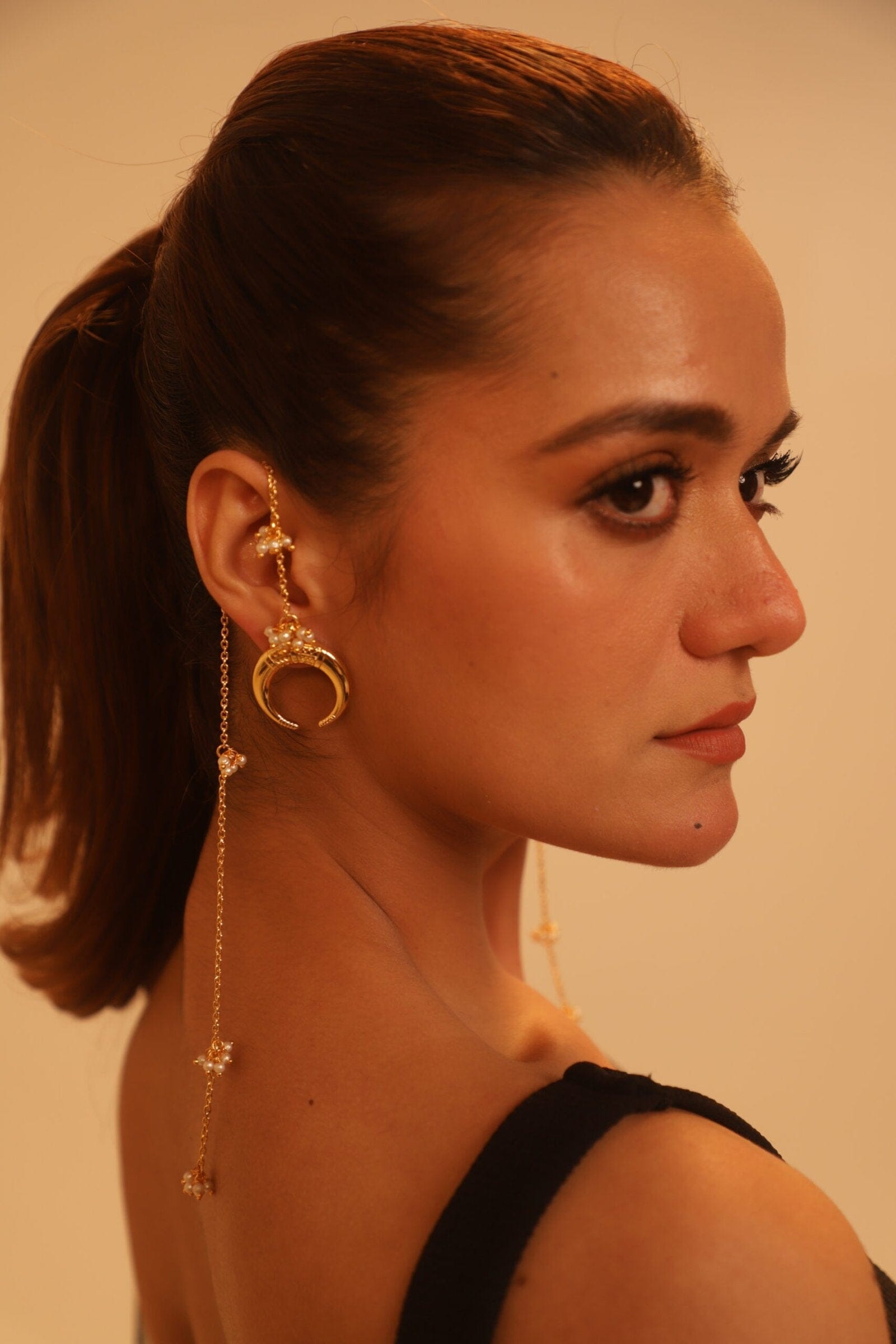 Chan Basra Earrings are a type of traditional earrings featuring Basra pearls, which are known for their natural and lustrous appearance. The term "Chan" typically refers to a moon-like shape or design, often reflecting a crescent or round form in the earring's structure.