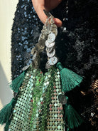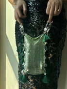 Add a touch of boho glam to your style with our blinged-out Jhola bag in a dreamy pistachio shade!