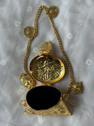 Swarna Batua Nano - wear it as a sling and watch heads turn! Perfect for western, Indian, or Indo-western looks, its coin and charm chain details add just the right touch of glam.