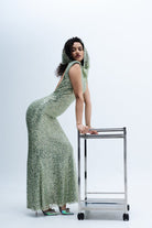 Discover our sequins dress, beautifully crafted with shimmer details for a dramatic flair. Ideal for cocktails or wedding getaways, this chic piece features a a line silhouette and godet-pleated netting that adds enchanting volume. this dress is the perfect companion for any wedding season, ensuring you look effortlessly stylish wherever you wander.