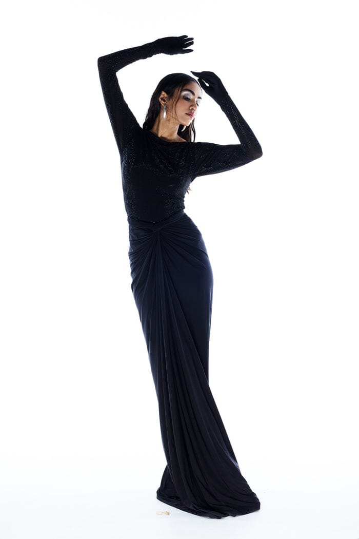 • Fabric - Bodysuit- black skirt - black LYCRA , SWAROVSKI NET