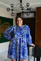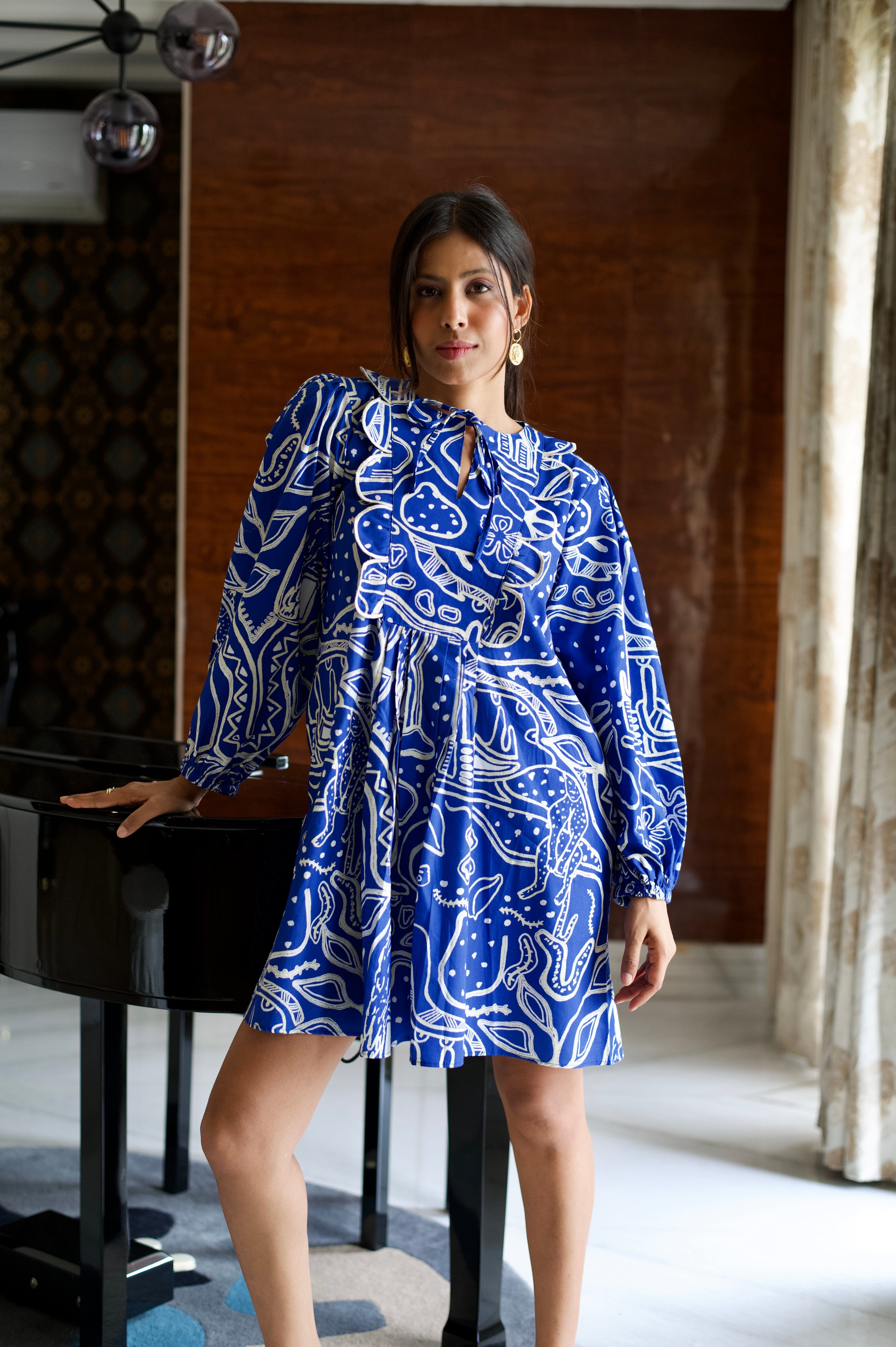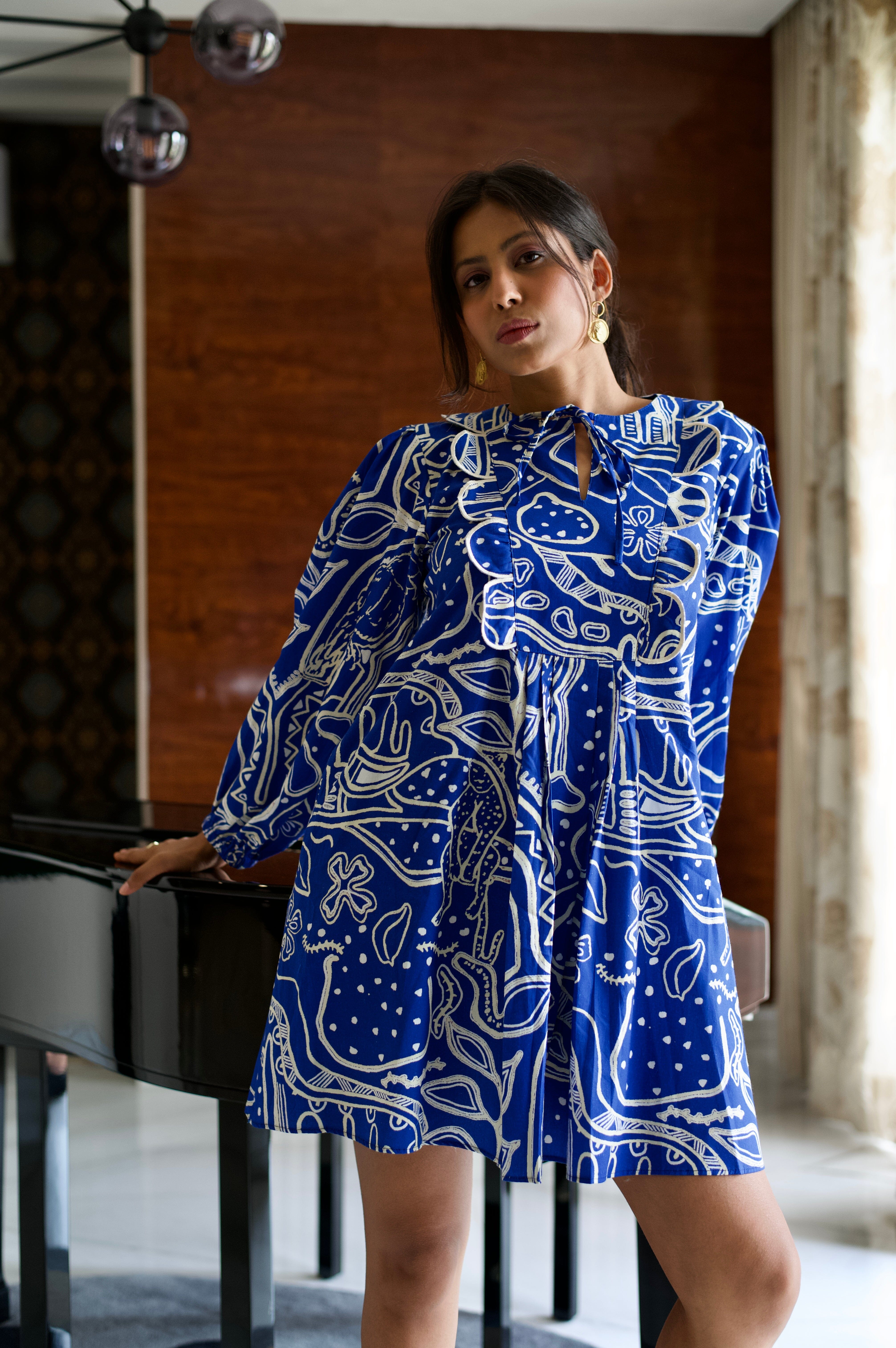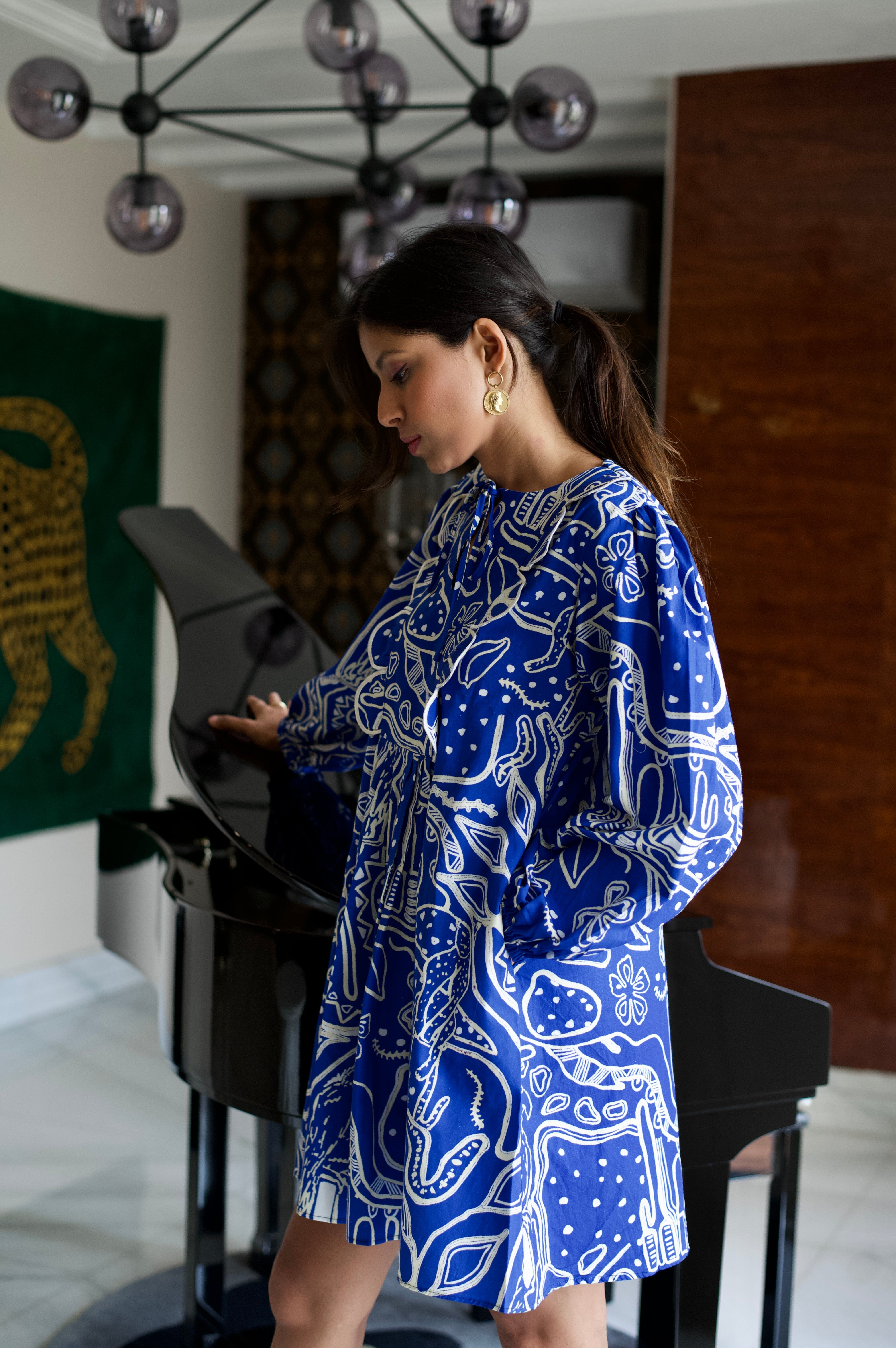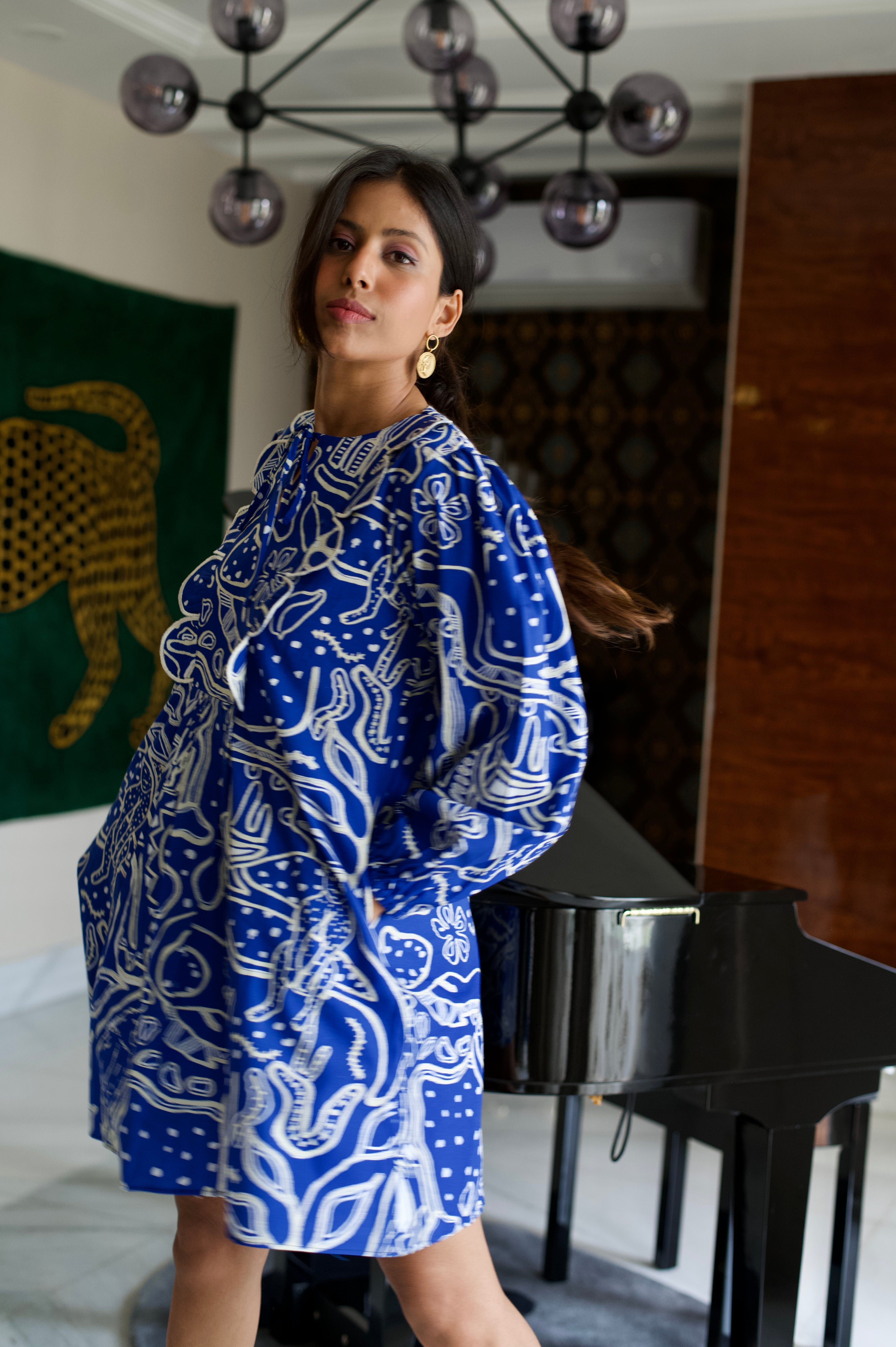 Conoce el vestido más lindo de todos los tiempos. Nuestras prendas de resort son cómodas y modernas a partes iguales, sin escasez de nuestros colores característicos y motivos abstractos. El llamativo color azul nos da una gran inyección de dopamina y la silueta divertida no es más inteligente para esos días tranquilos de vacaciones. Agregue zapatos gruesos, aros grandes y estará listo para comenzar.