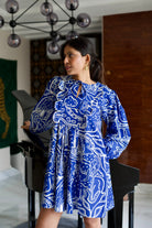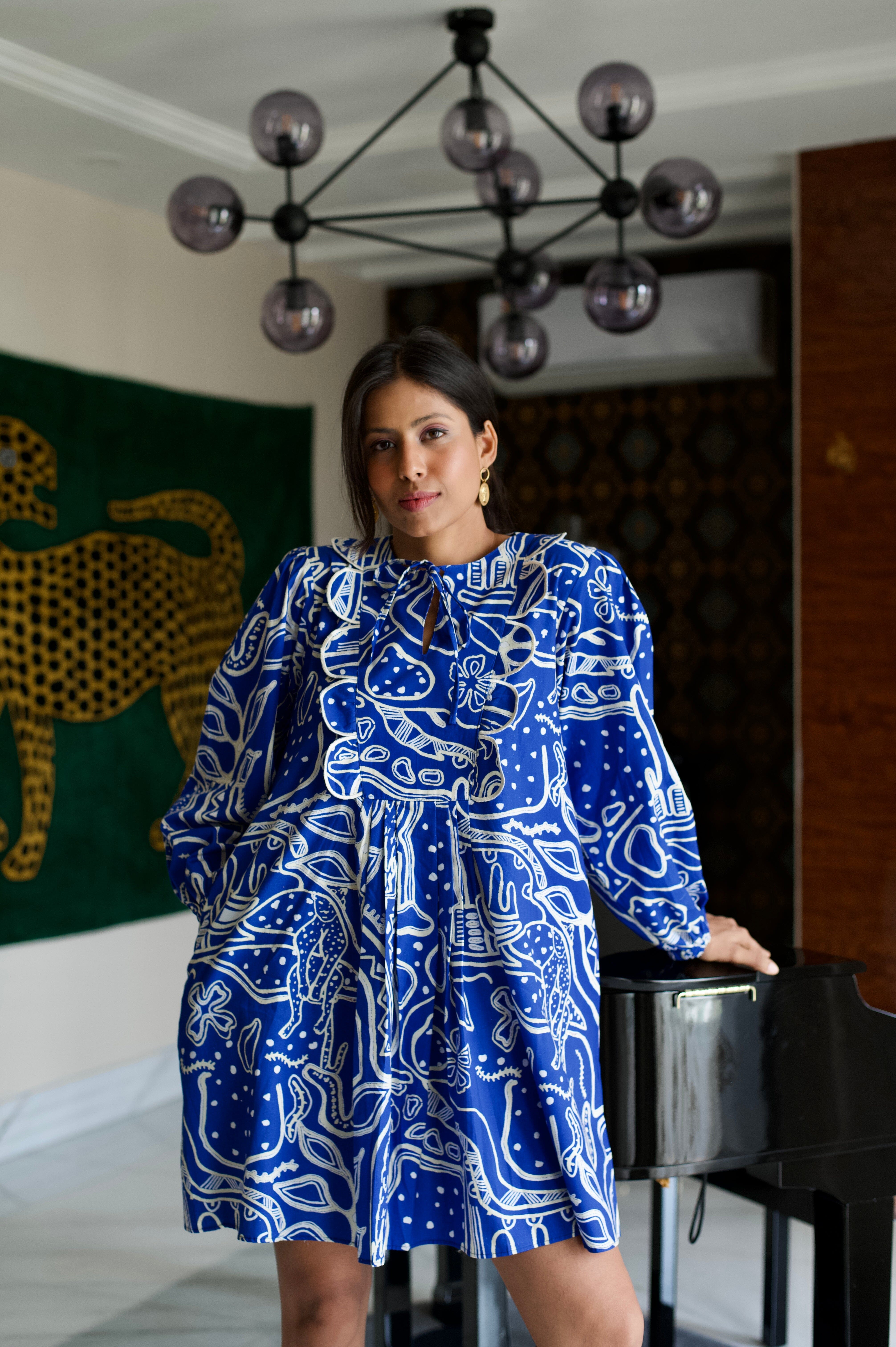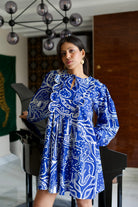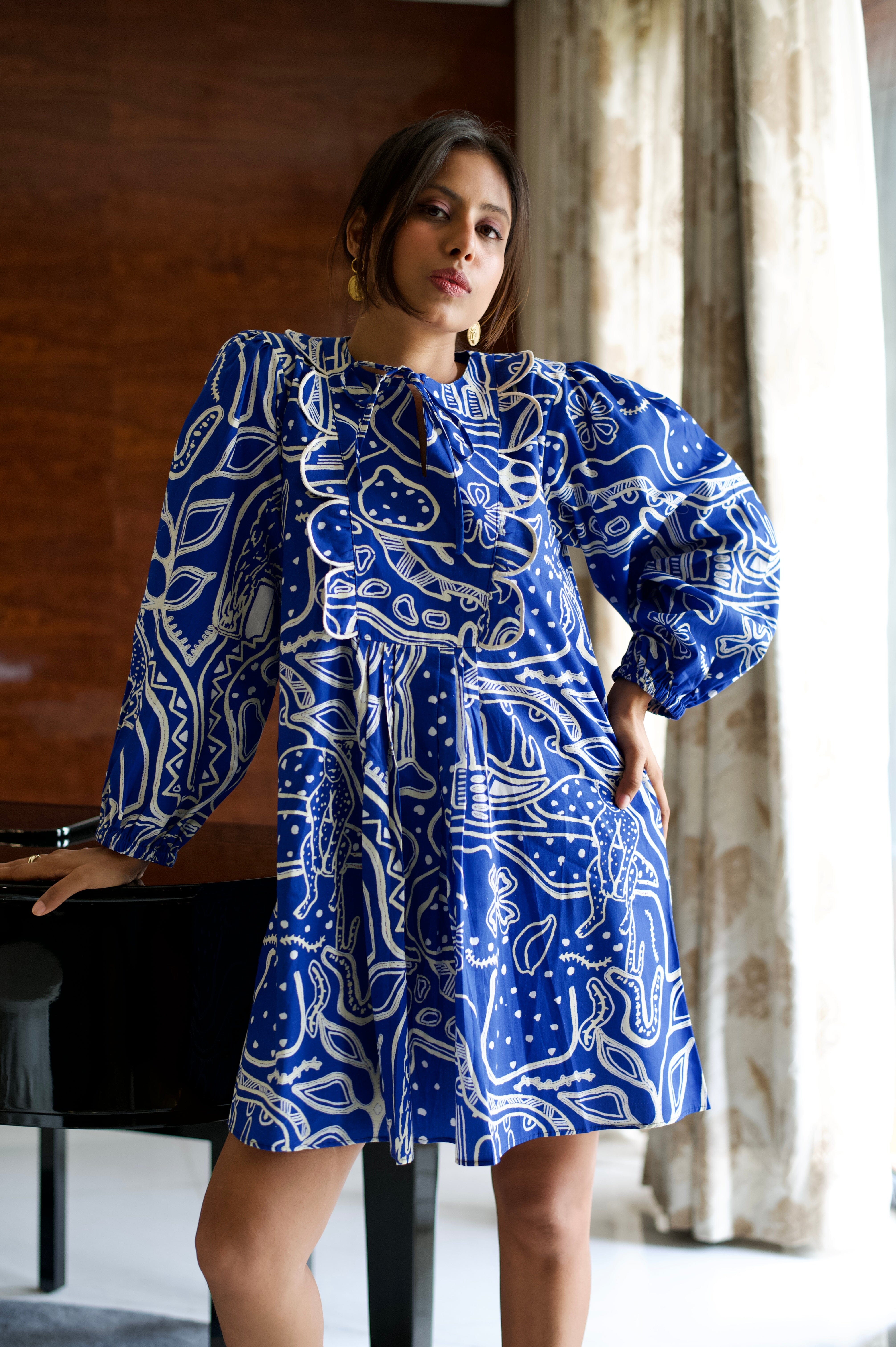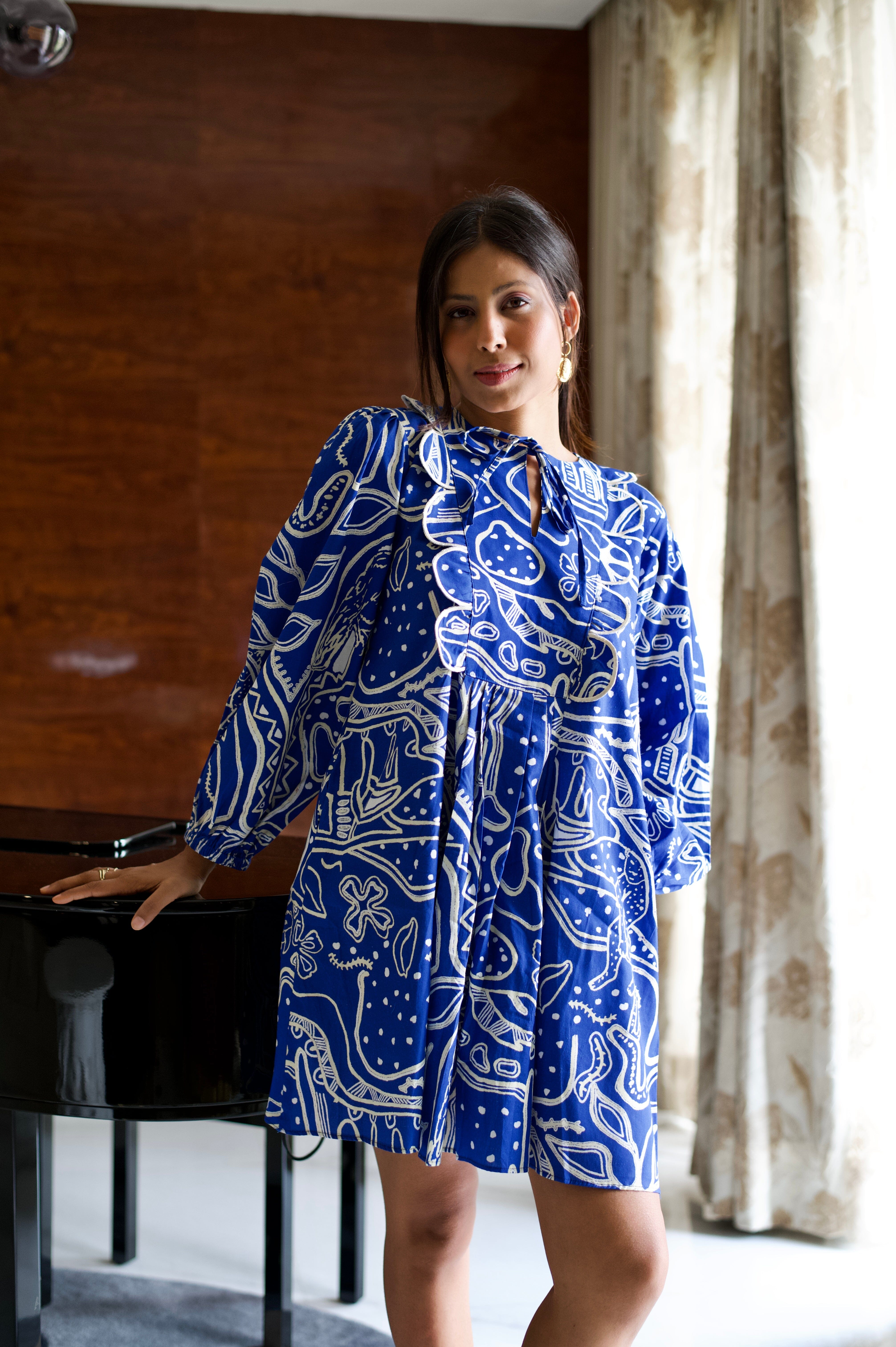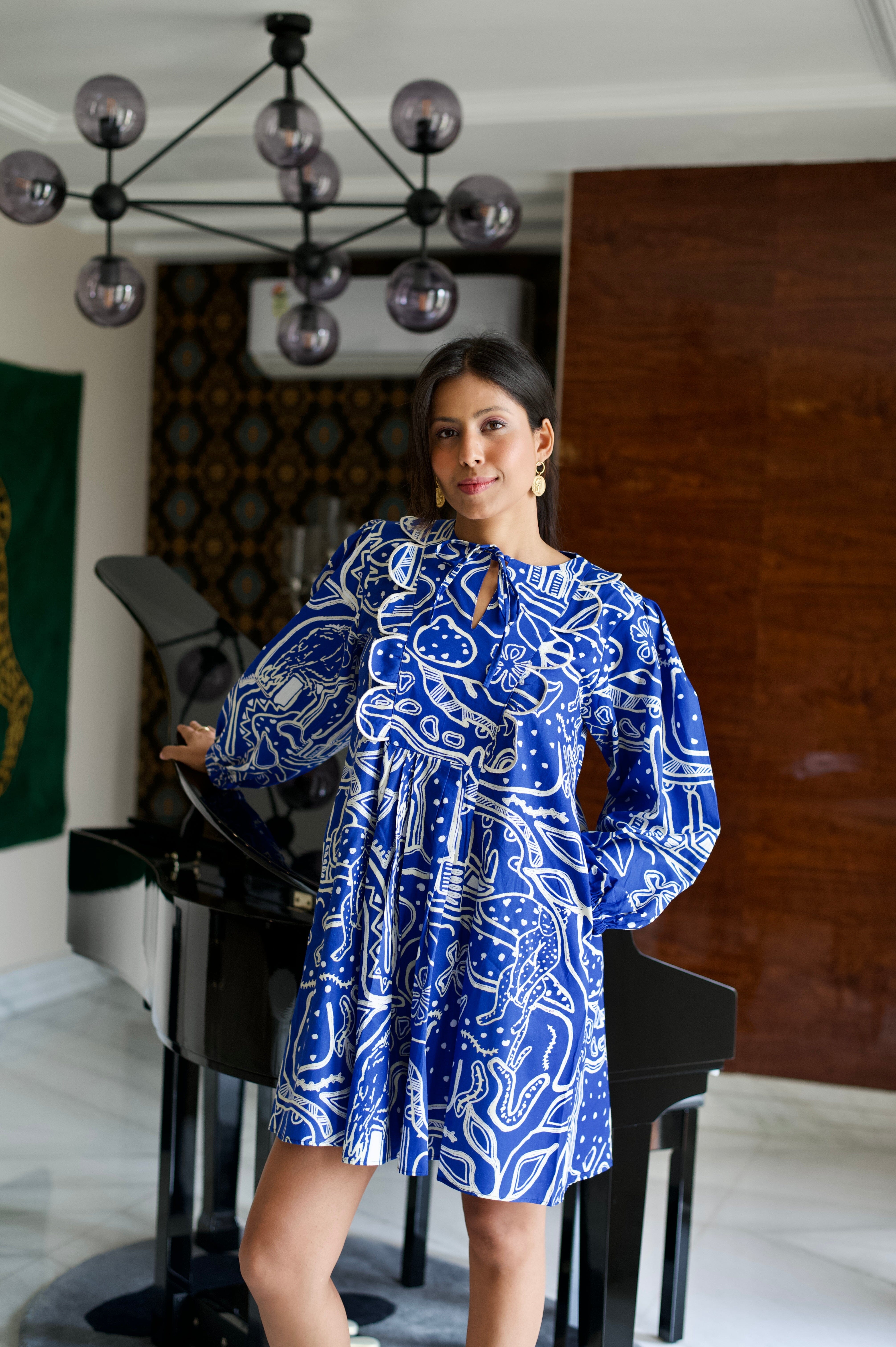 Conoce el vestido más lindo de todos los tiempos. Nuestras prendas de resort son cómodas y modernas a partes iguales, sin escasez de nuestros colores característicos y motivos abstractos. El llamativo color azul nos da una gran inyección de dopamina y la silueta divertida no es más inteligente para esos días tranquilos de vacaciones. Agregue zapatos gruesos, aros grandes y estará listo para comenzar.