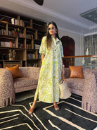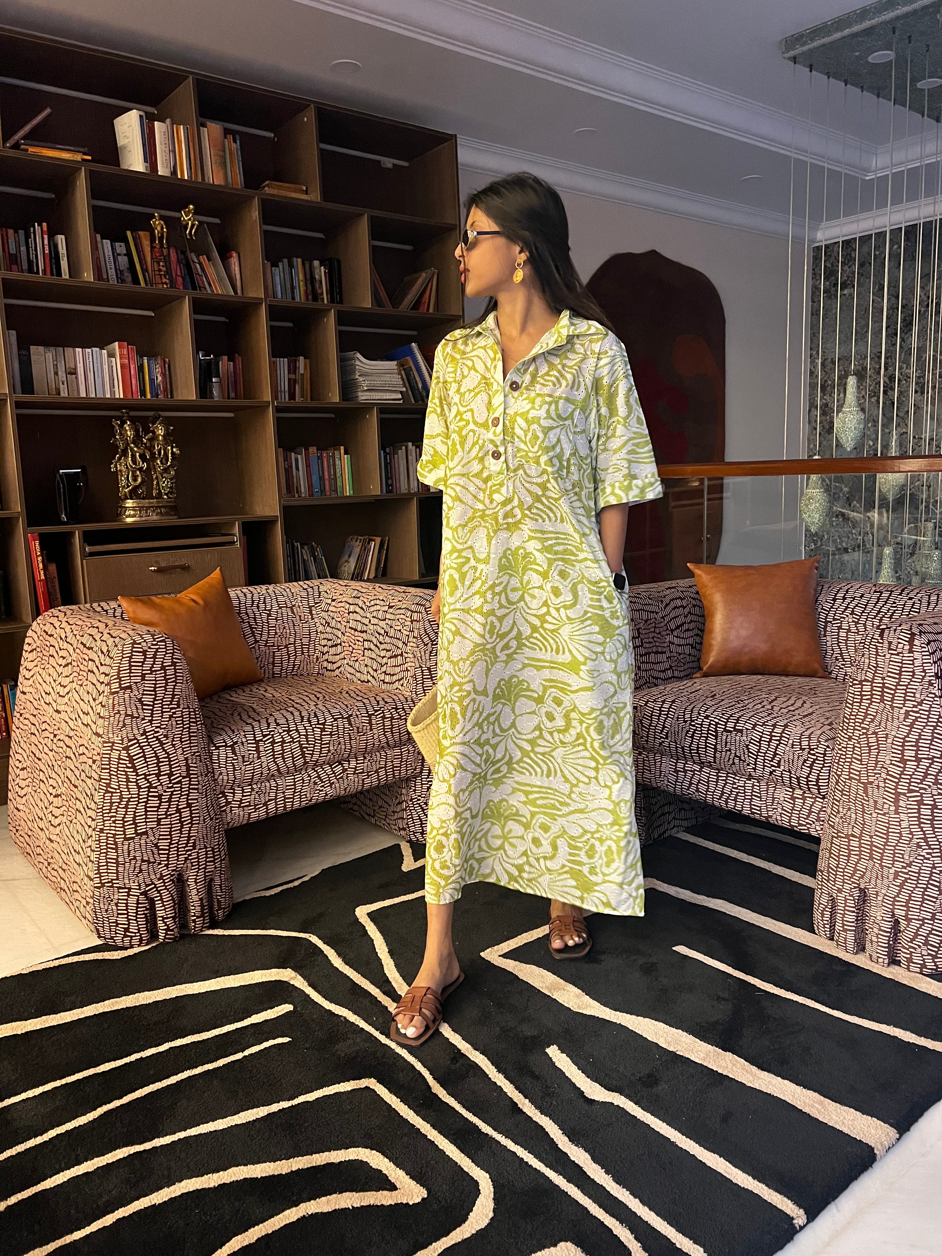 Comienza de nuevo con el vestido caftán Honeydew con estampado de claveles. Tu nuevo básico para las vacaciones presenta una silueta sencilla con cuello camisero, mangas cuadradas y un corte extragrande para seguir tus movimientos atrevidos.