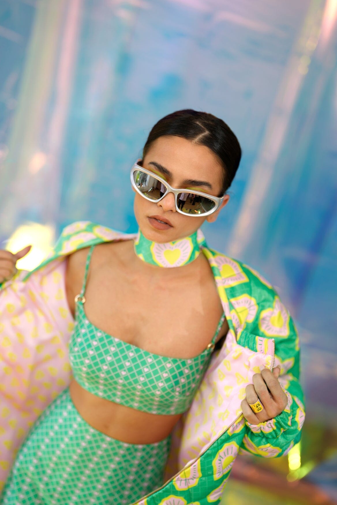 Green Bomber Jacket in Blinding Hearts