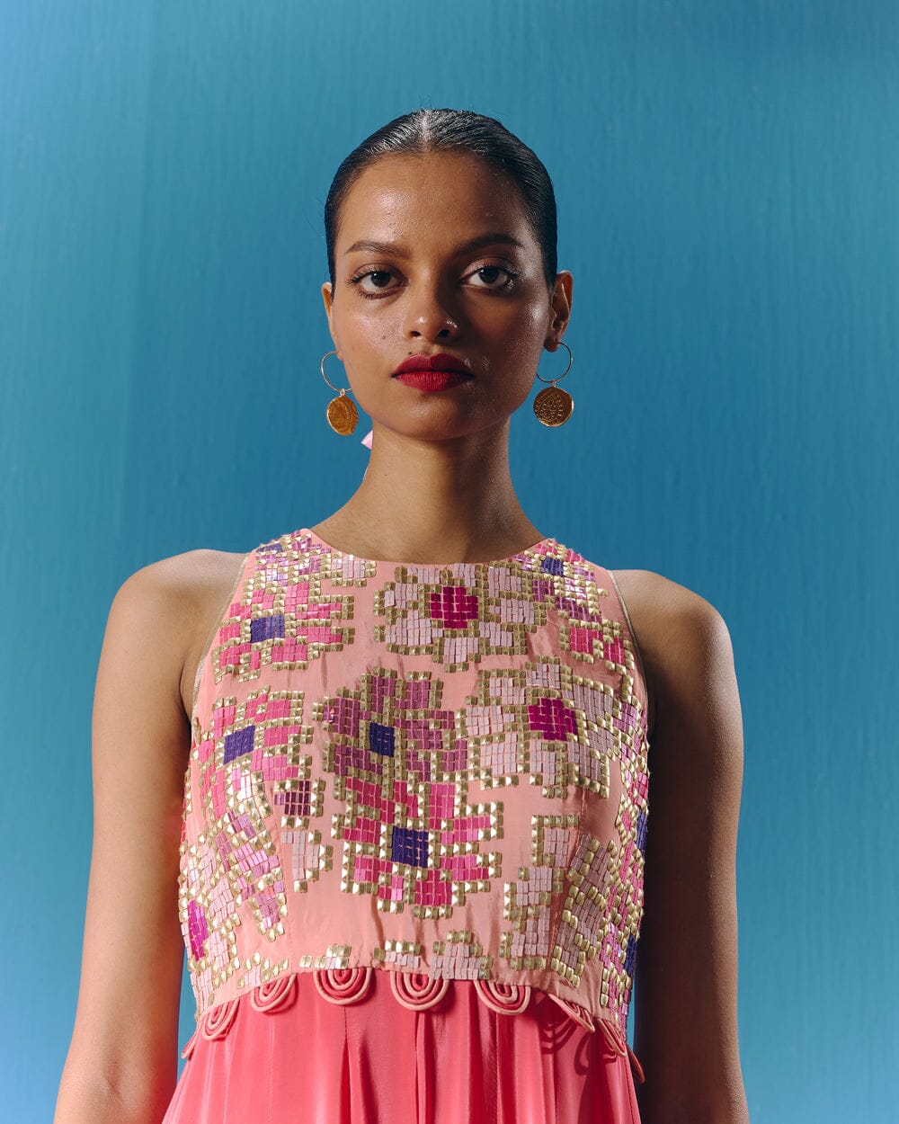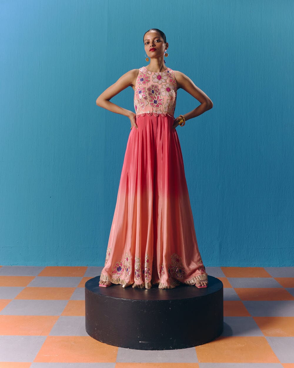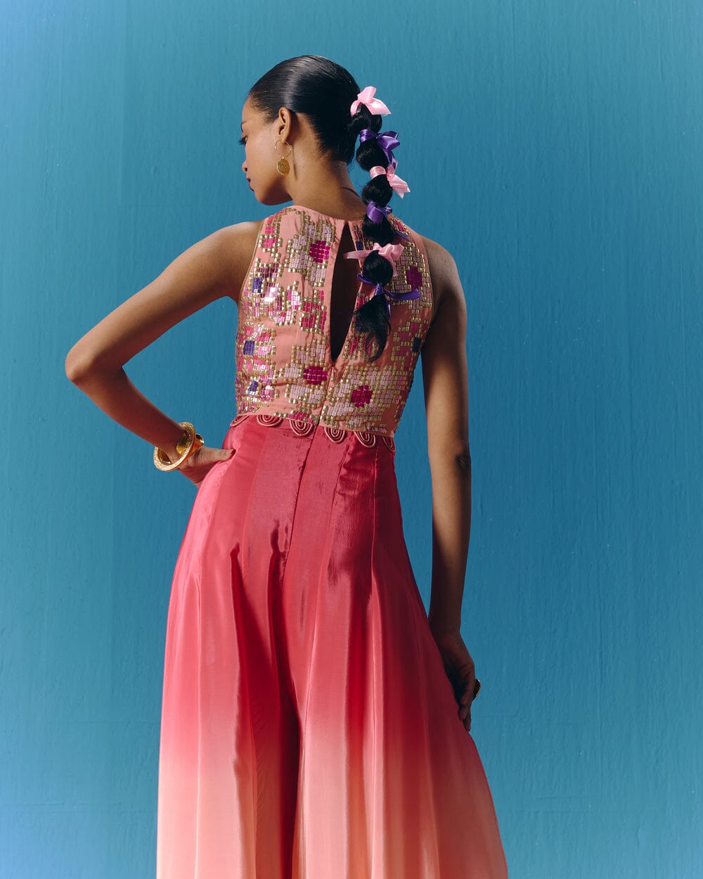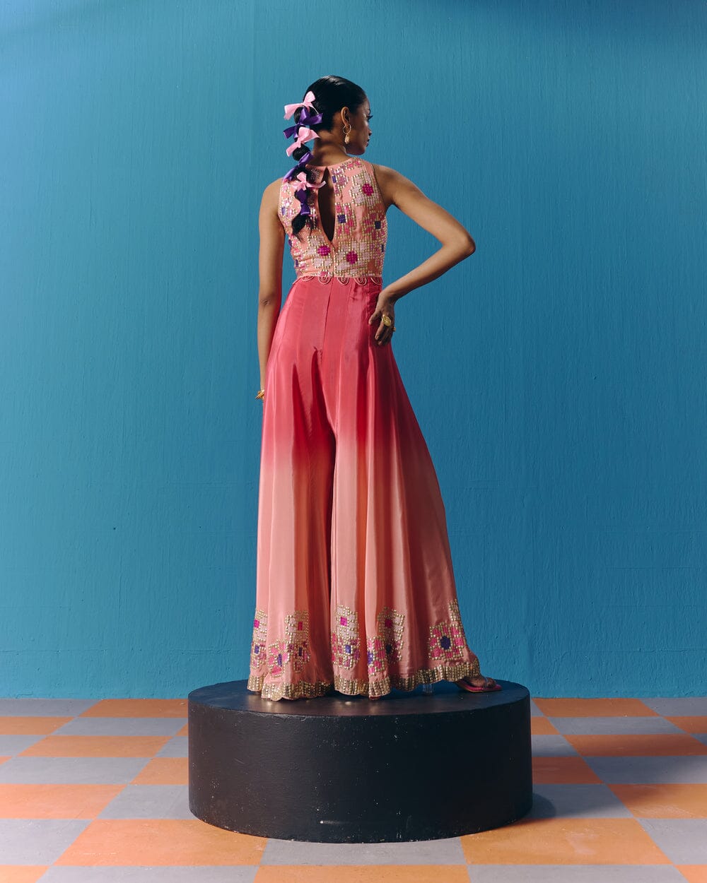 NAVY BLUE MIRROR EMBROIDERED JUMPSUIT