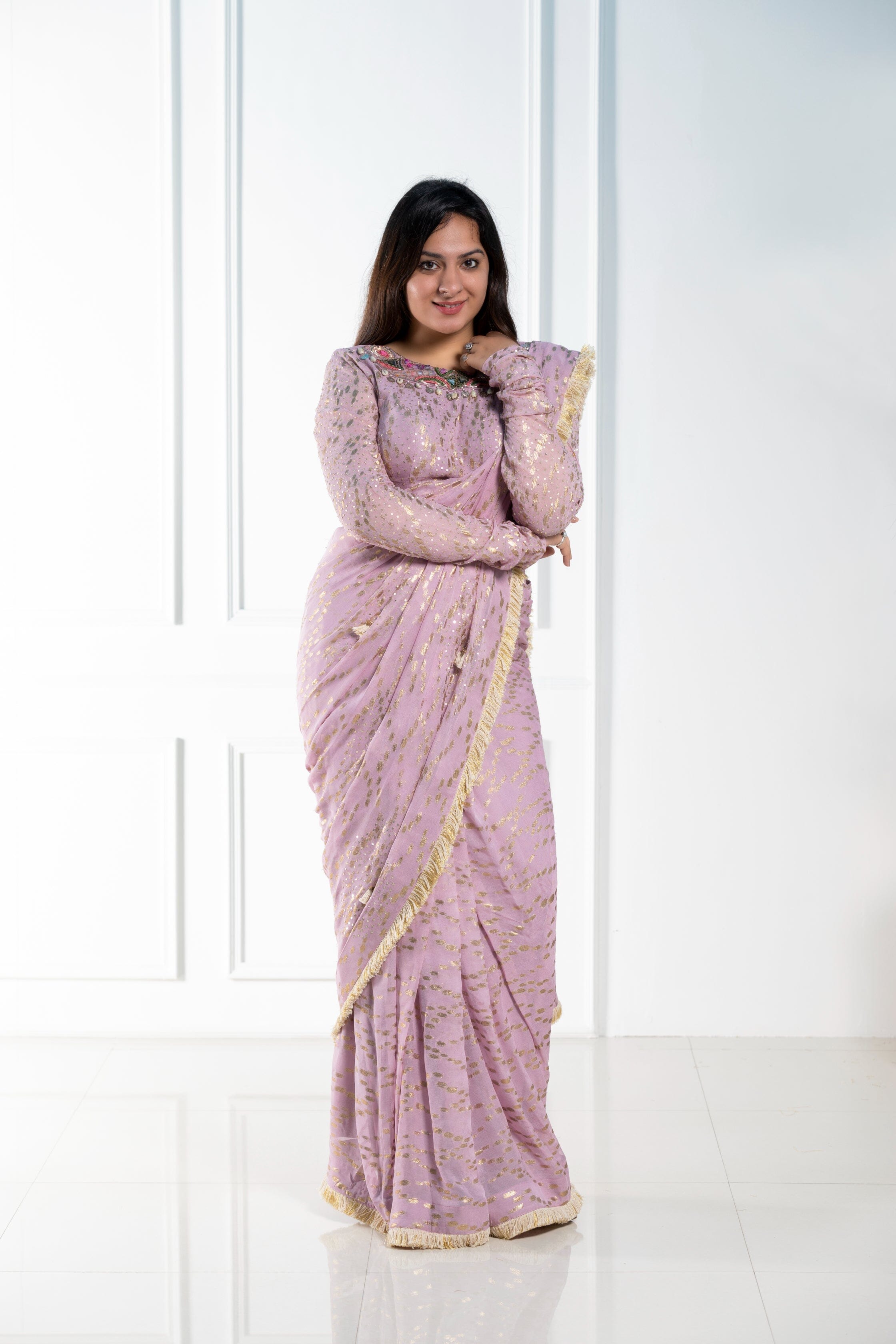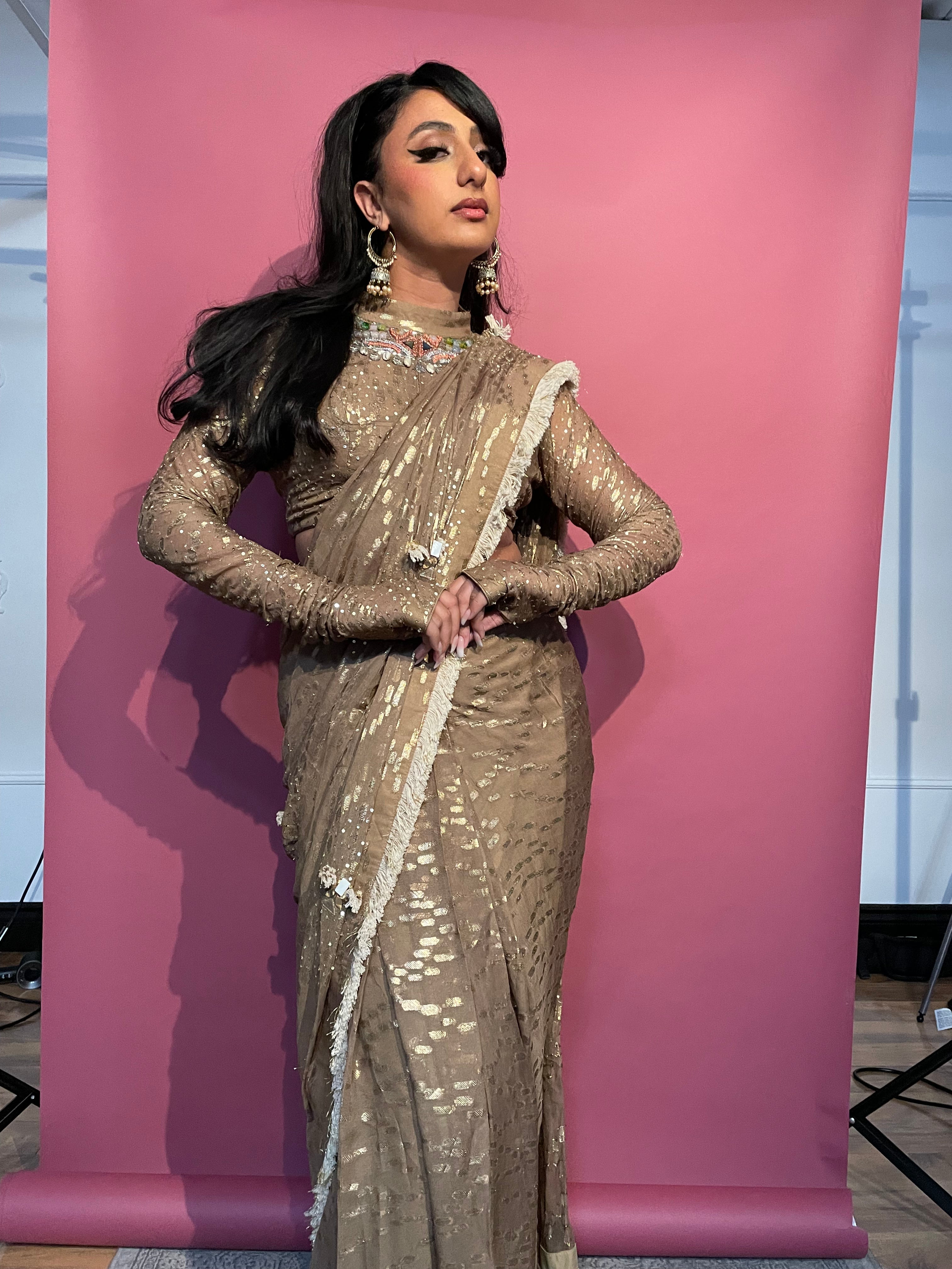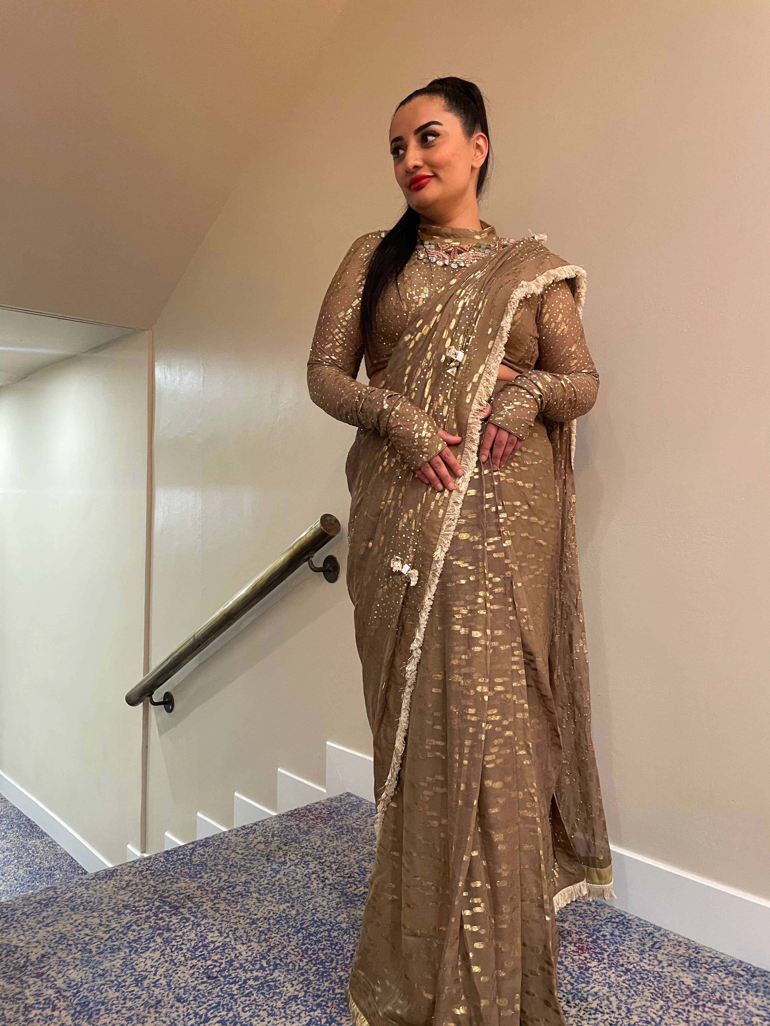 Sari pre-drapeado con guante
