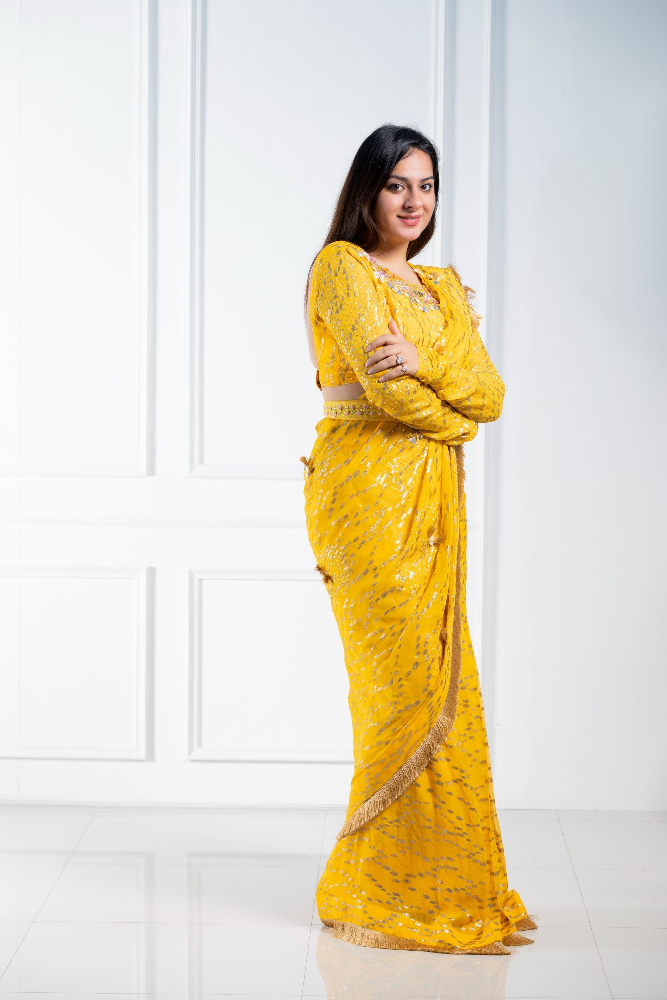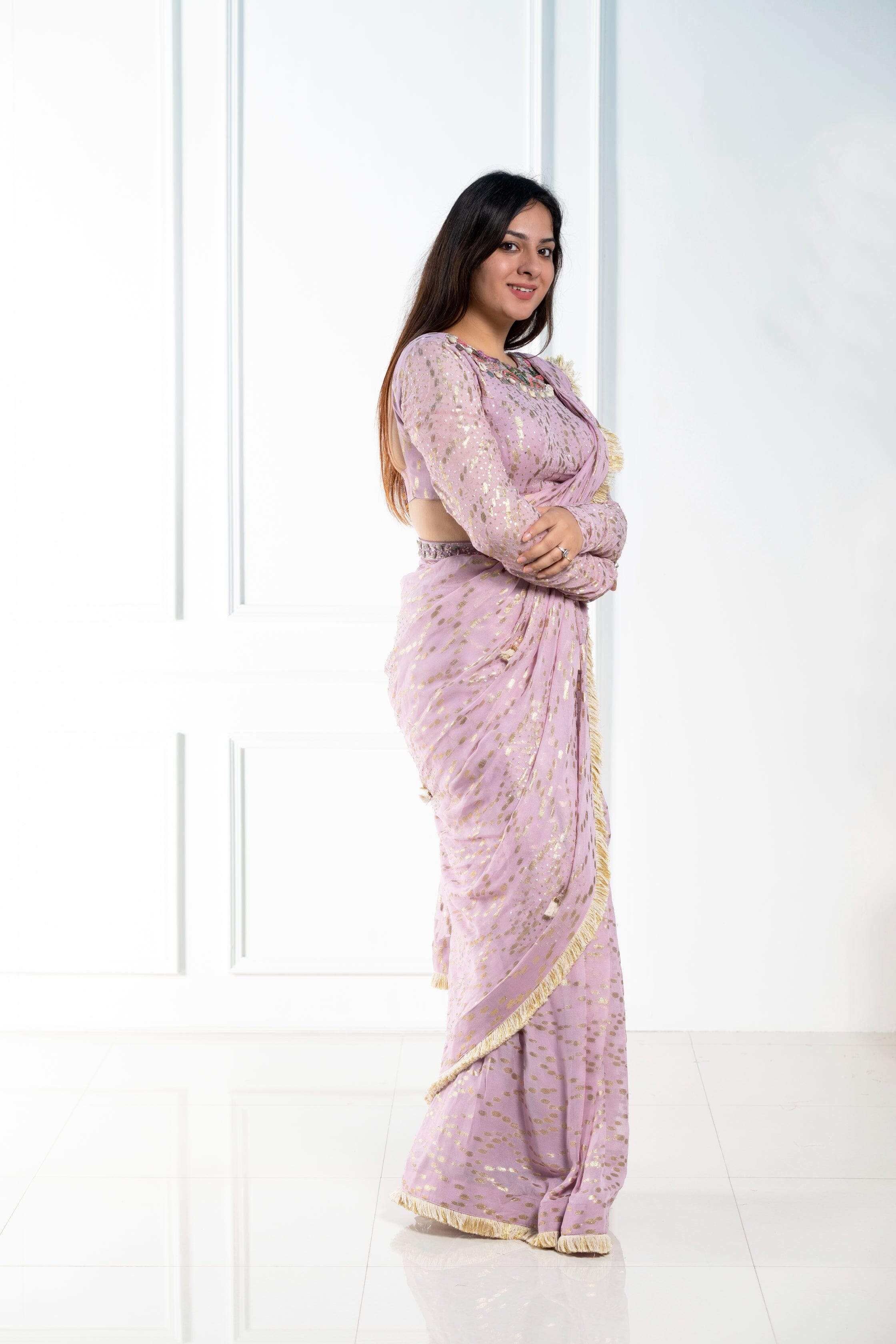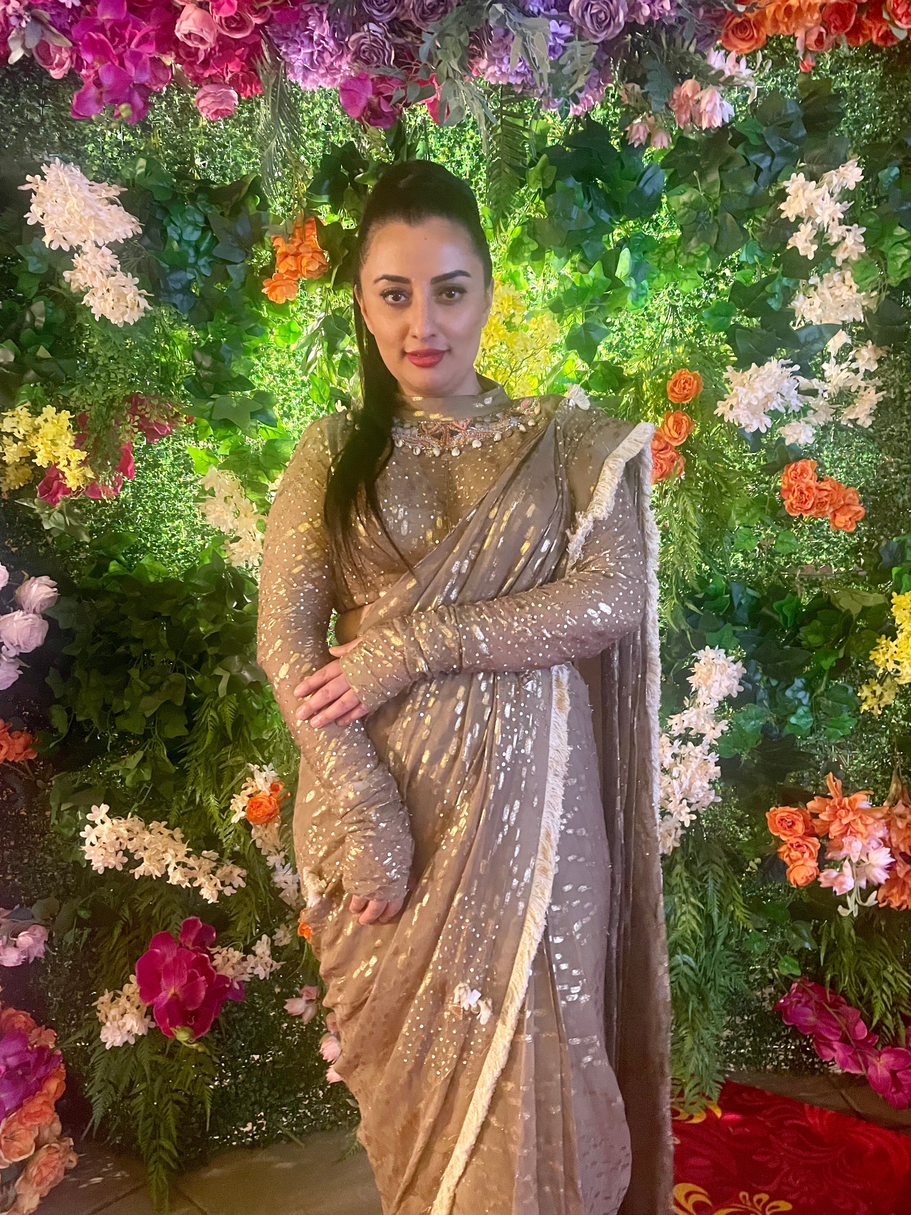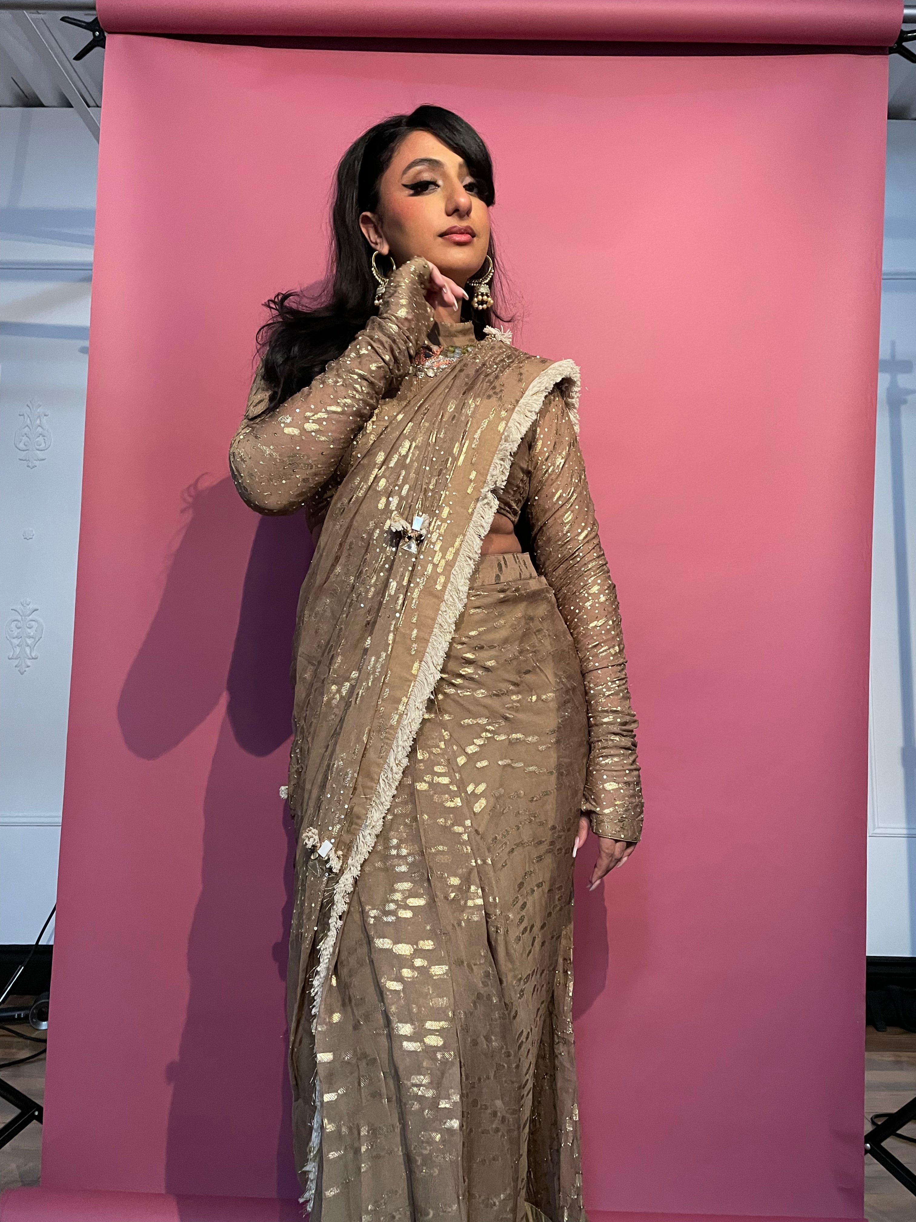 Sari pre-drapeado con guante