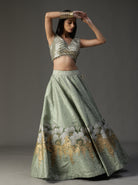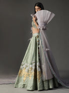 Conjunto lehnga pintado a mano verde mar