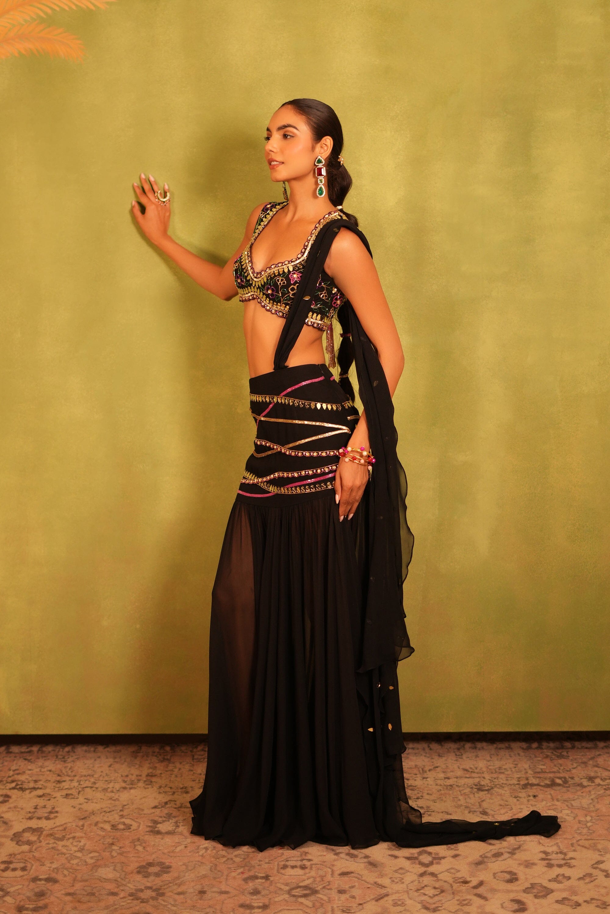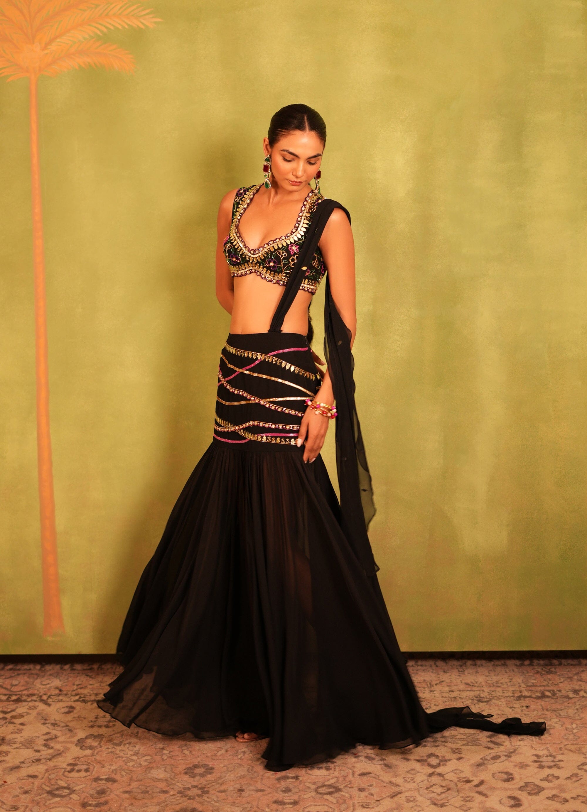 - Blusa de red, Lehnga de red, Duppatta de red y forro Shantoon