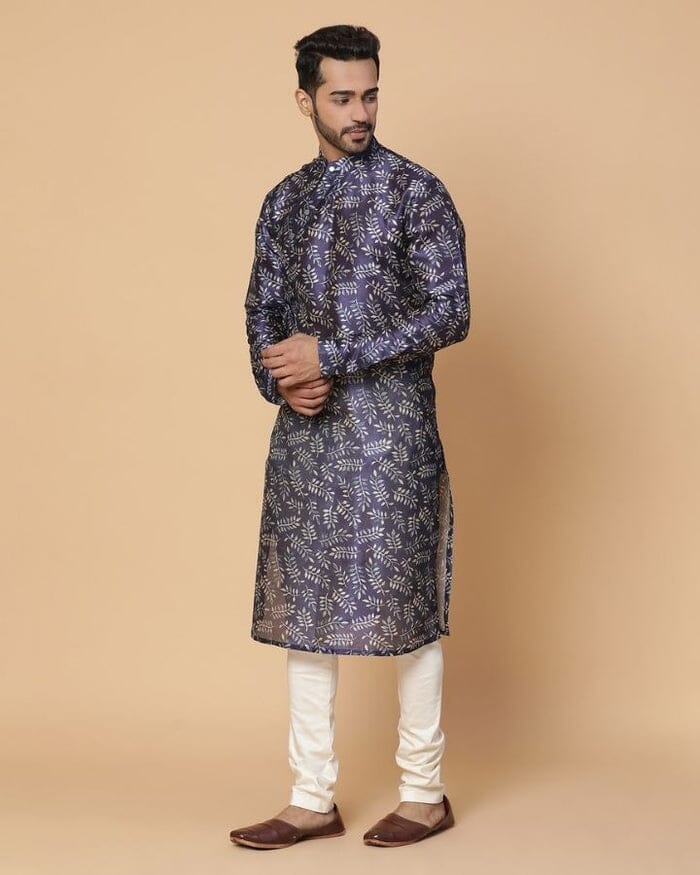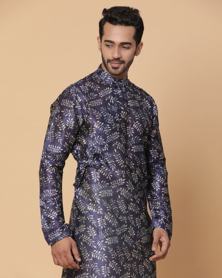 Featuring a blue kurta in silk base with leaf and floral print. This contains only one piece.