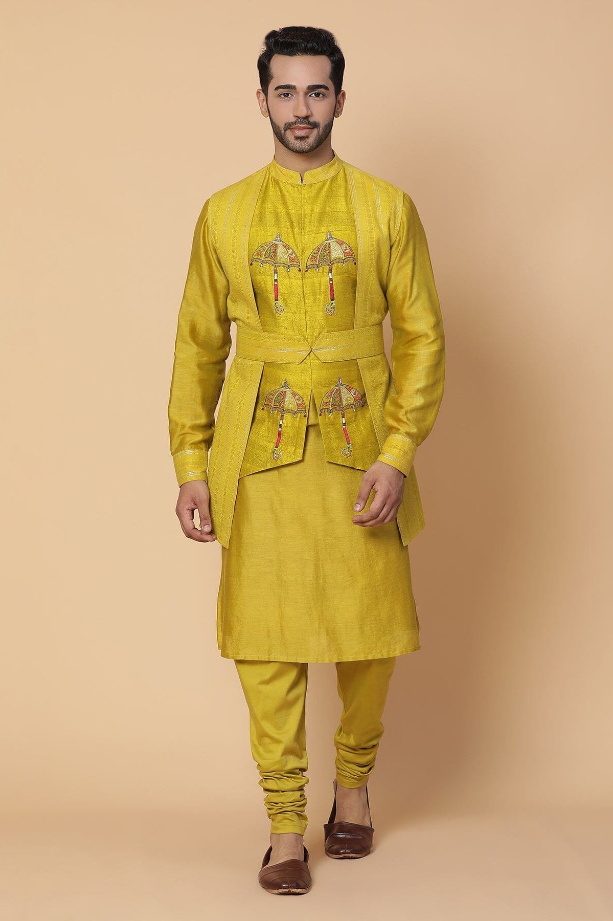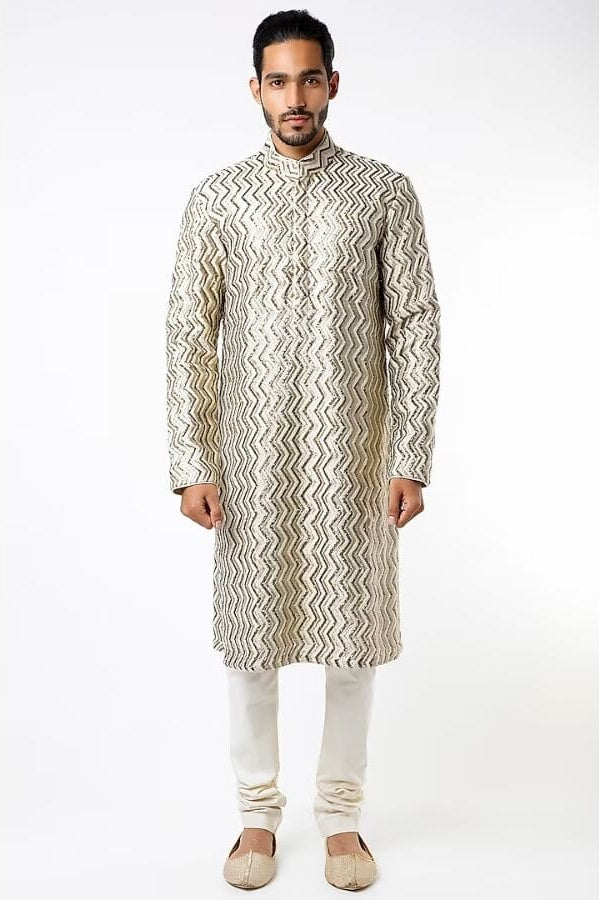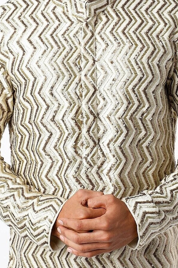 Ropa masculina innovadora presentada por Chirag Makkar. Esta etiqueta exhibe conjuntos de kurta únicos y atuendos indo-occidentales modernos. El uso de telas de lujo como chanderi y seda cruda hace que cada conjunto se destaque entre la multitud". Todas las piezas se fabrican bajo pedido y los plazos de entrega pueden oscilar entre 20 y 25 días.
