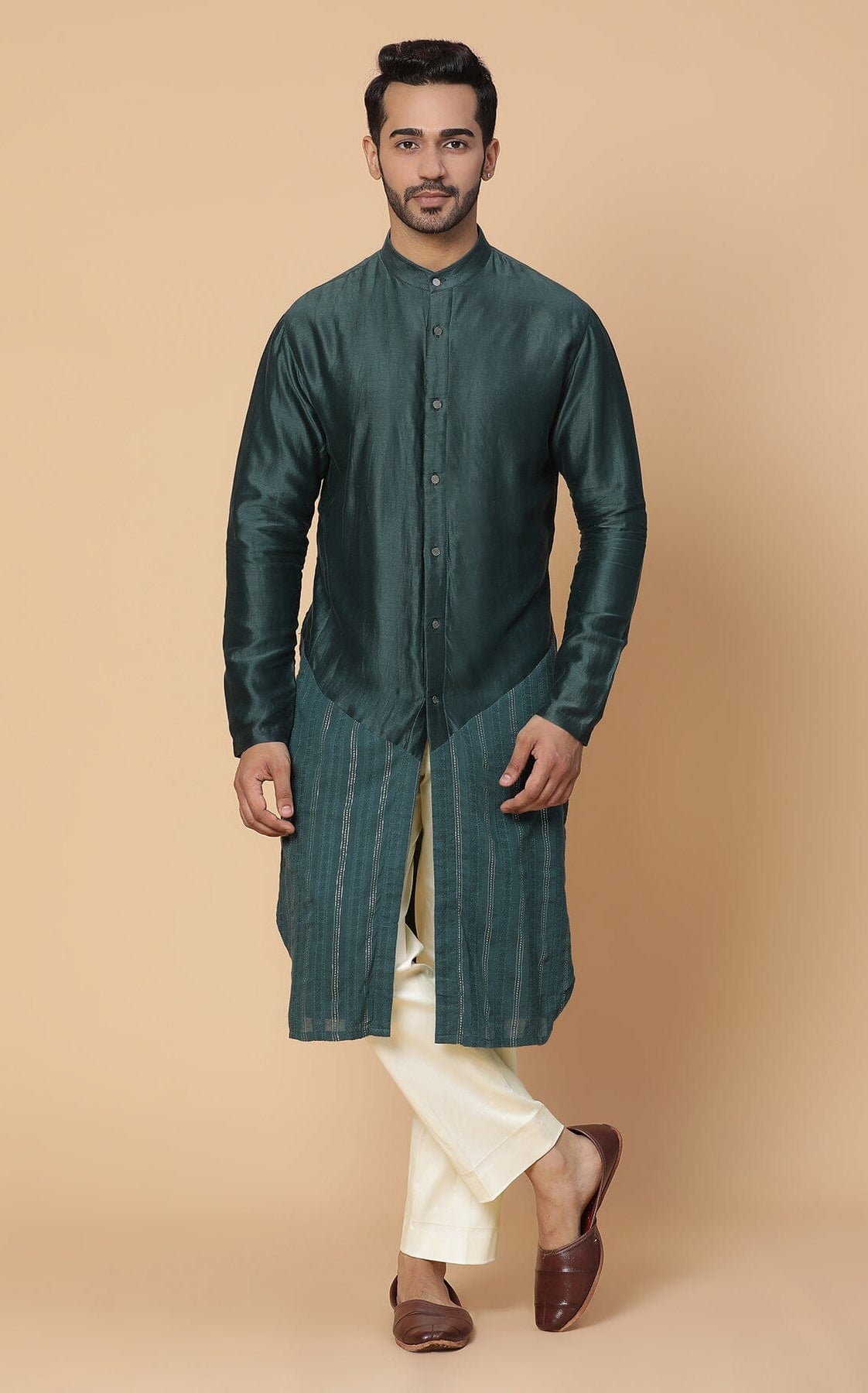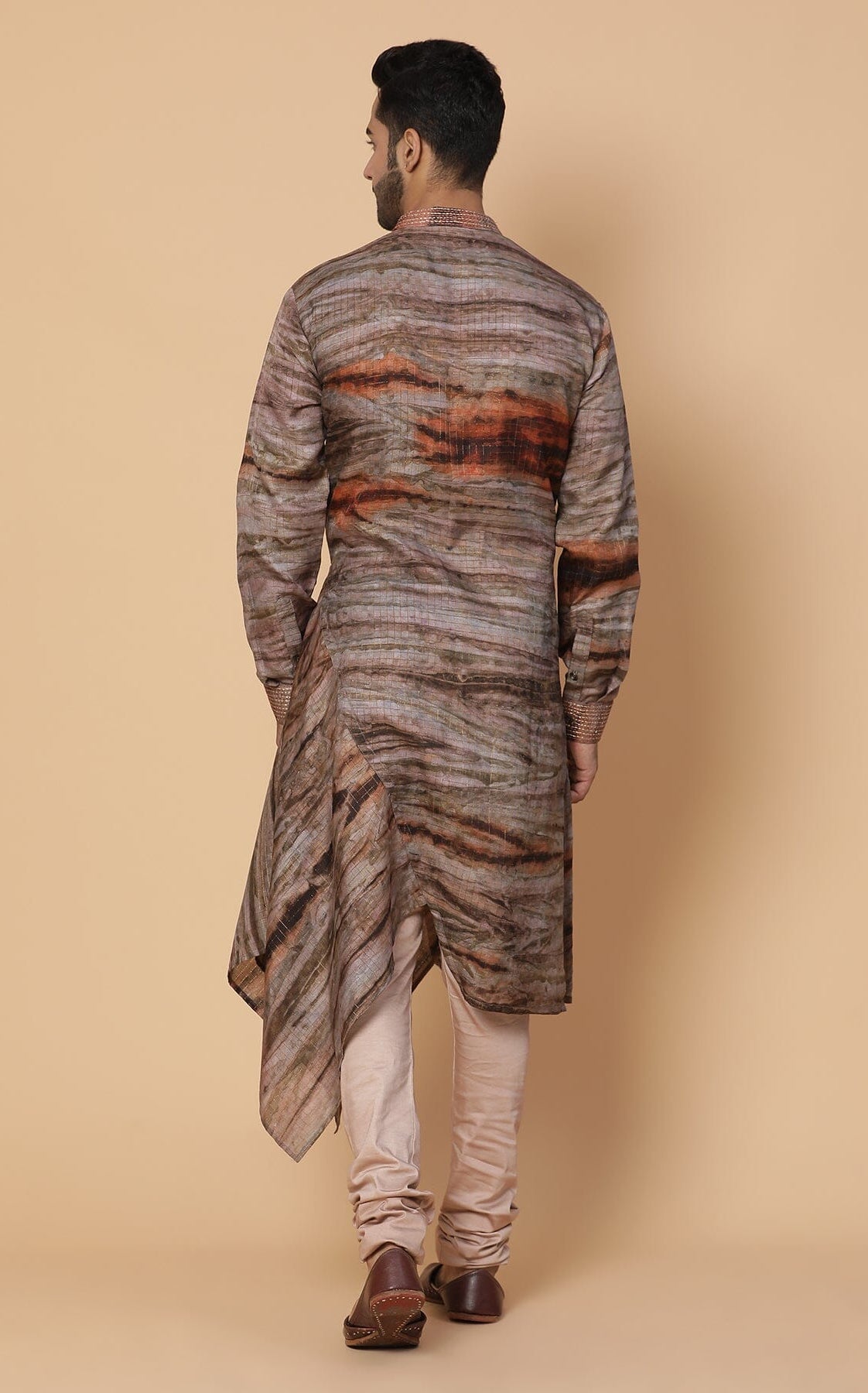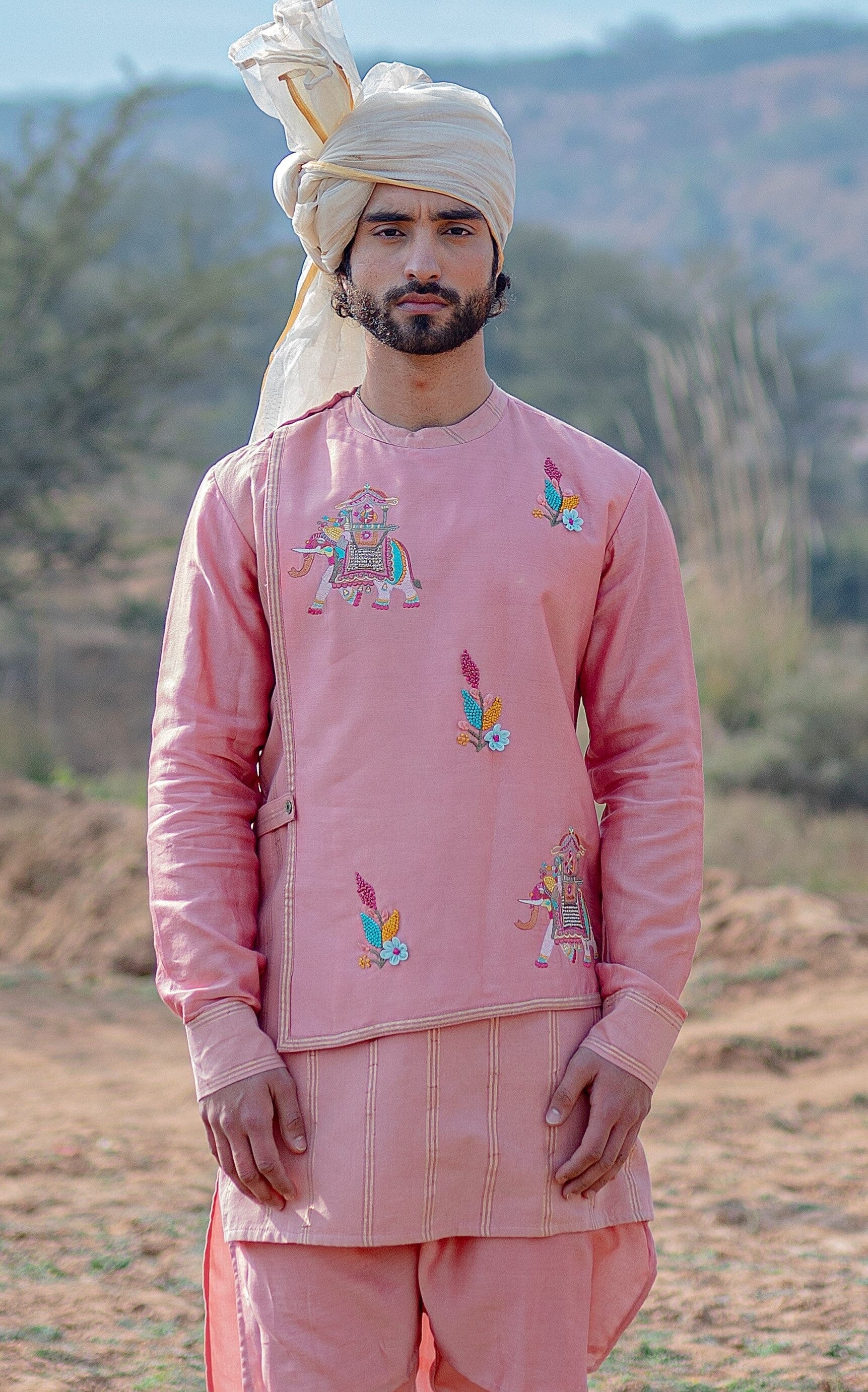 Ropa masculina innovadora presentada por Chirag Makkar. Esta etiqueta exhibe conjuntos de kurta únicos y atuendos indo-occidentales modernos. El uso de telas de lujo como chanderi y seda cruda hace que cada conjunto se destaque entre la multitud". Todas las piezas se fabrican bajo pedido y los plazos de entrega pueden oscilar entre 20 y 25 días.