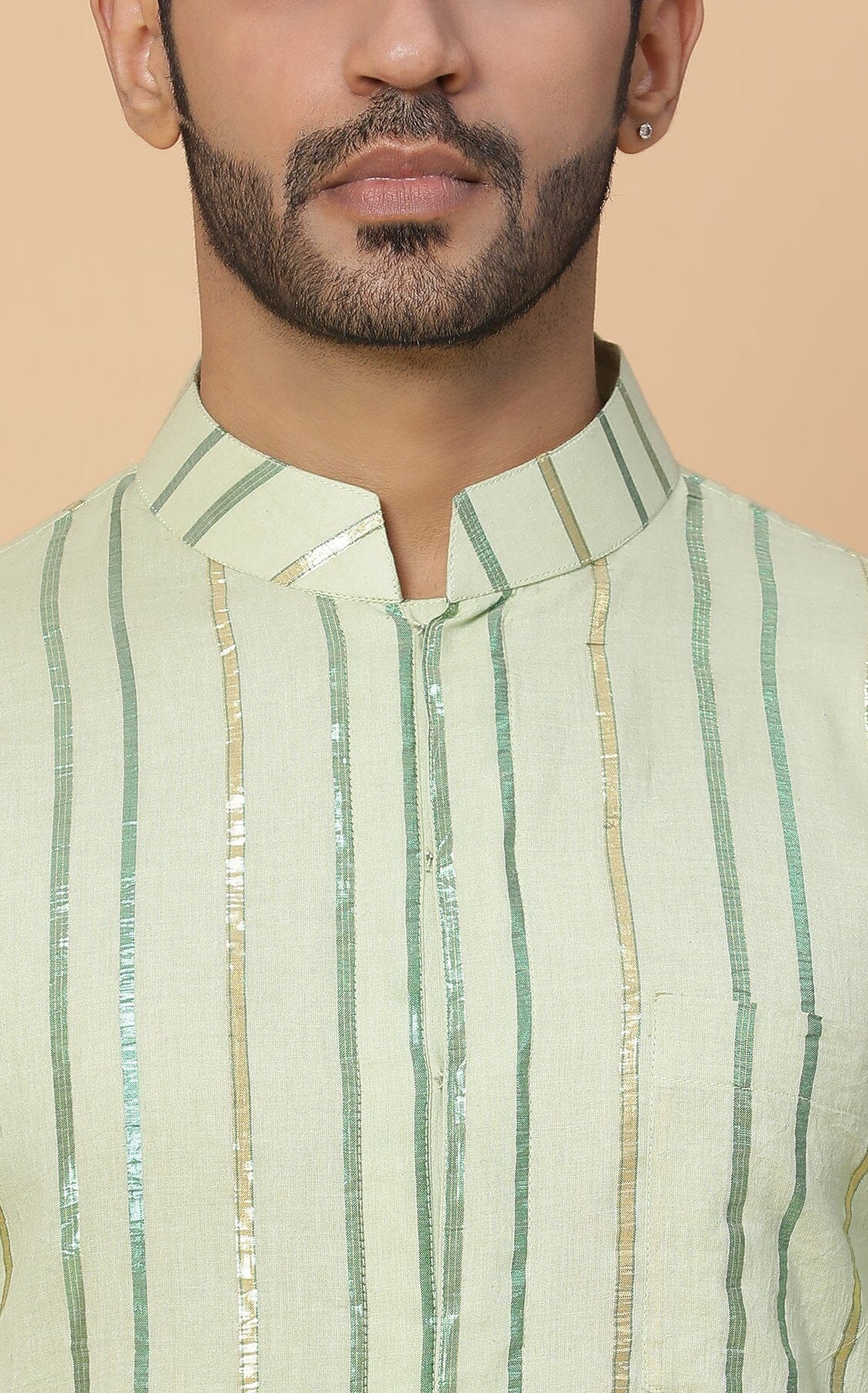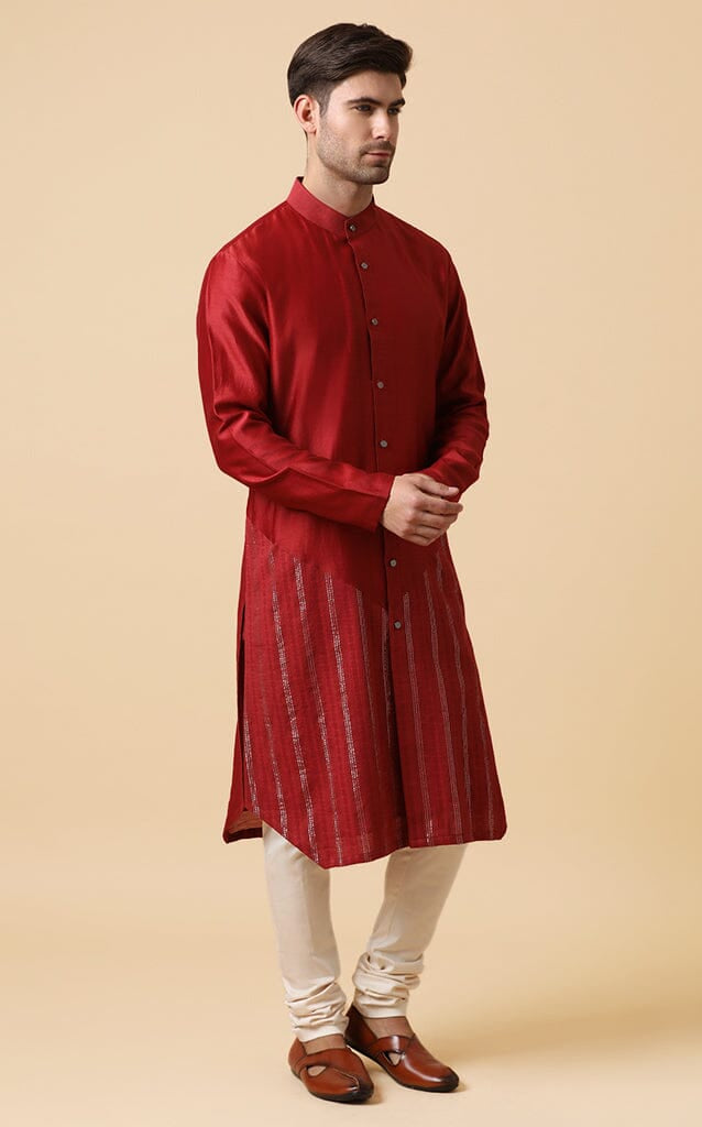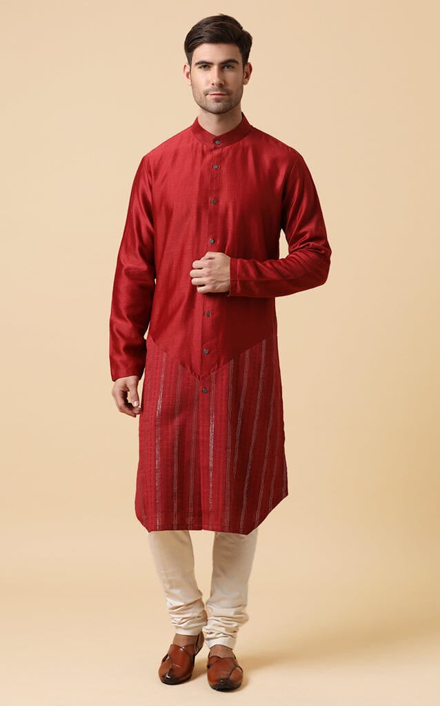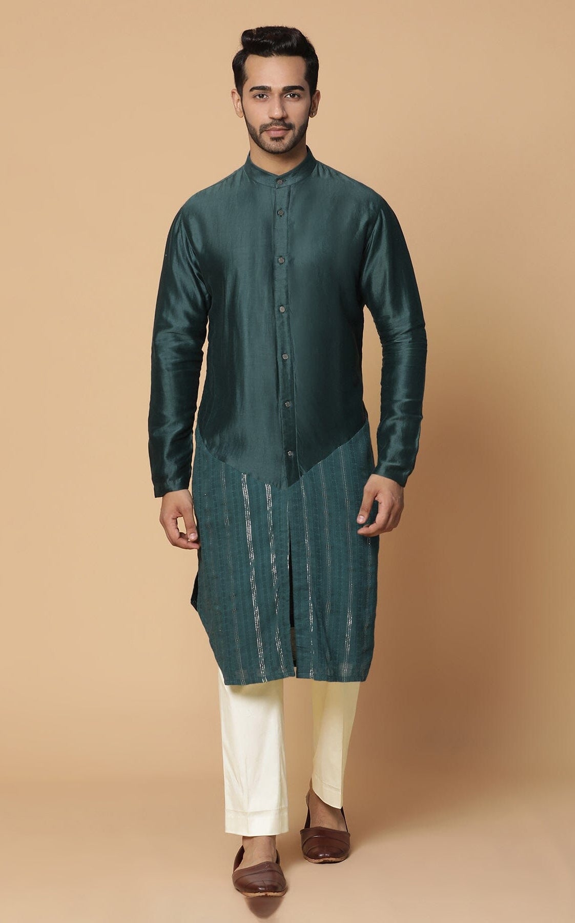 Ropa masculina innovadora presentada por Chirag Makkar. Esta etiqueta exhibe conjuntos de kurta únicos y atuendos indo-occidentales modernos. El uso de telas de lujo como chanderi y seda cruda hace que cada conjunto se destaque entre la multitud". Todas las piezas se fabrican bajo pedido y los plazos de entrega pueden oscilar entre 20 y 25 días.