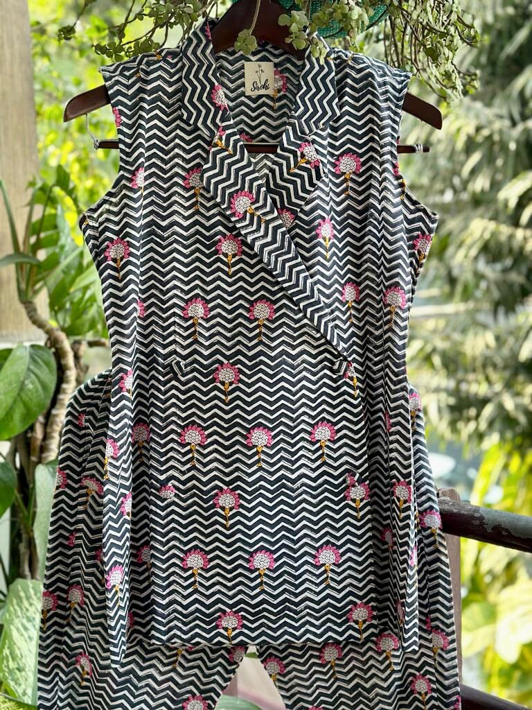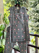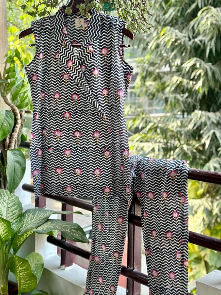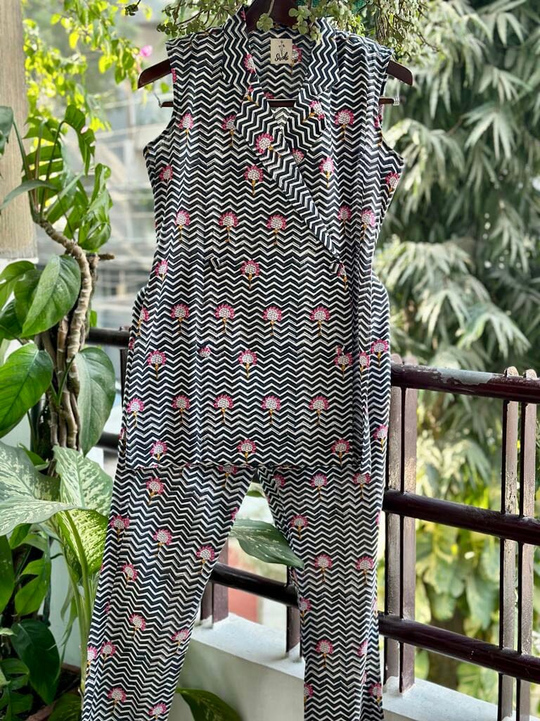 Blazer cruzado en chevron en negro y blanco con pantalones
