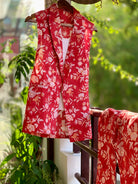 Blazer sin mangas con estampado floral rojo - Conjunto de pantalón