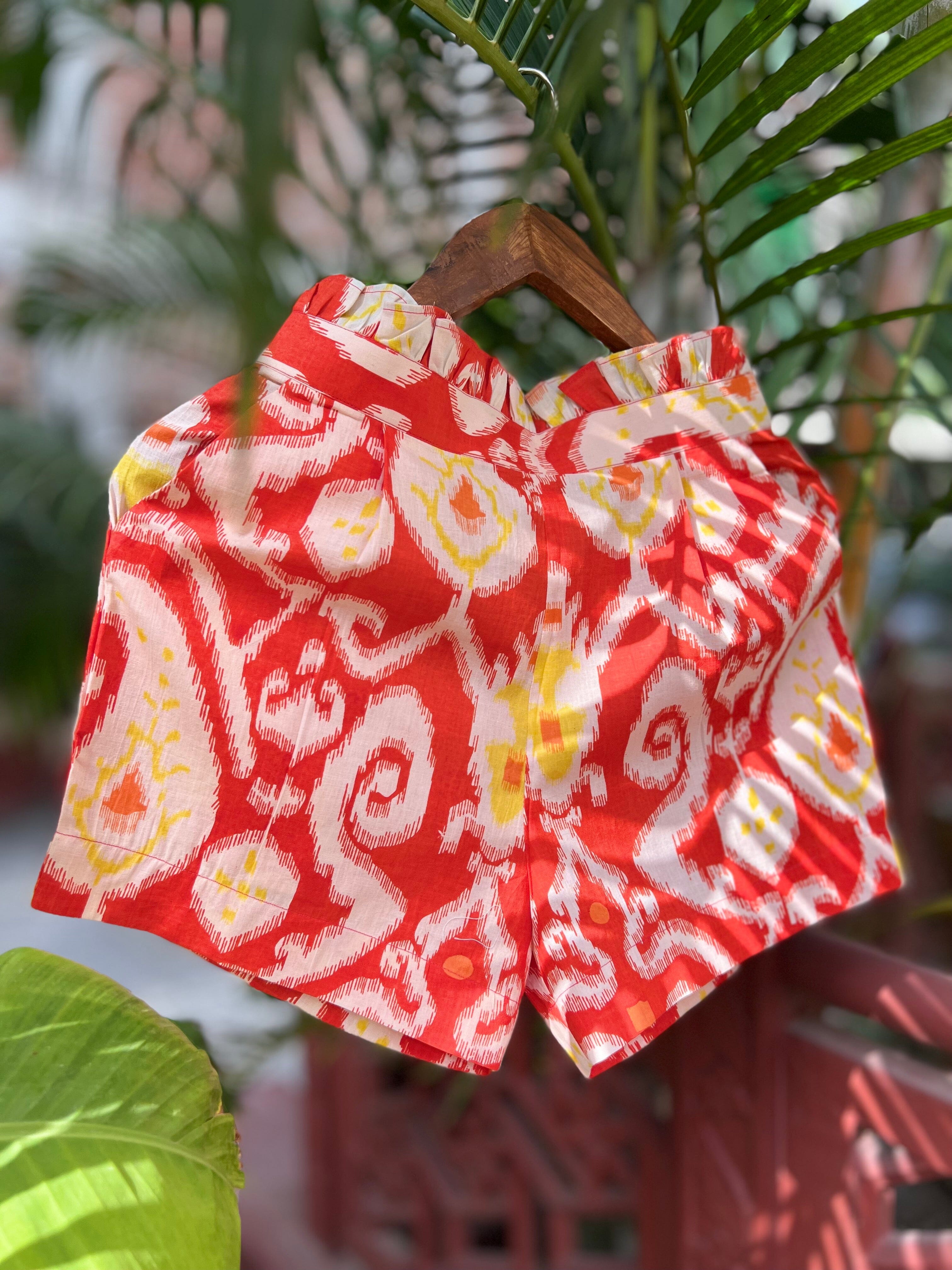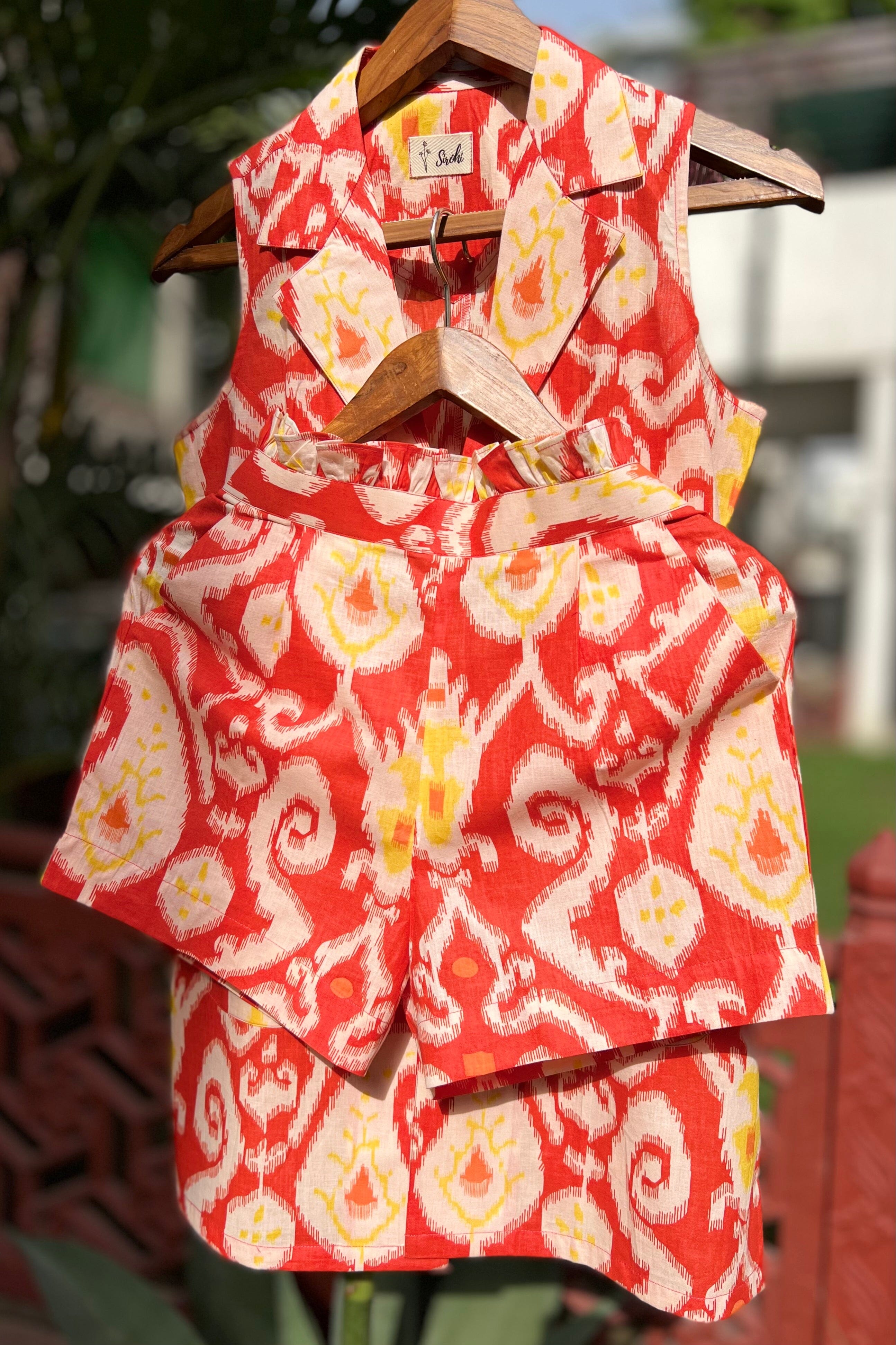 Conjunto de chaqueta y pantalón corto Ikat mandarina