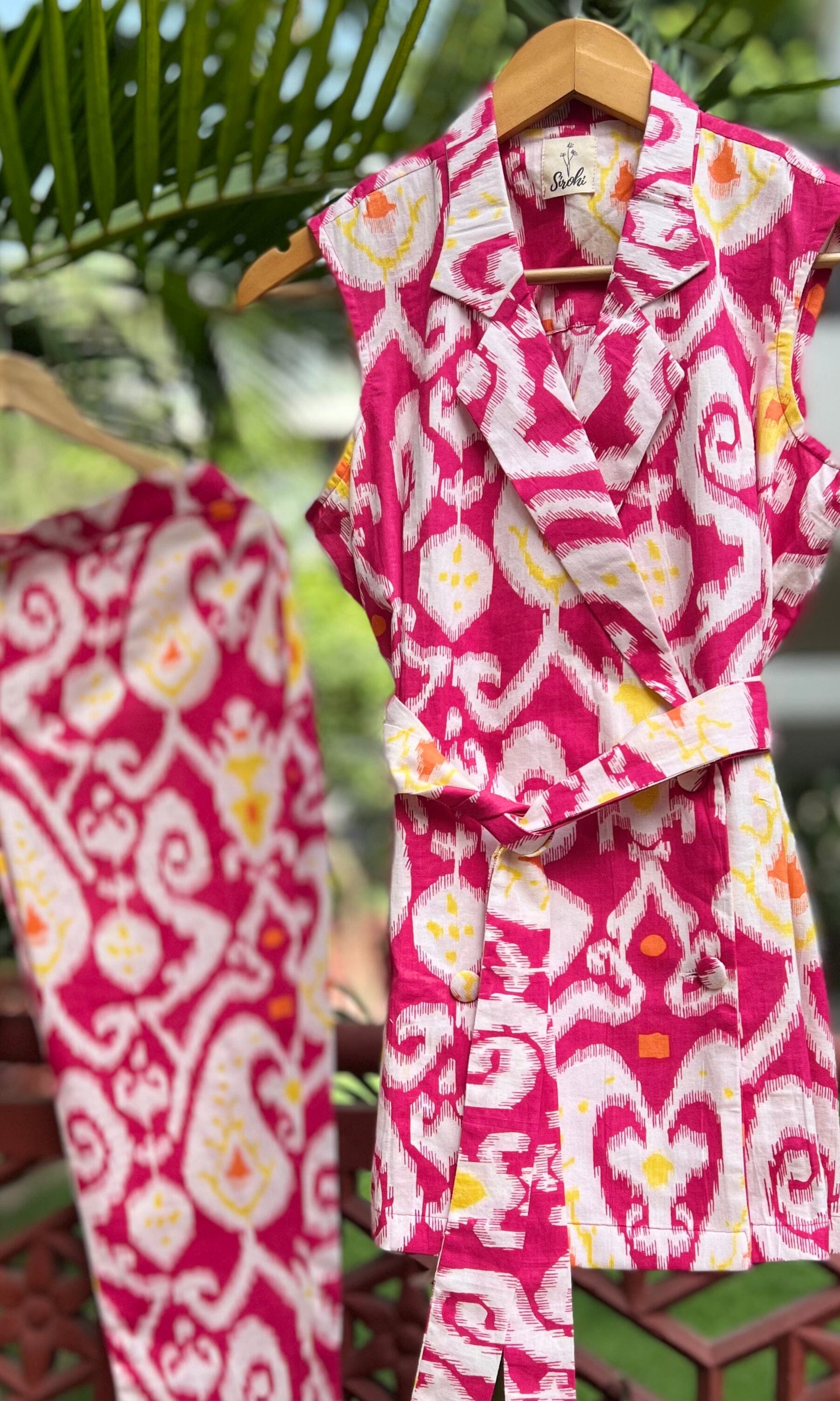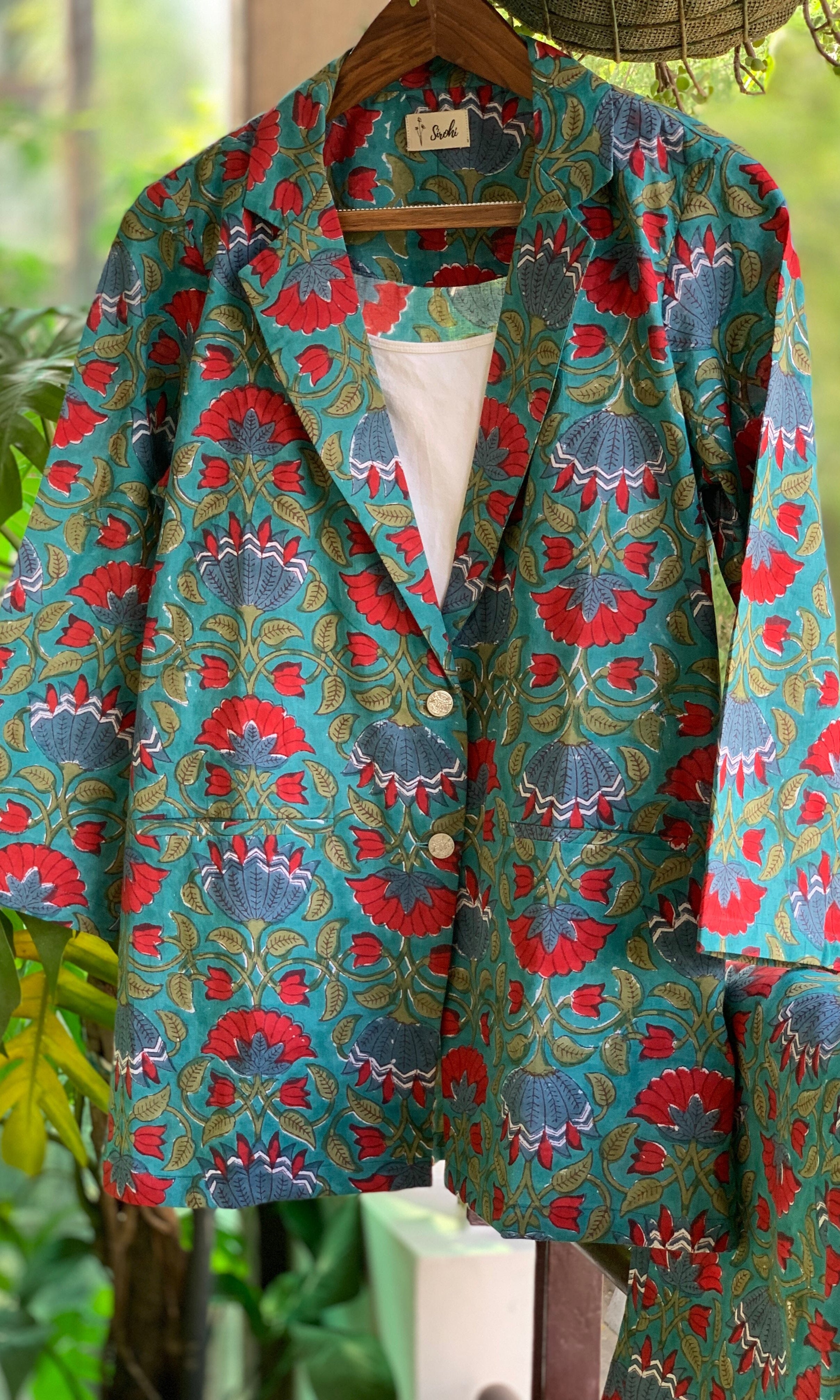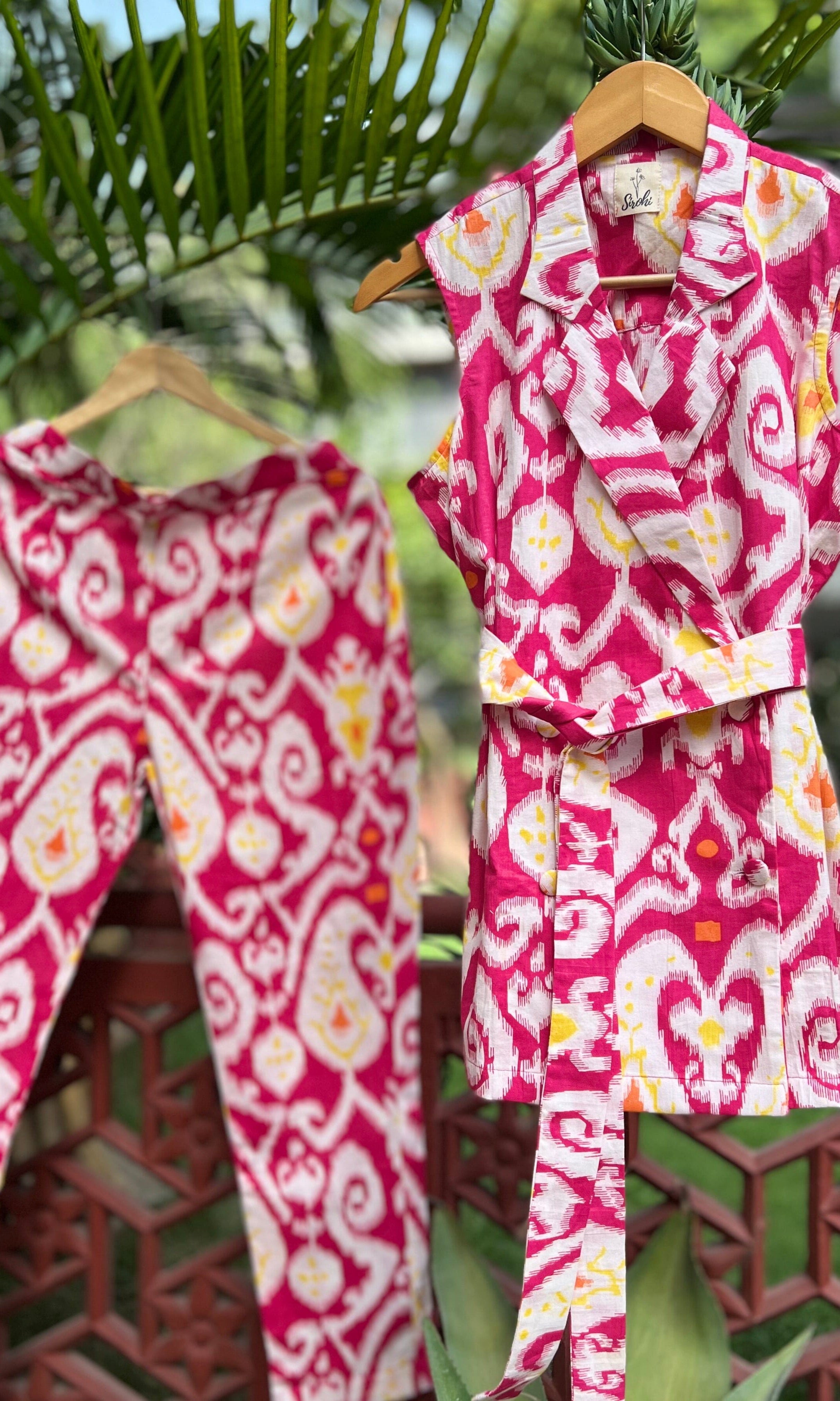 Algodón cultivado orgánicamente: estampado en bloques a mano e incluye una gama versátil de kimonos, batas, conjuntos deportivos, pantalones tipo blazer, trajes, caftanes, vestidos, conjuntos de ropa de descanso y mucho más. El diseñador cree en ser terroso, orgánico y fiel a nuestra estética india, que refleja en cada uno de nuestros productos que son ambientalmente sostenibles, la verdadera necesidad del momento.