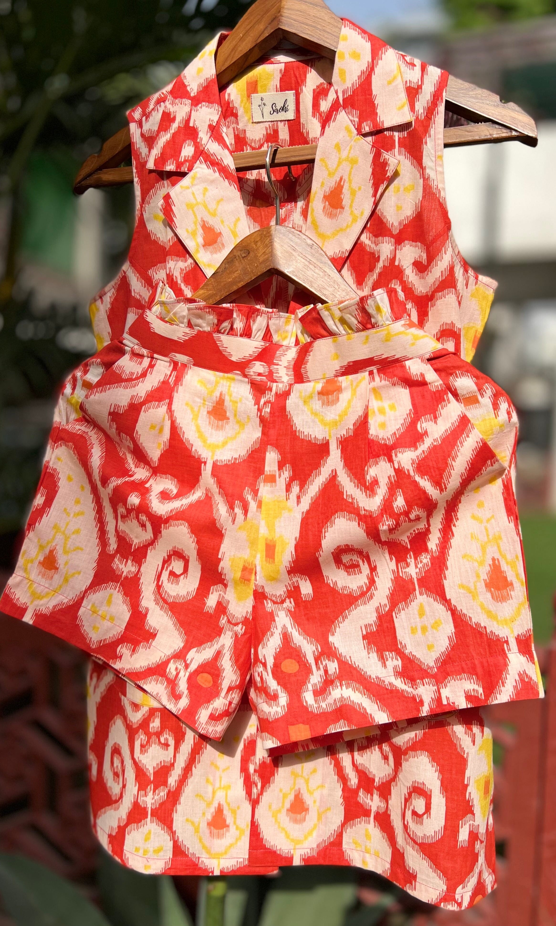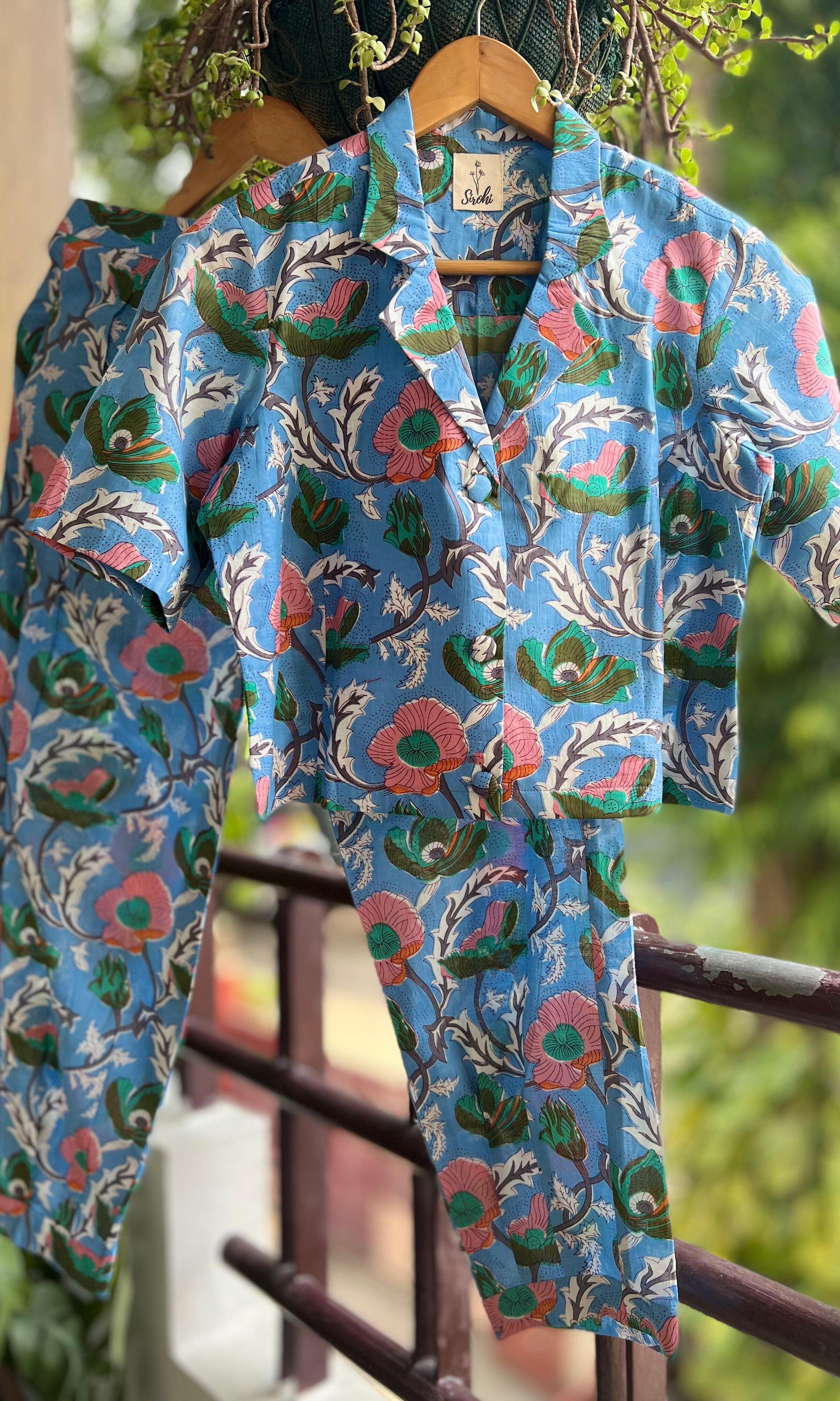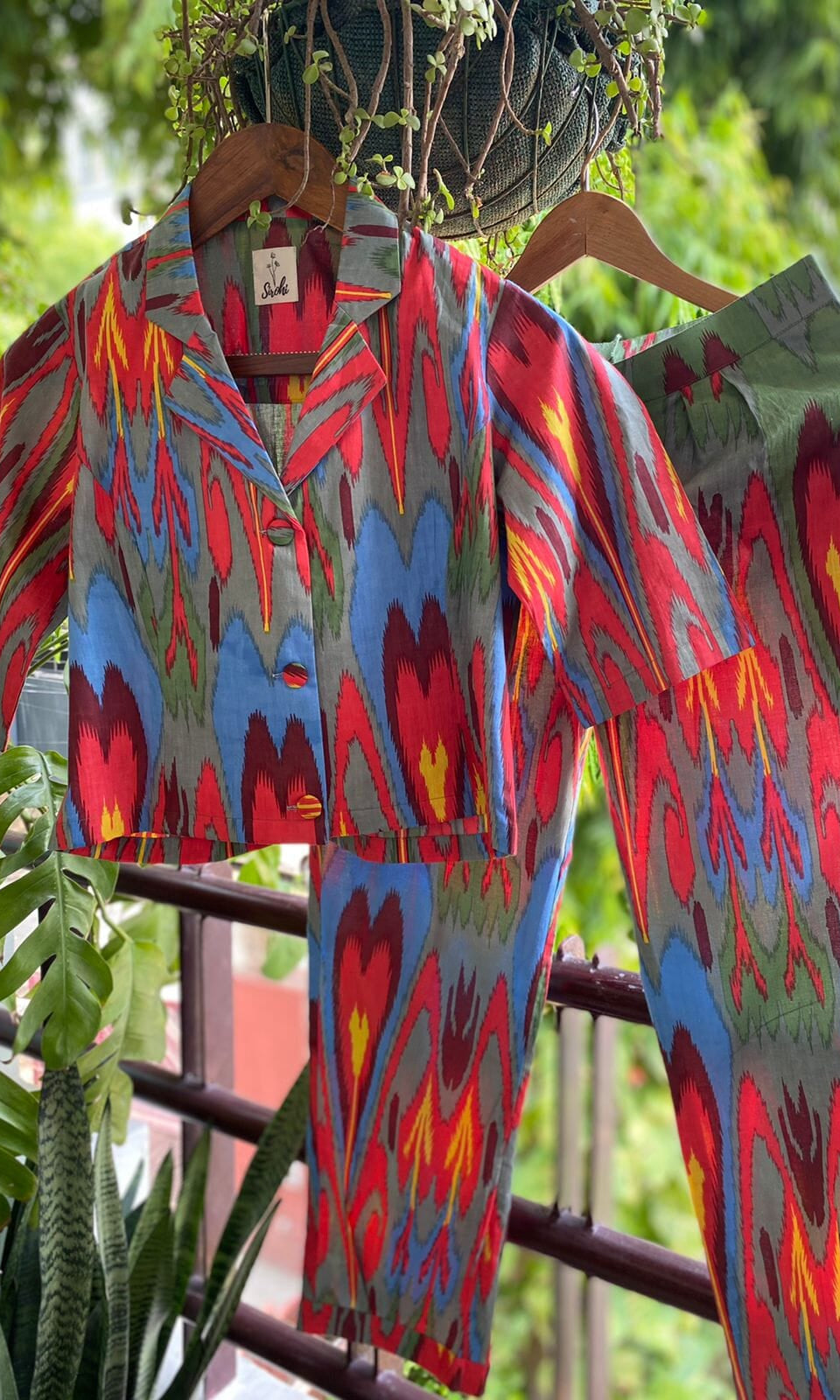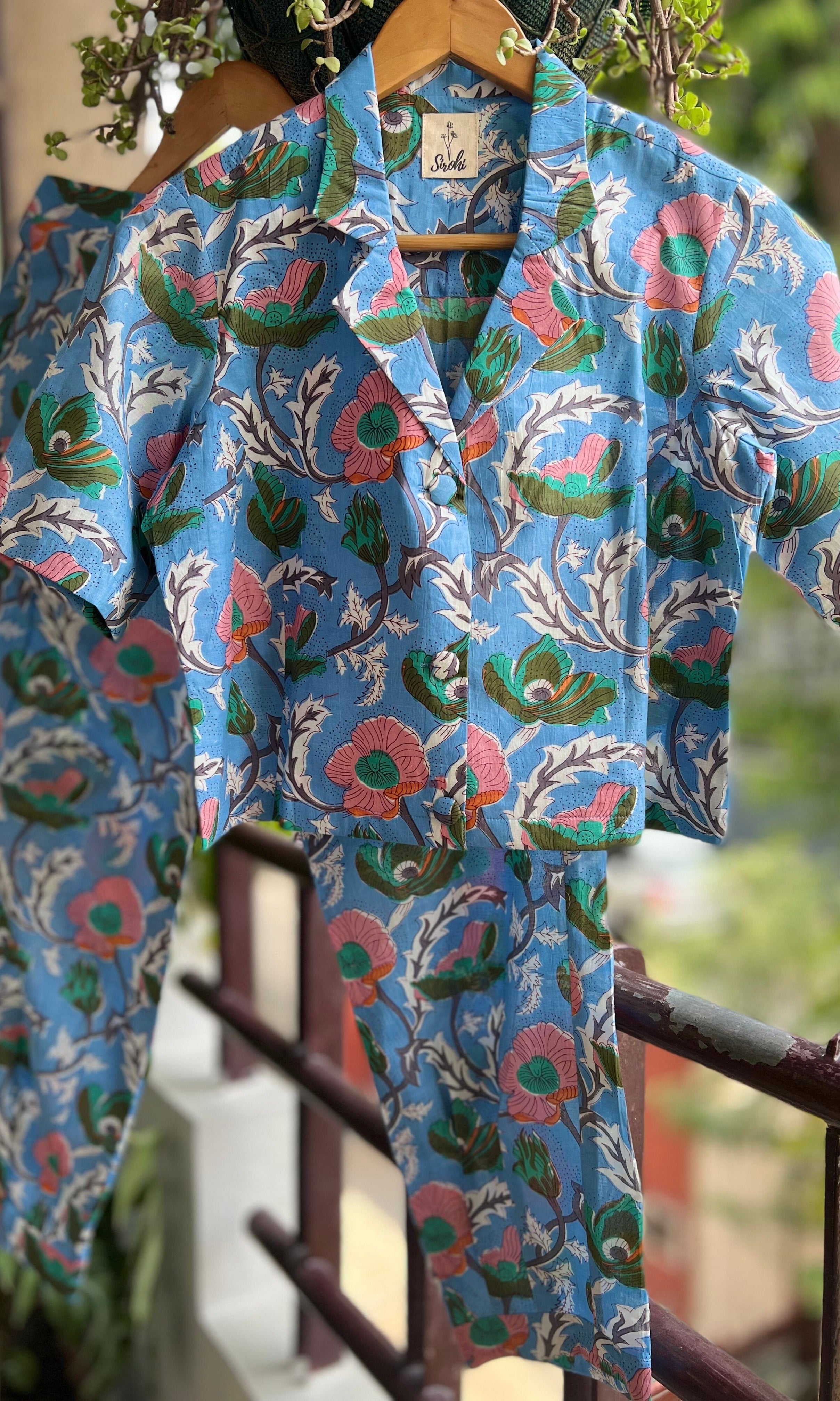 Algodón cultivado orgánicamente: estampado en bloques a mano e incluye una gama versátil de kimonos, batas, conjuntos deportivos, pantalones tipo blazer, trajes, caftanes, vestidos, conjuntos de ropa de descanso y mucho más. El diseñador cree en ser terroso, orgánico y fiel a nuestra estética india, que refleja en cada uno de nuestros productos que son ambientalmente sostenibles, la verdadera necesidad del momento.