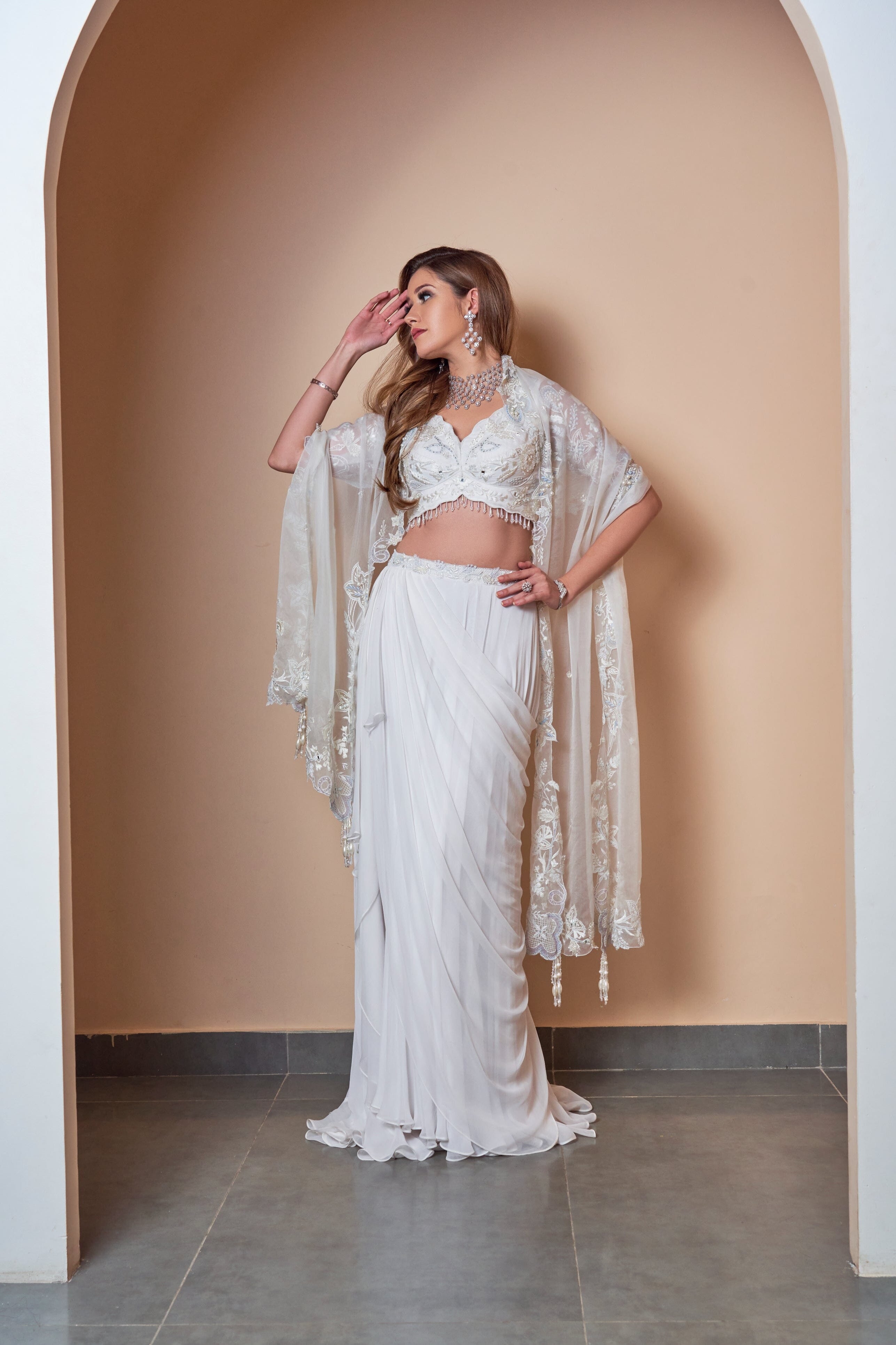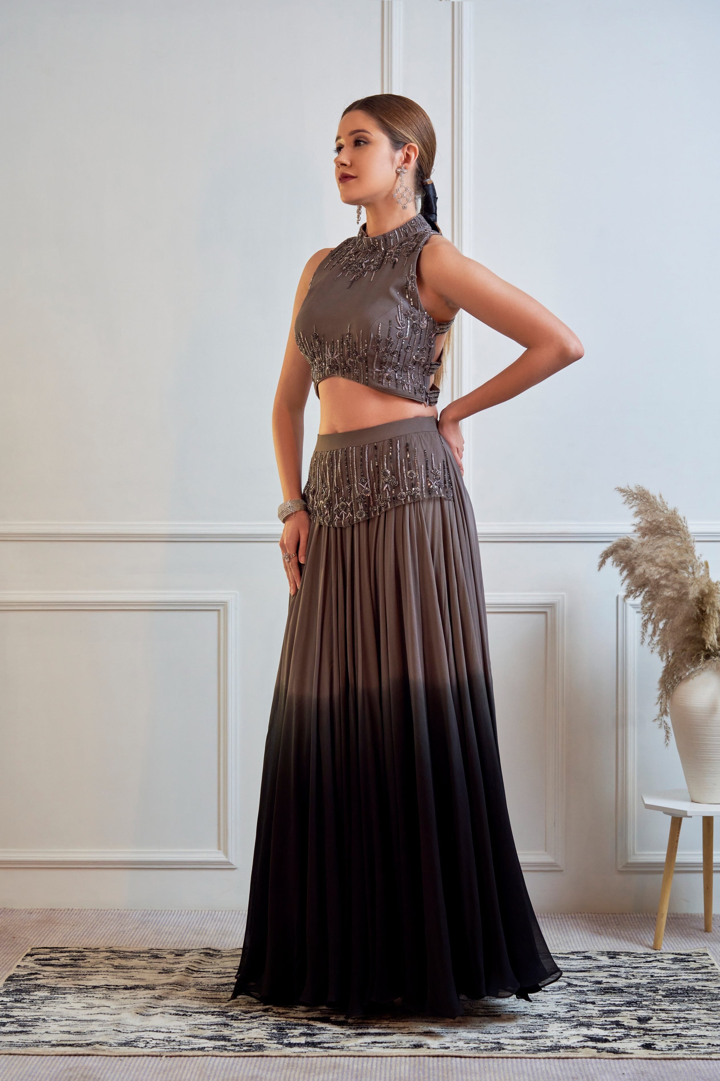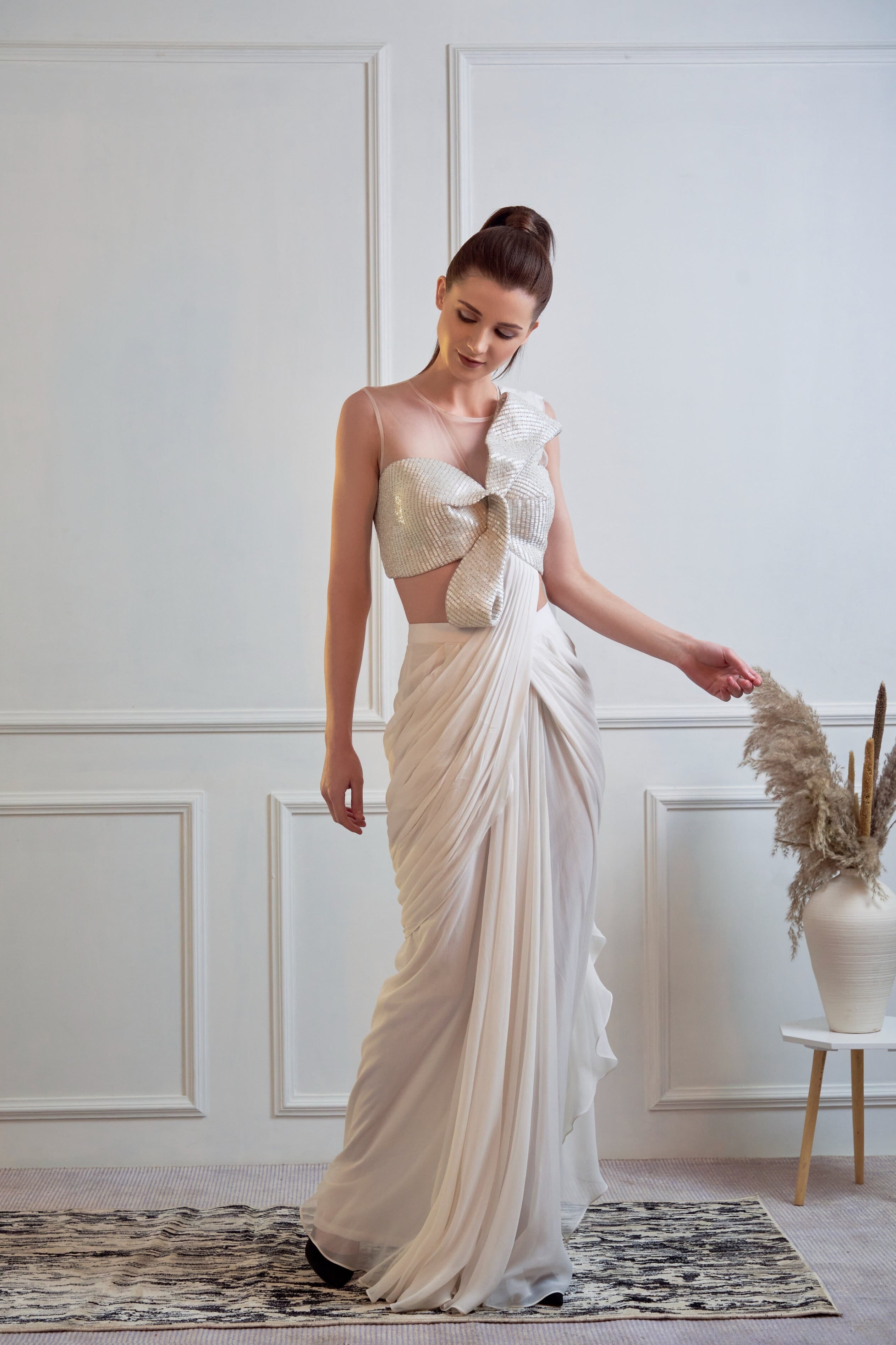 JADE fue fundada en 2013 por su fundador Ashima. Su colección es la definición de tradicional pero moderno. Encontrará paletas de colores pastel, saris plisados y elegantes piezas drapeadas. Todos los conjuntos están confeccionados en tejidos de alta calidad como georgette, seda, crepé y red con trabajos bordados a mano. Si bien algunas piezas están listas para enviarse, otras piezas personalizadas pueden tardar de dos a tres semanas en entregarse.