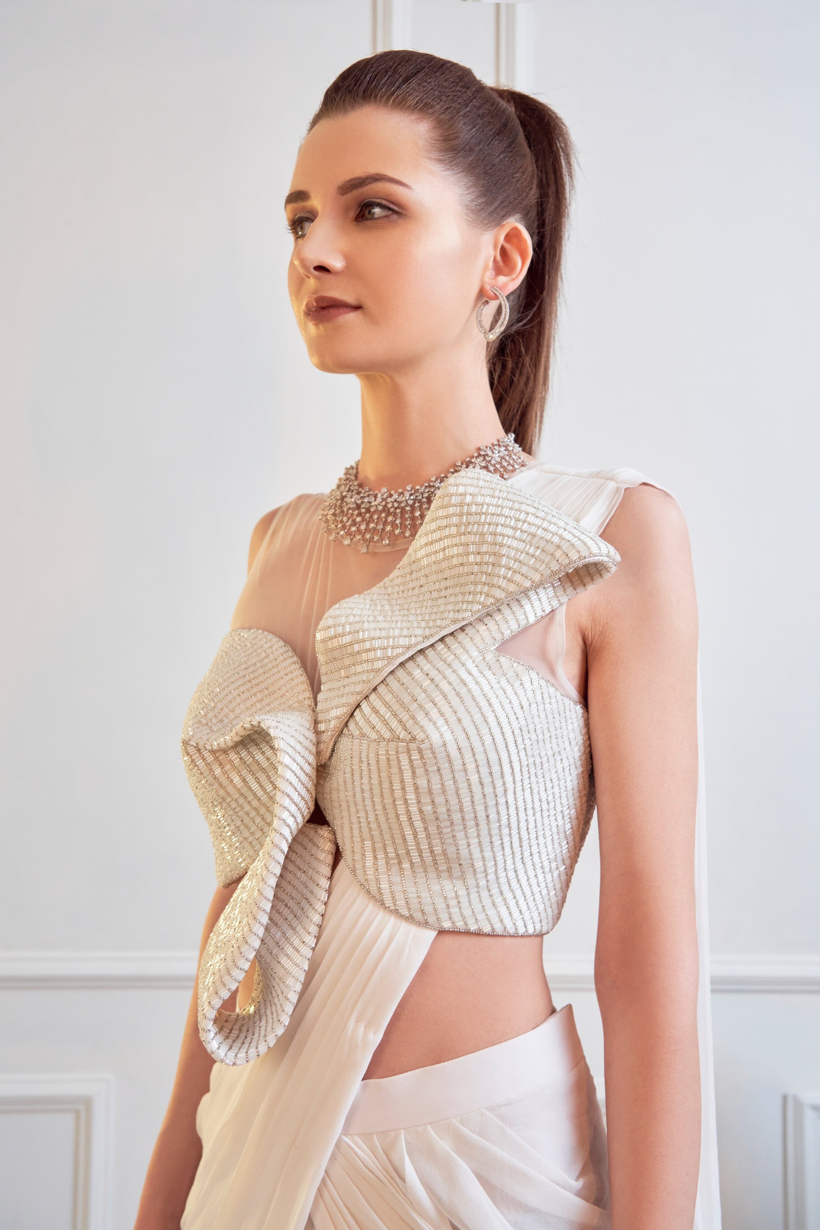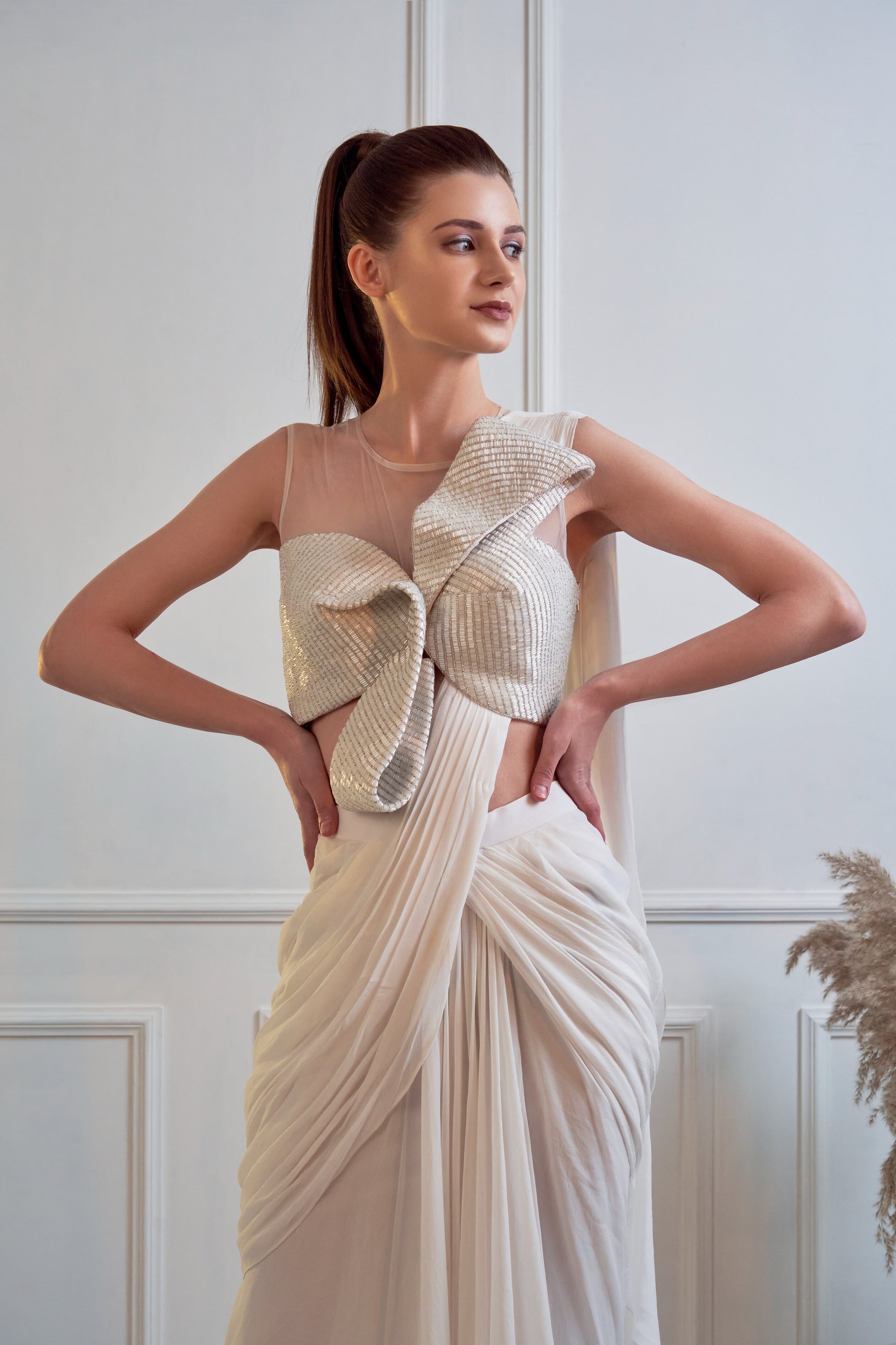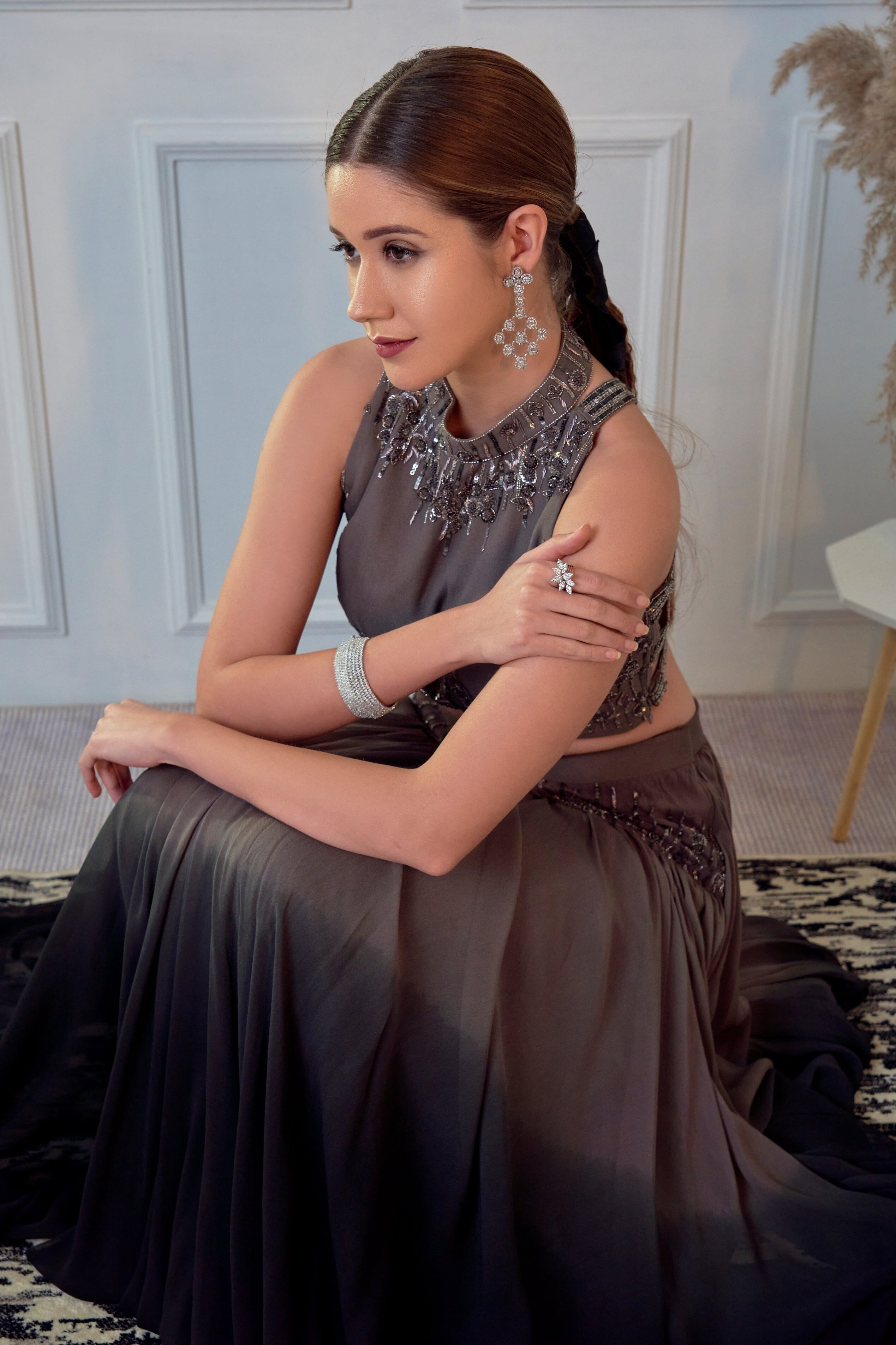 JADE fue fundada en 2013 por su fundador Ashima. Su colección es la definición de tradicional pero moderno. Encontrará paletas de colores pastel, saris plisados y elegantes piezas drapeadas. Todos los conjuntos están confeccionados en tejidos de alta calidad como georgette, seda, crepé y red con trabajos bordados a mano. Si bien algunas piezas están listas para enviarse, otras piezas personalizadas pueden tardar de dos a tres semanas en entregarse.