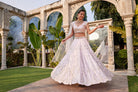 Esta lehenga rosa bebé es una hermosa combinación de tradición y modernidad. Con un intrincado bordado en forma de espejo, es la elección perfecta para una ocasión especial. El delicado tono rosado y los brillantes detalles en espejo seguramente te harán destacar.