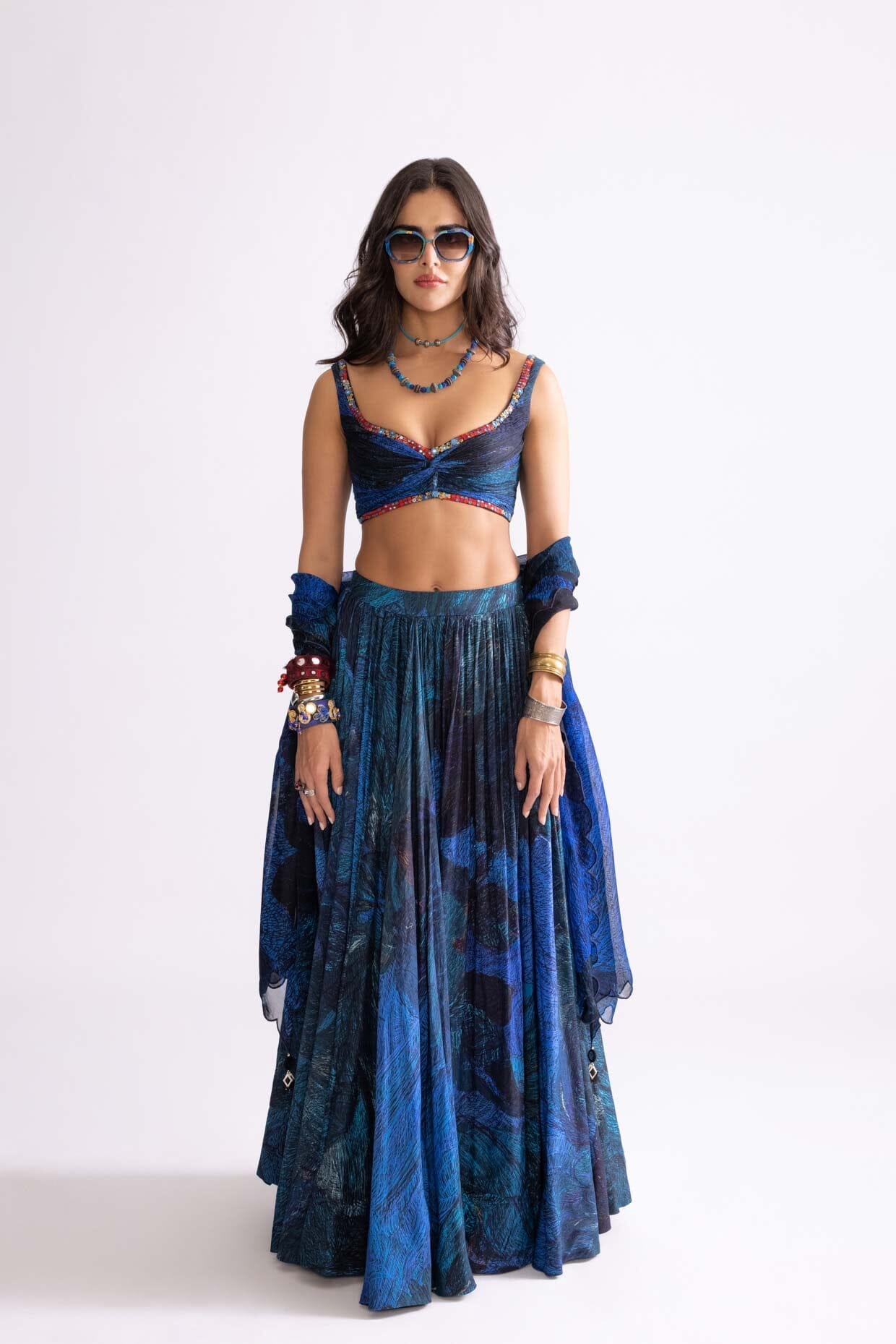 Who Run the World: Cerulean Blue Embellished Half Lehenga Set