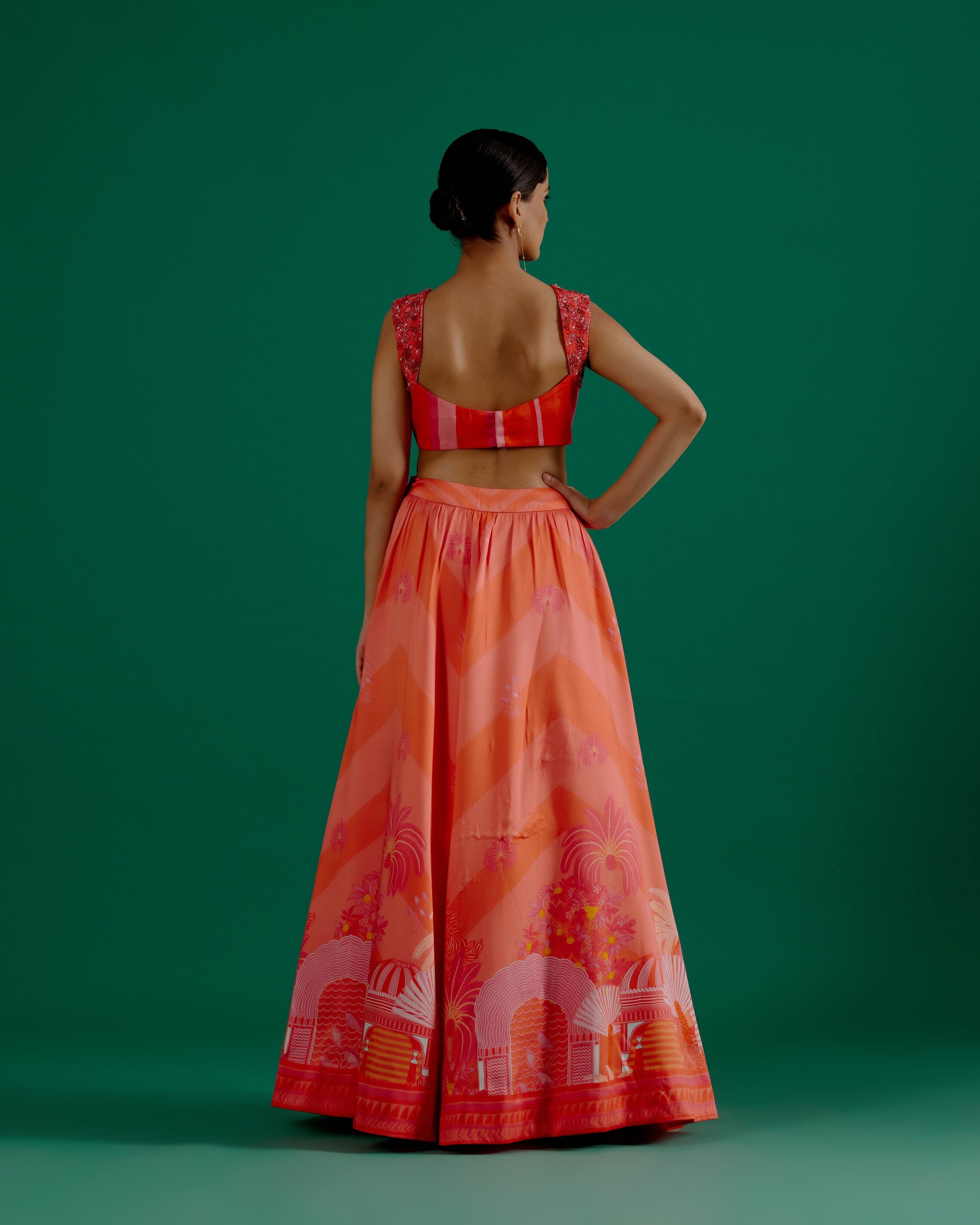 Conjunto de lehnga pintado a mano de color naranja quemado