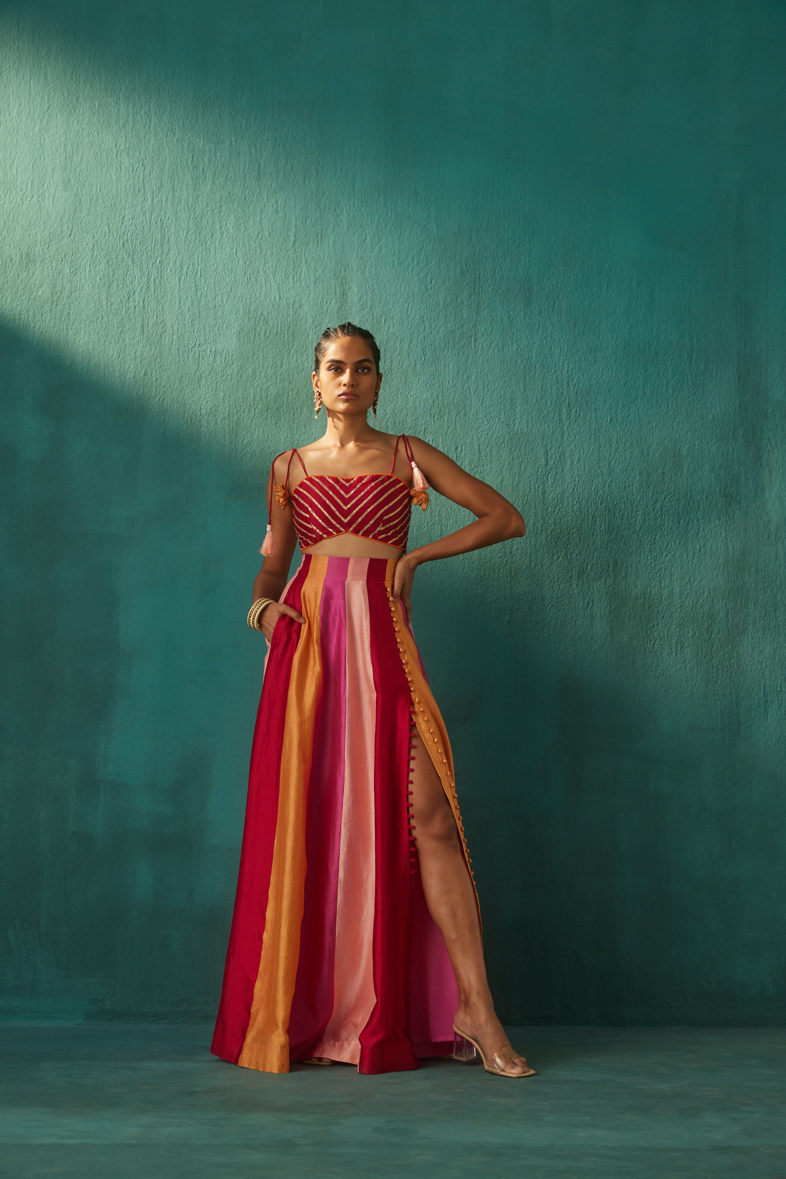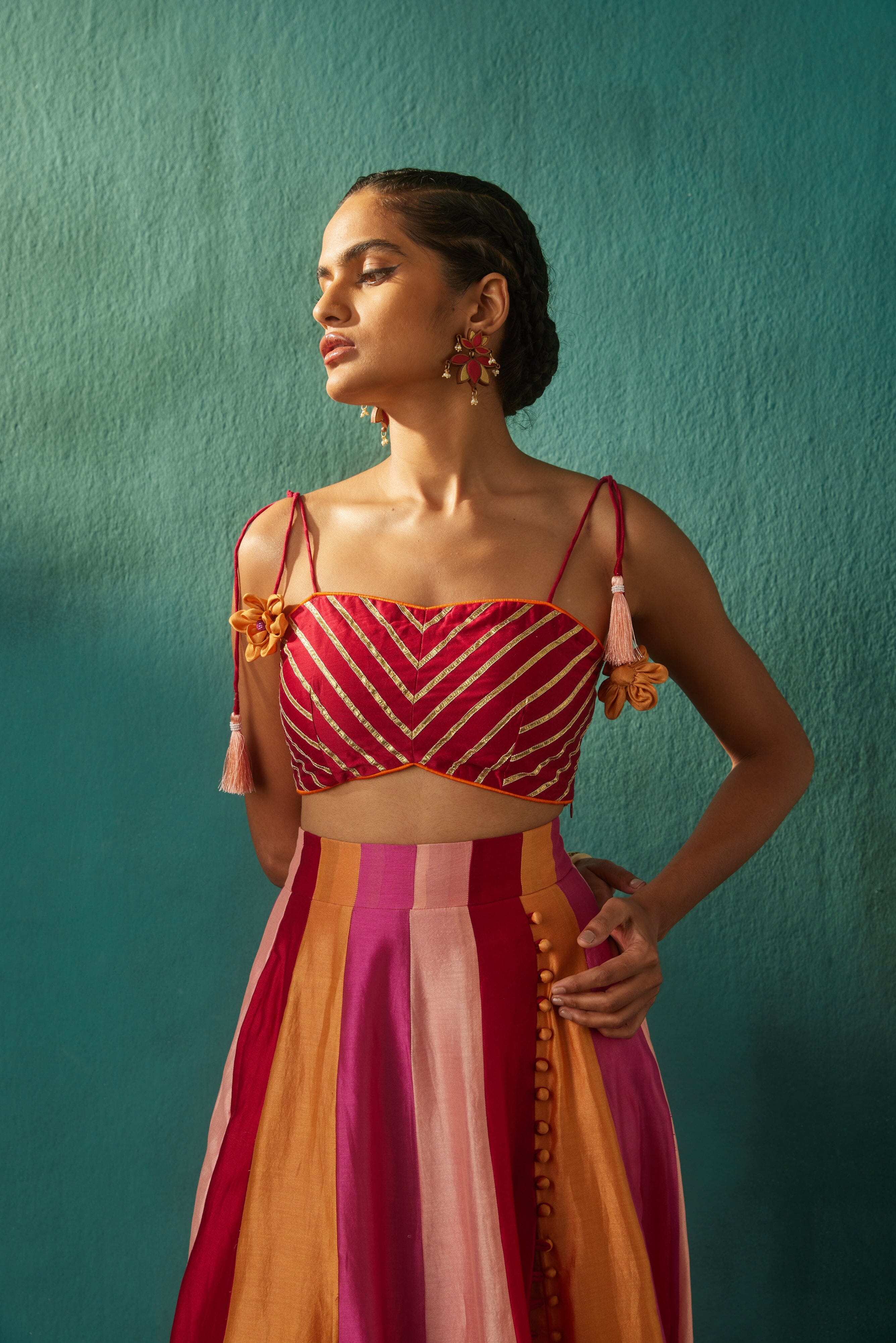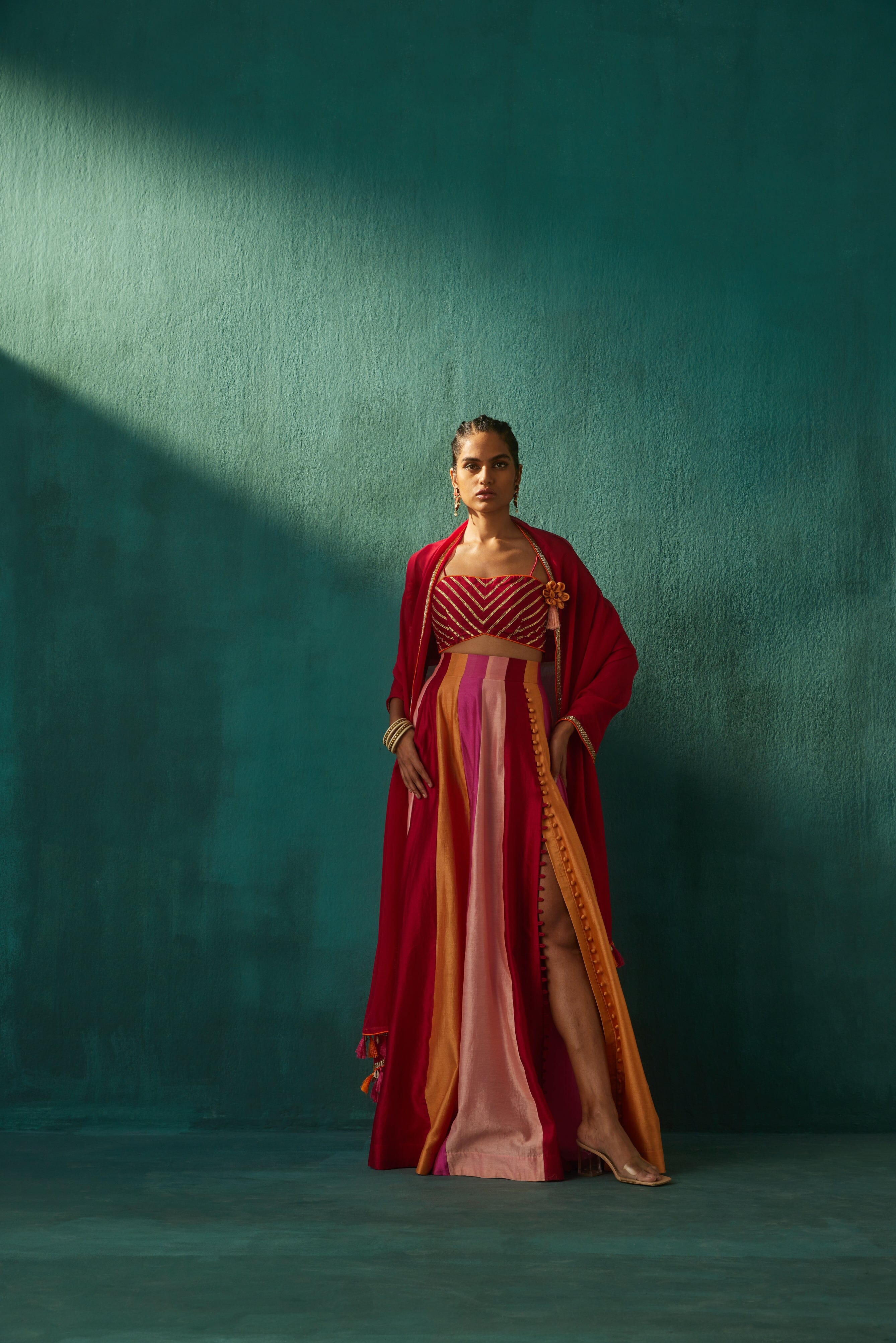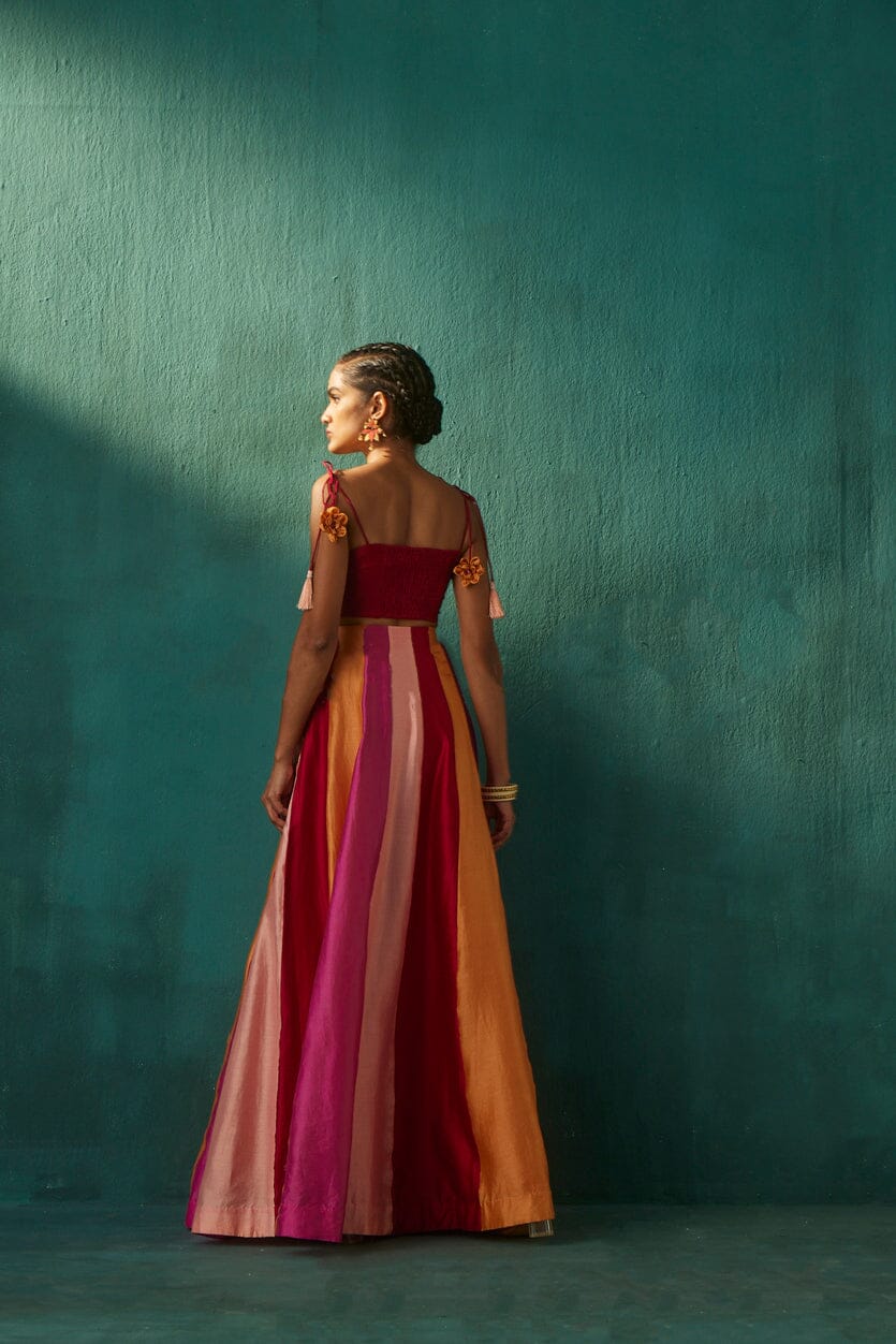Tonos de rojo Lehenga
