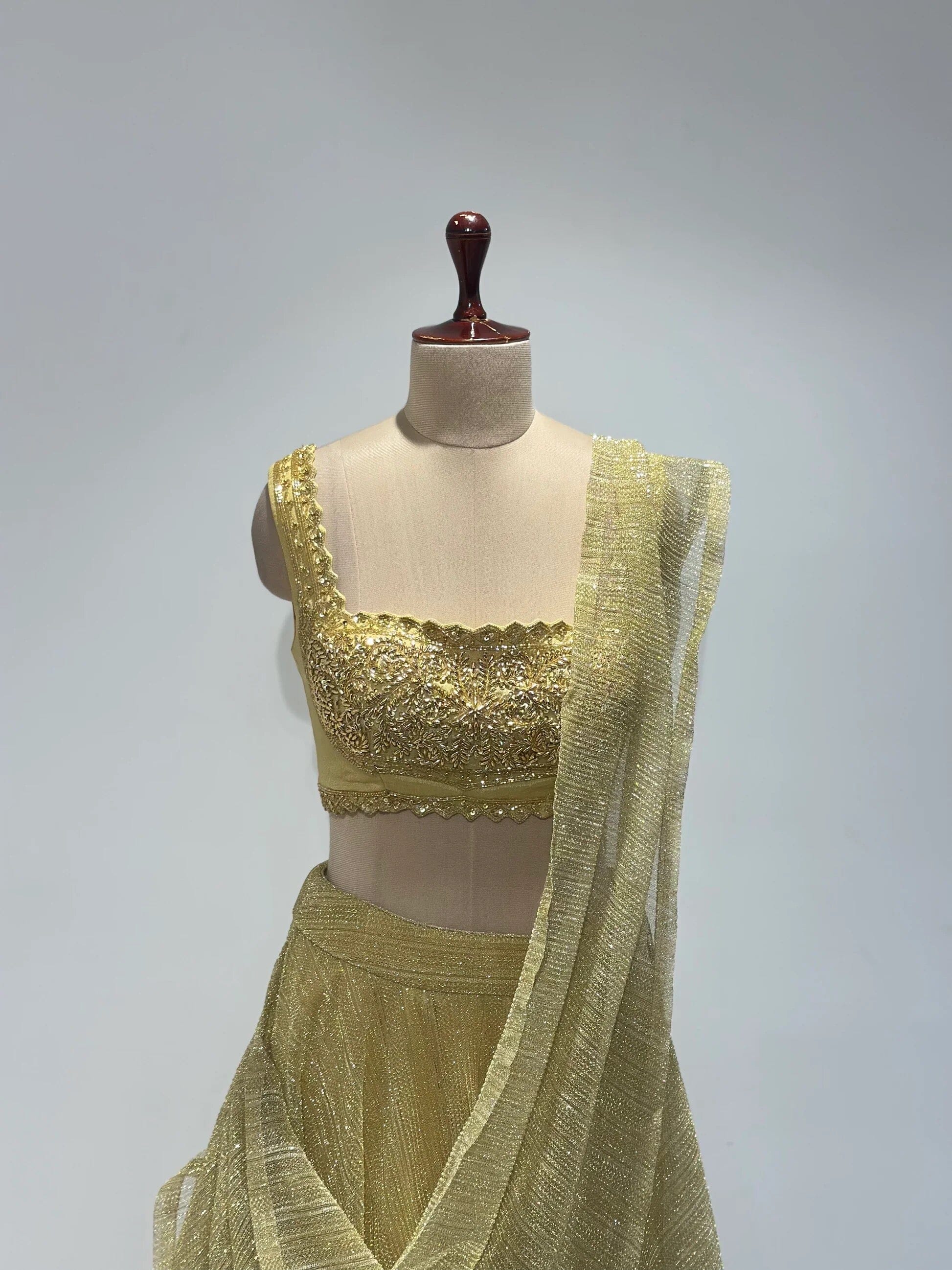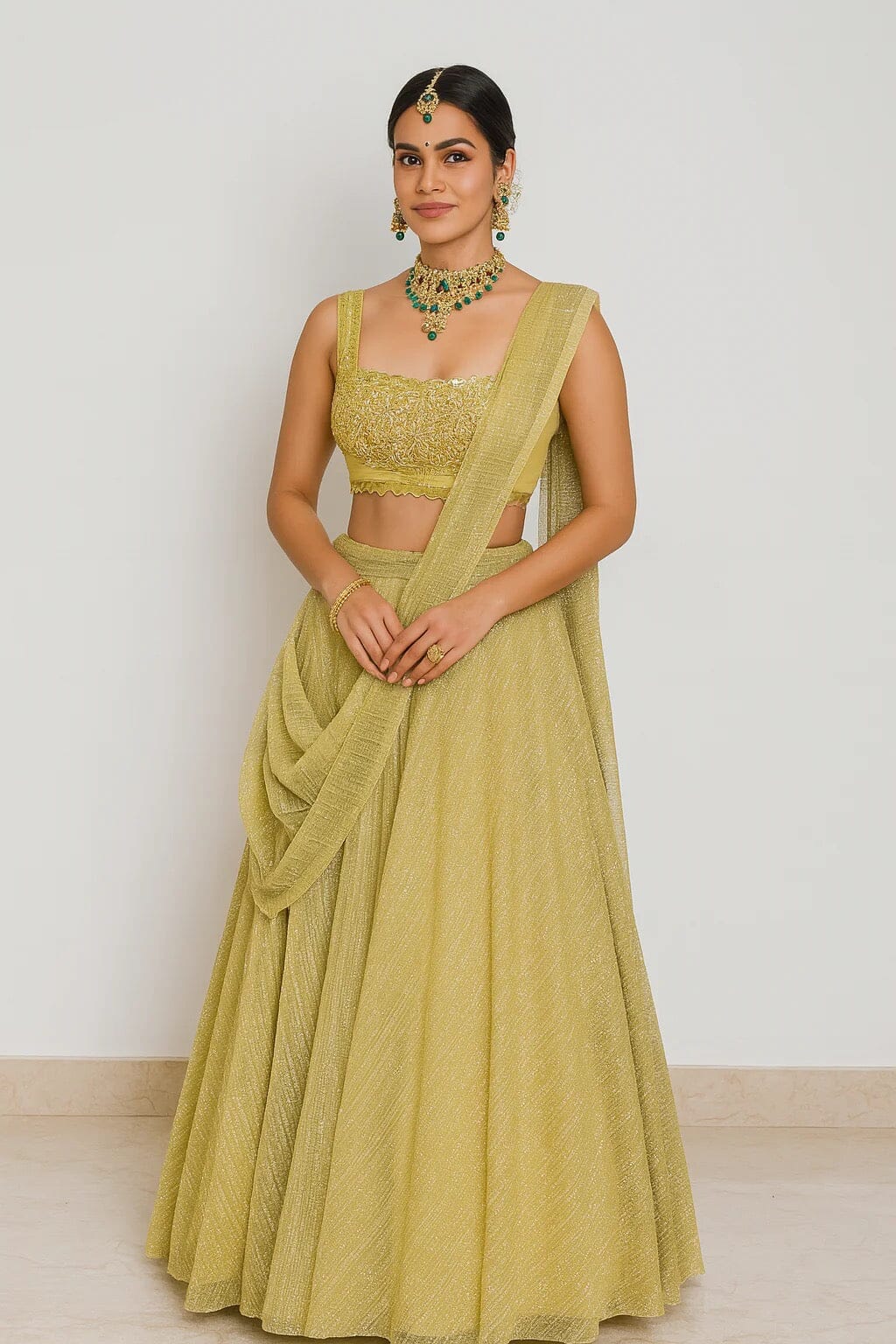 Gulzar Lime Printed Blouse With Lehenga And Dupatta- Set Of 3