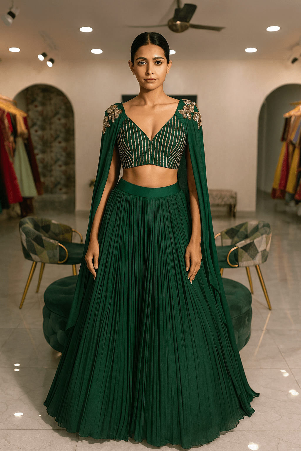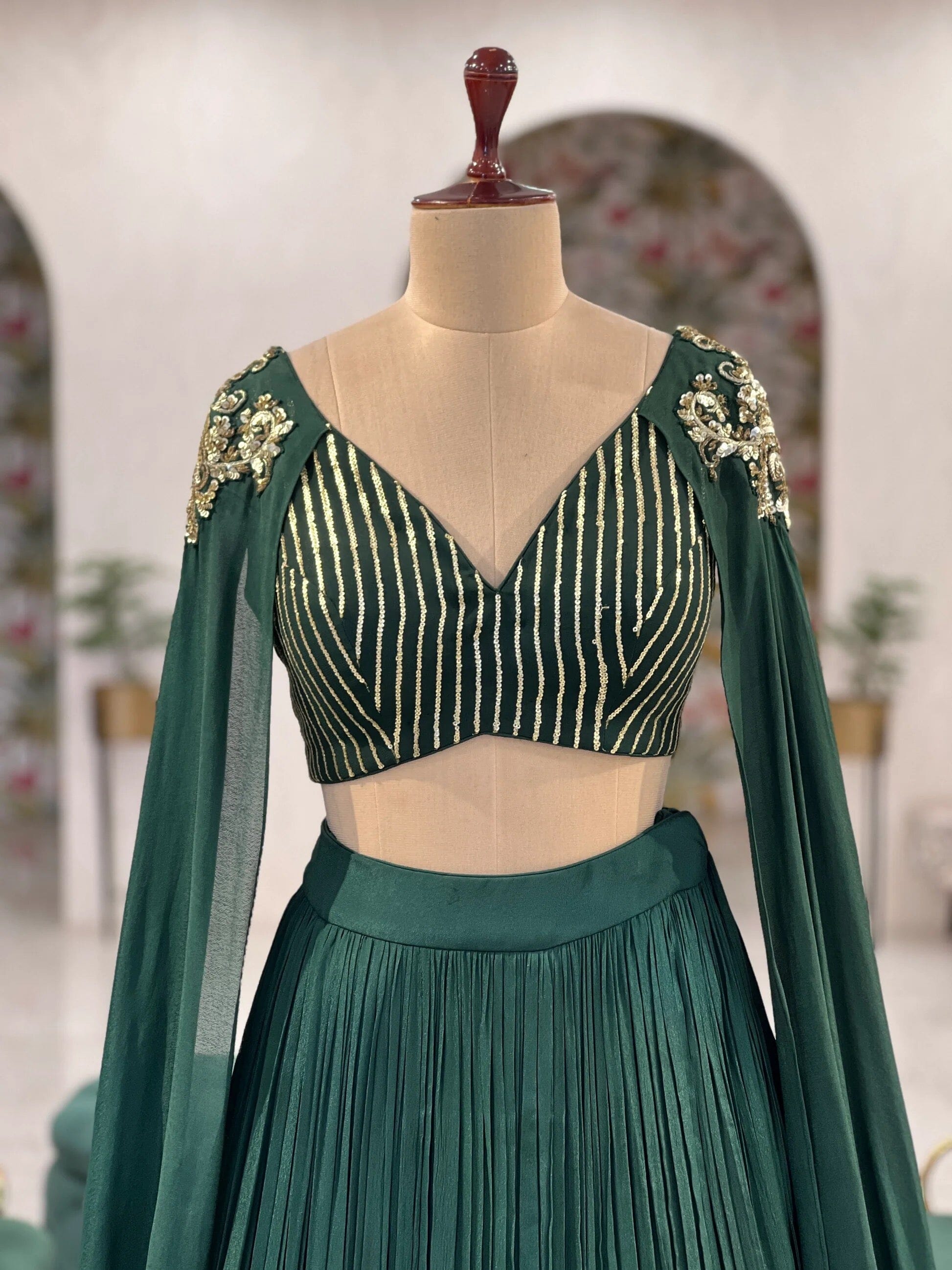 Black floral Print Lehenga With Cape ( Set of 3 )