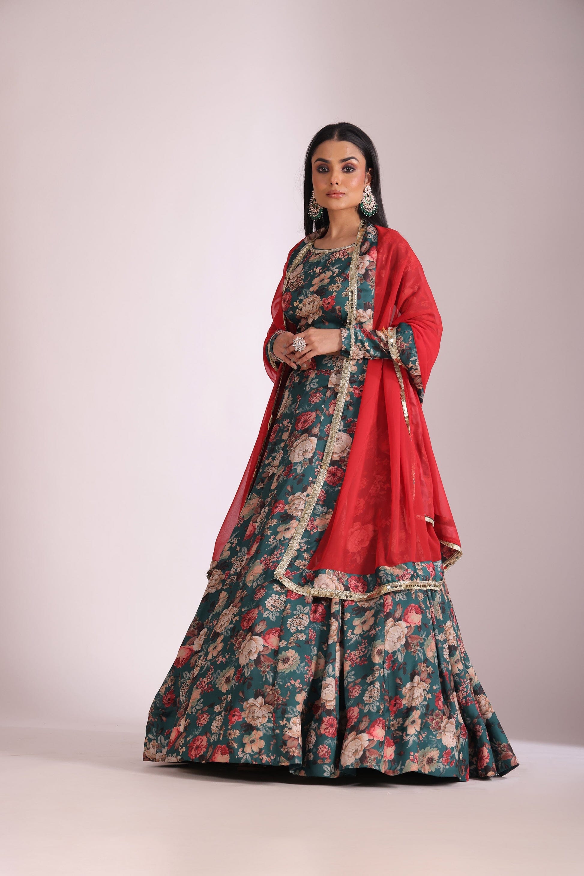 Gulzar Green Printed Blouse With Lehenga And Dupatta- Set Of 3