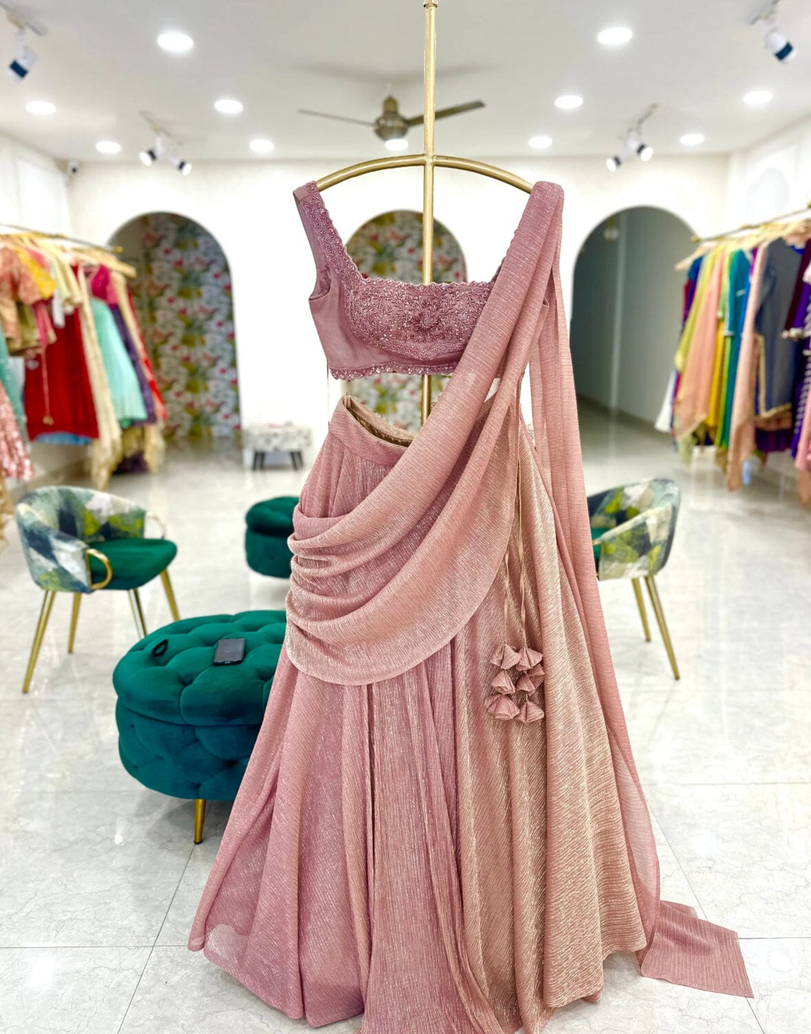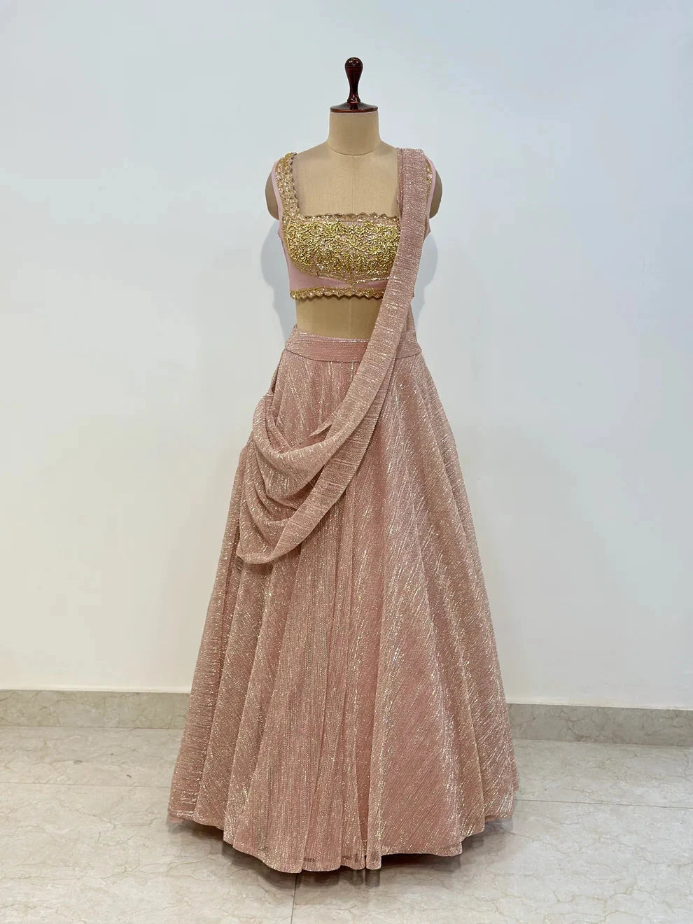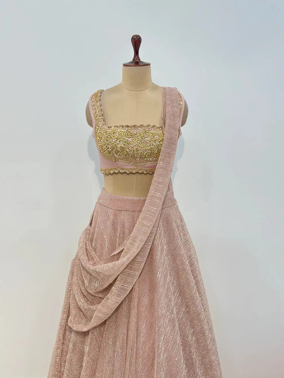 Dusty Pink Hand Embroidered Organza Lehenga (Set of 3)