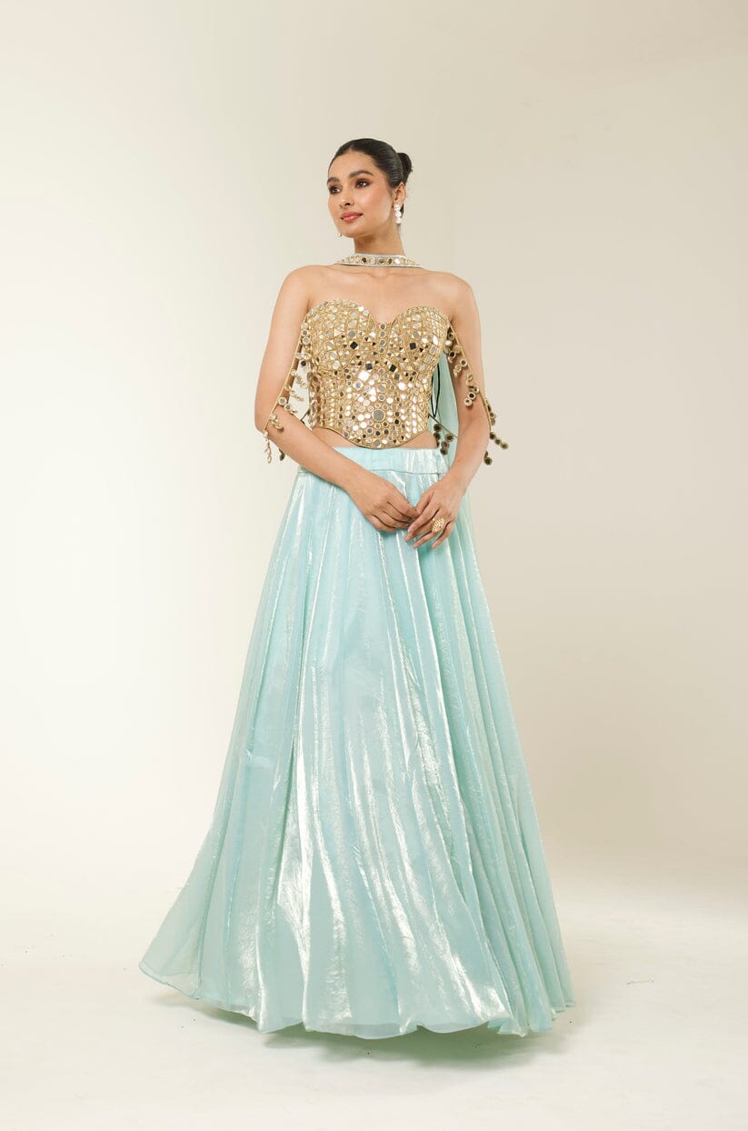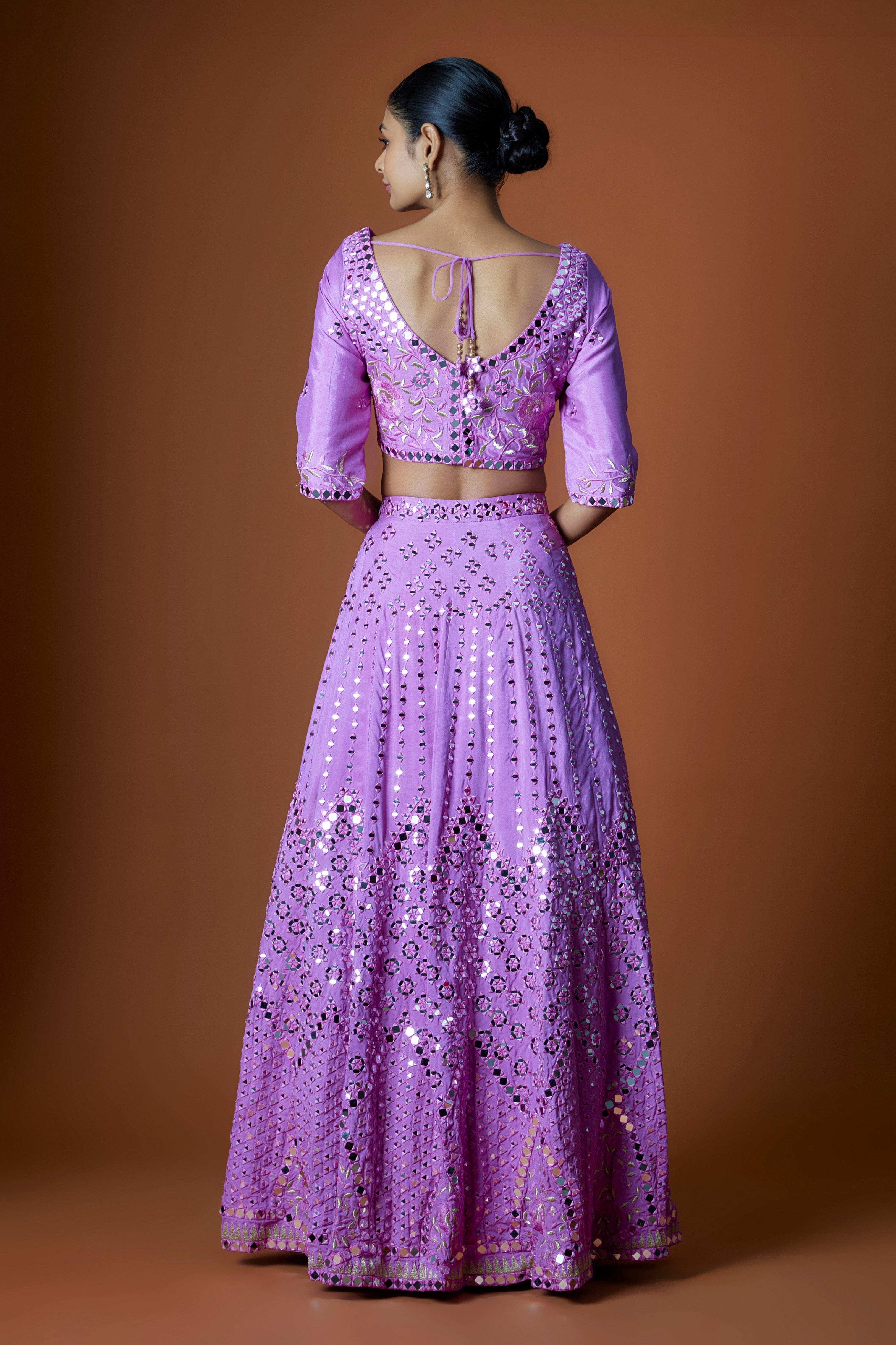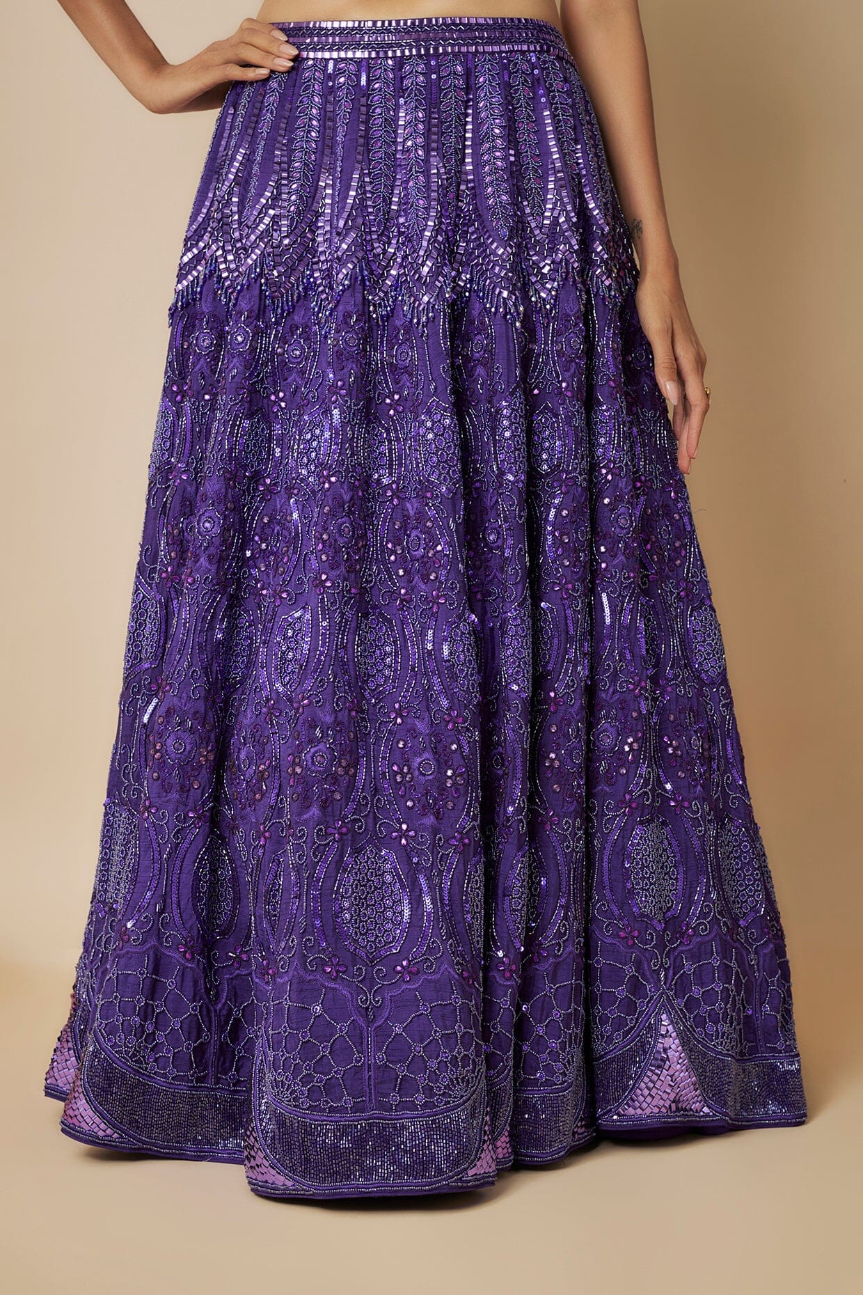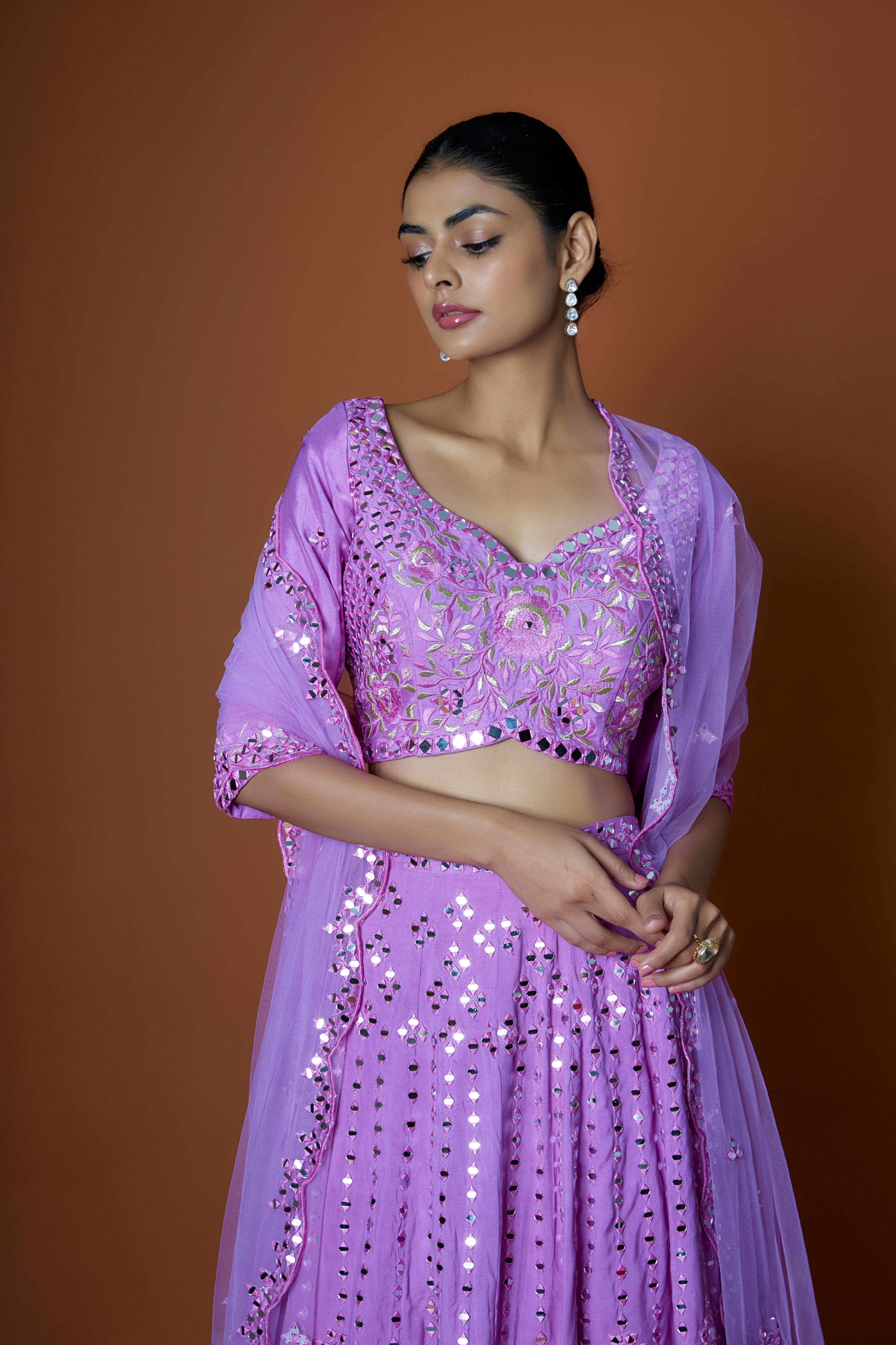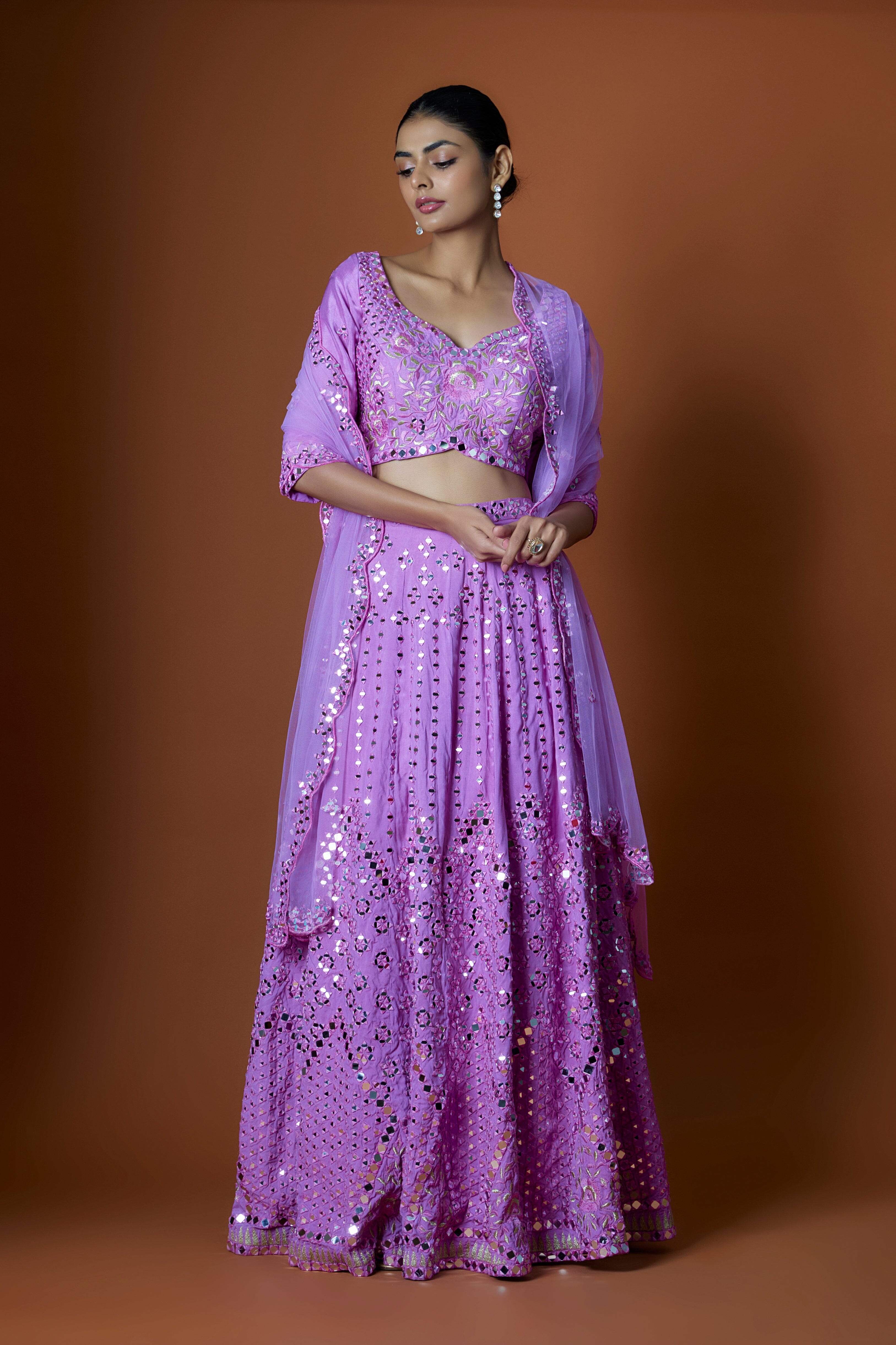 Dark Coffee Mirror Embroidered Choli Lehenga And Dupatta Set