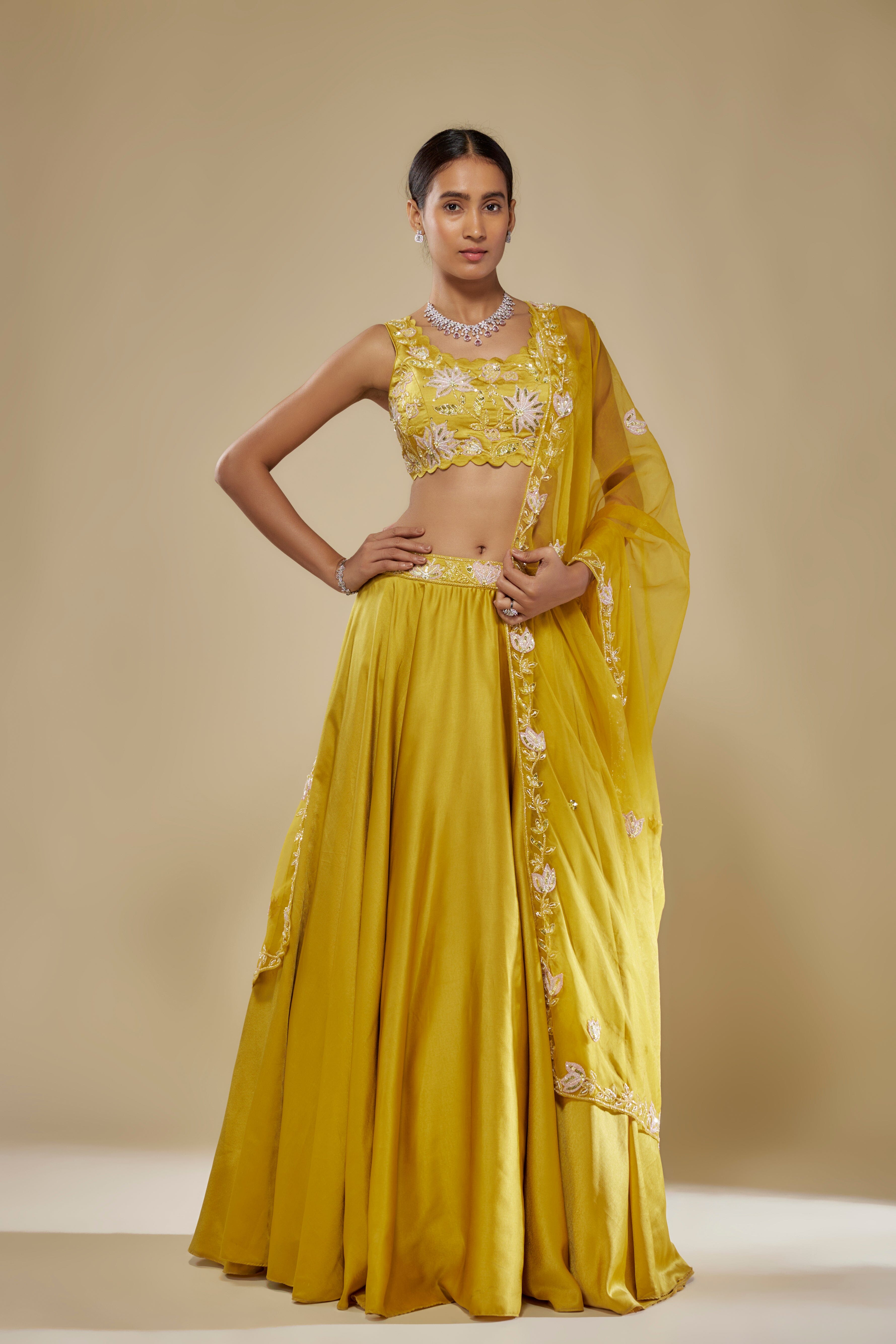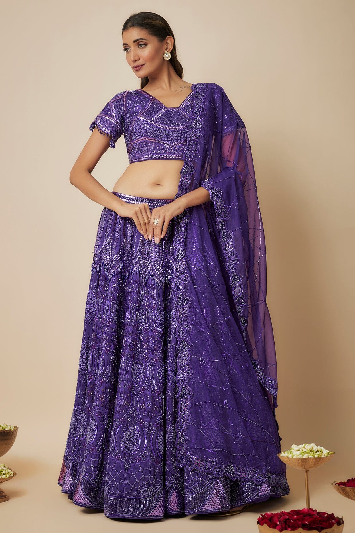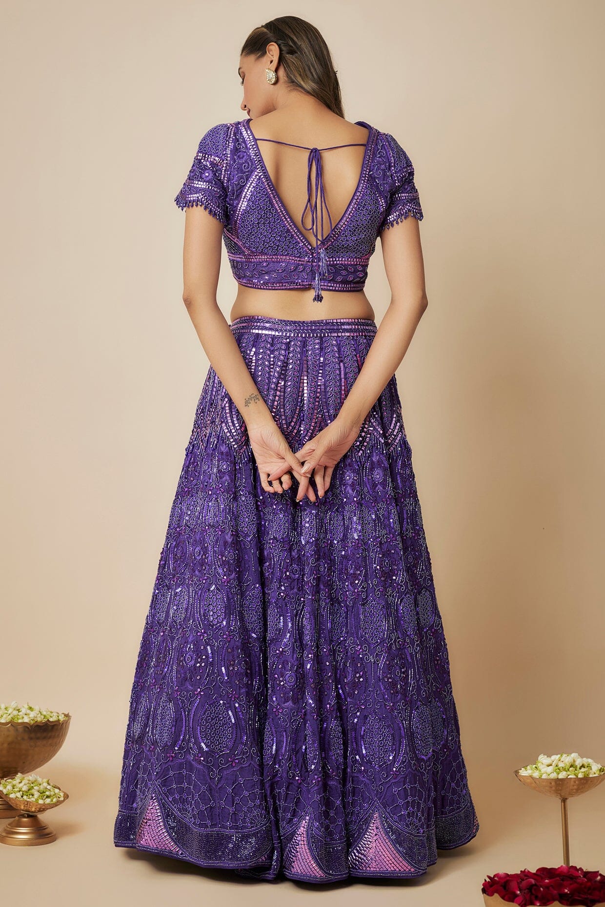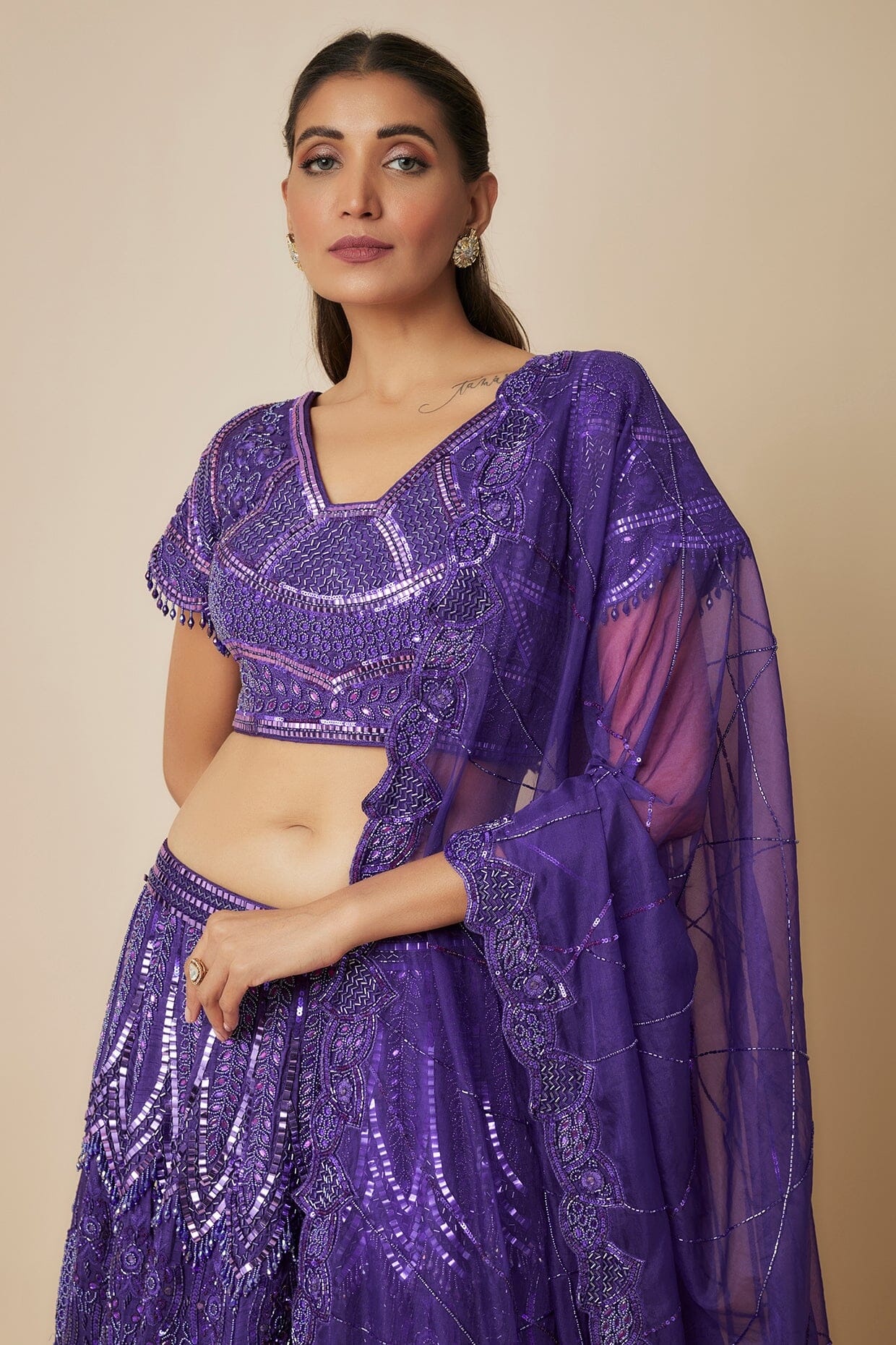 Dark Coffee Mirror Embroidered Choli Lehenga And Dupatta Set