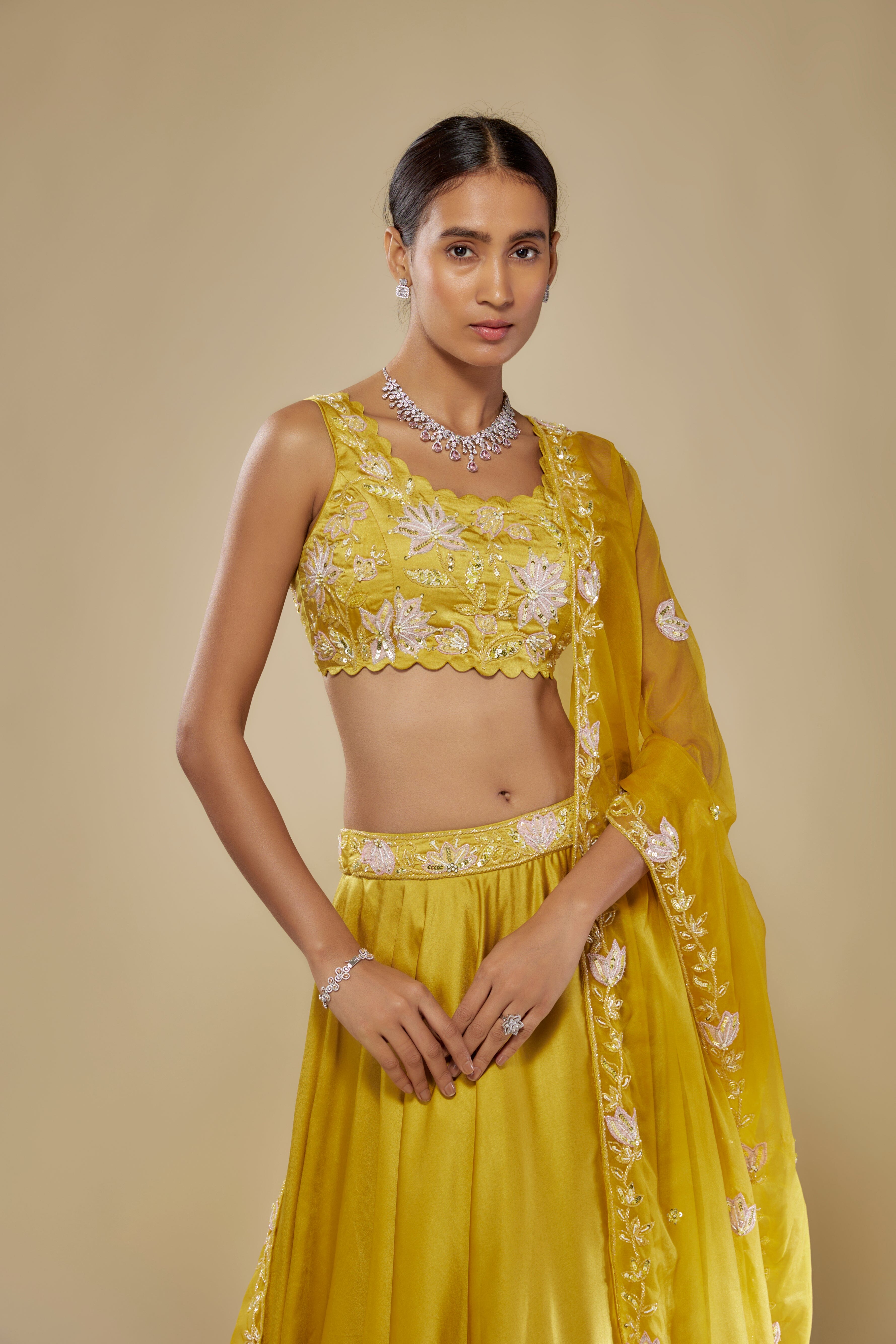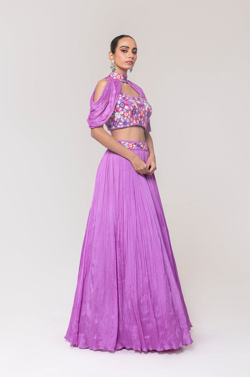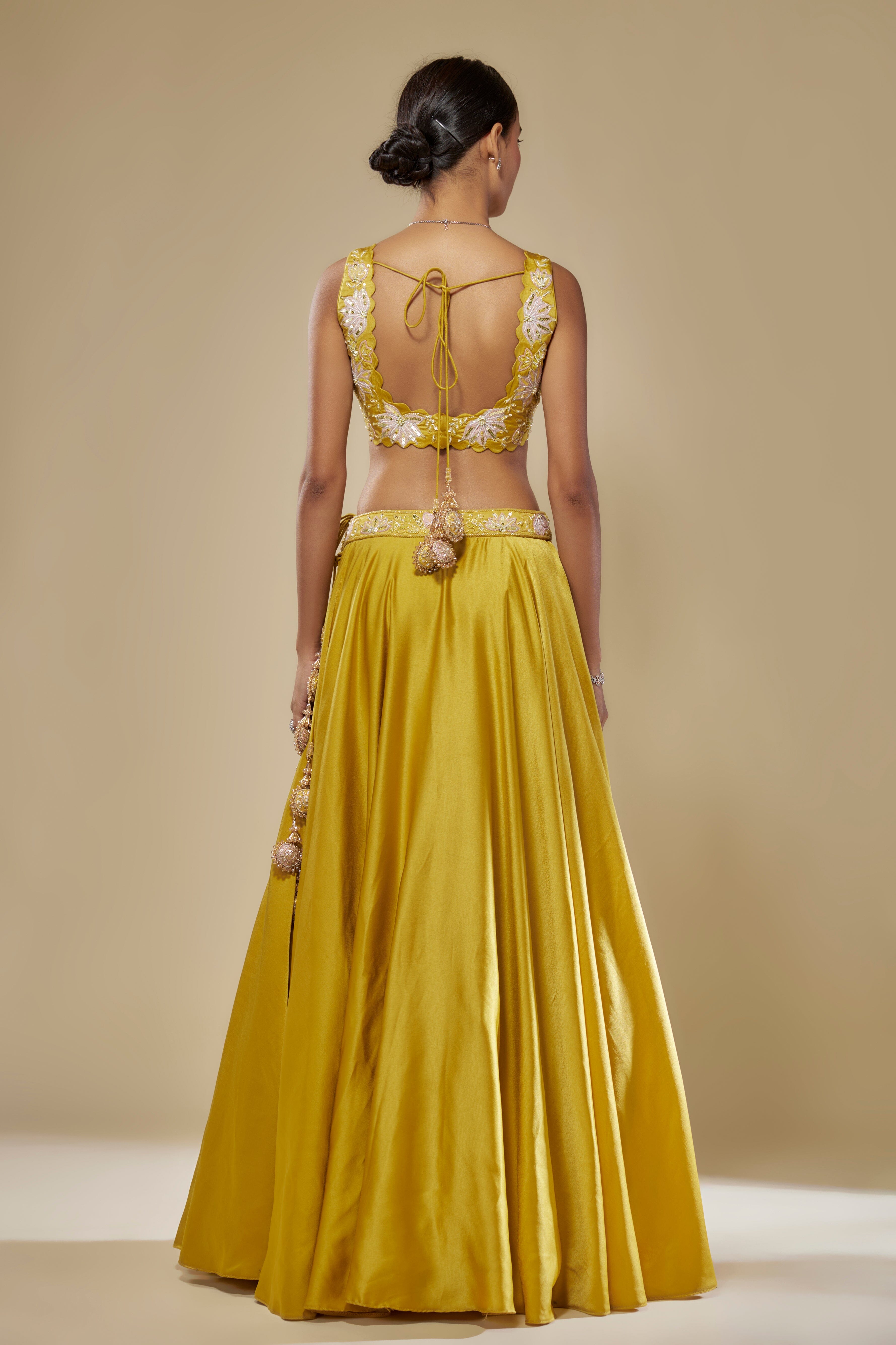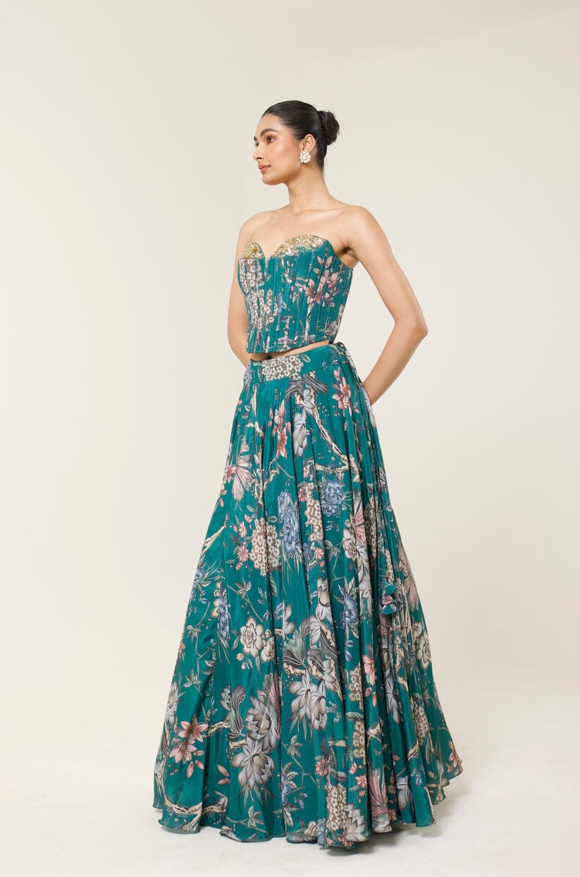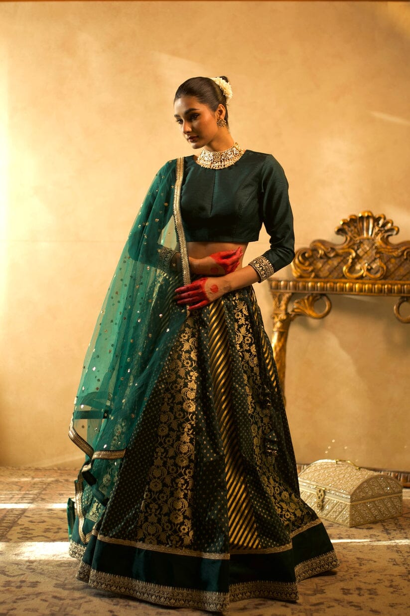 Dark Coffee Mirror Embroidered Choli Lehenga And Dupatta Set