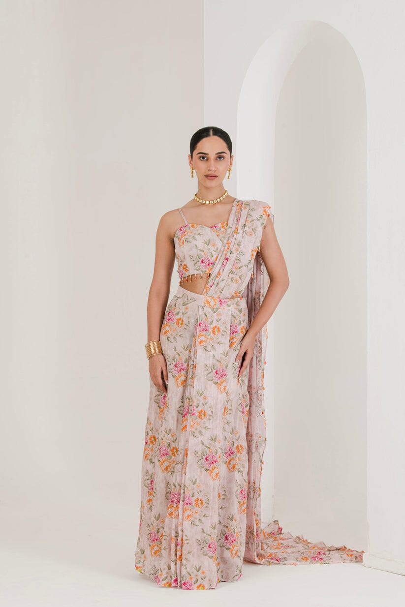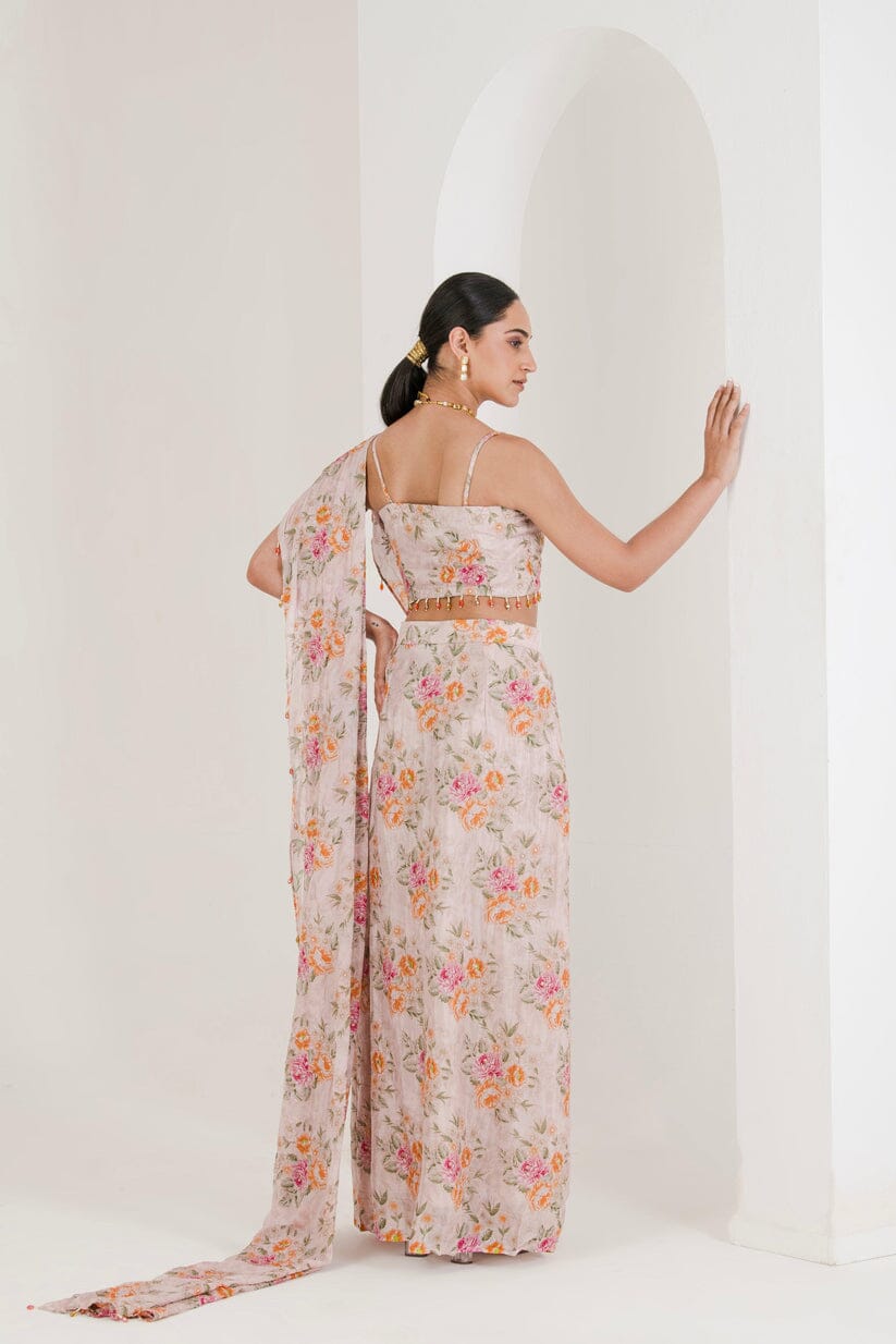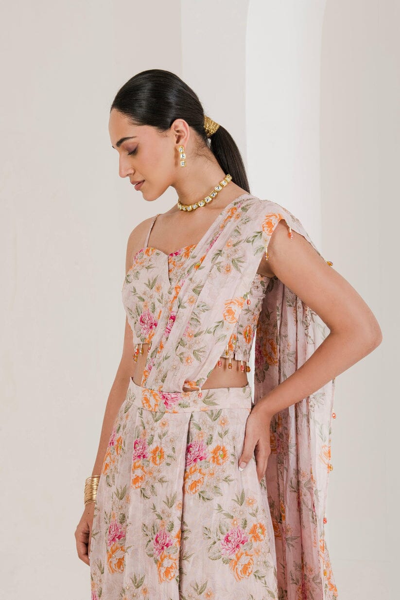 Blush Pink floral print pre stitched Saree (Set of 2)