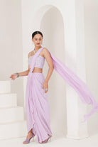 Lilac Hand Embroidered Crepe Drape style Pre Stitched Saree ( Set of 2 )
